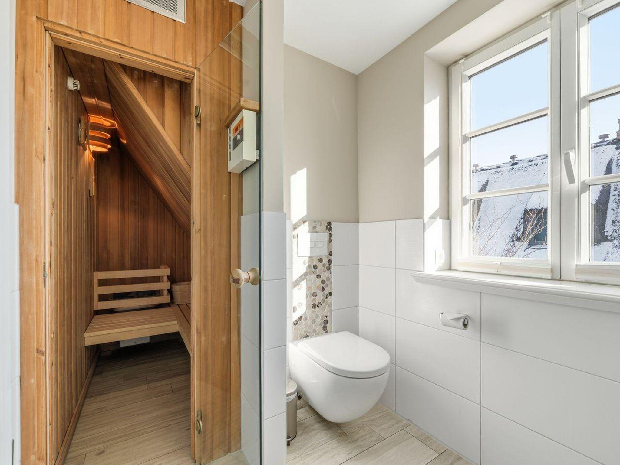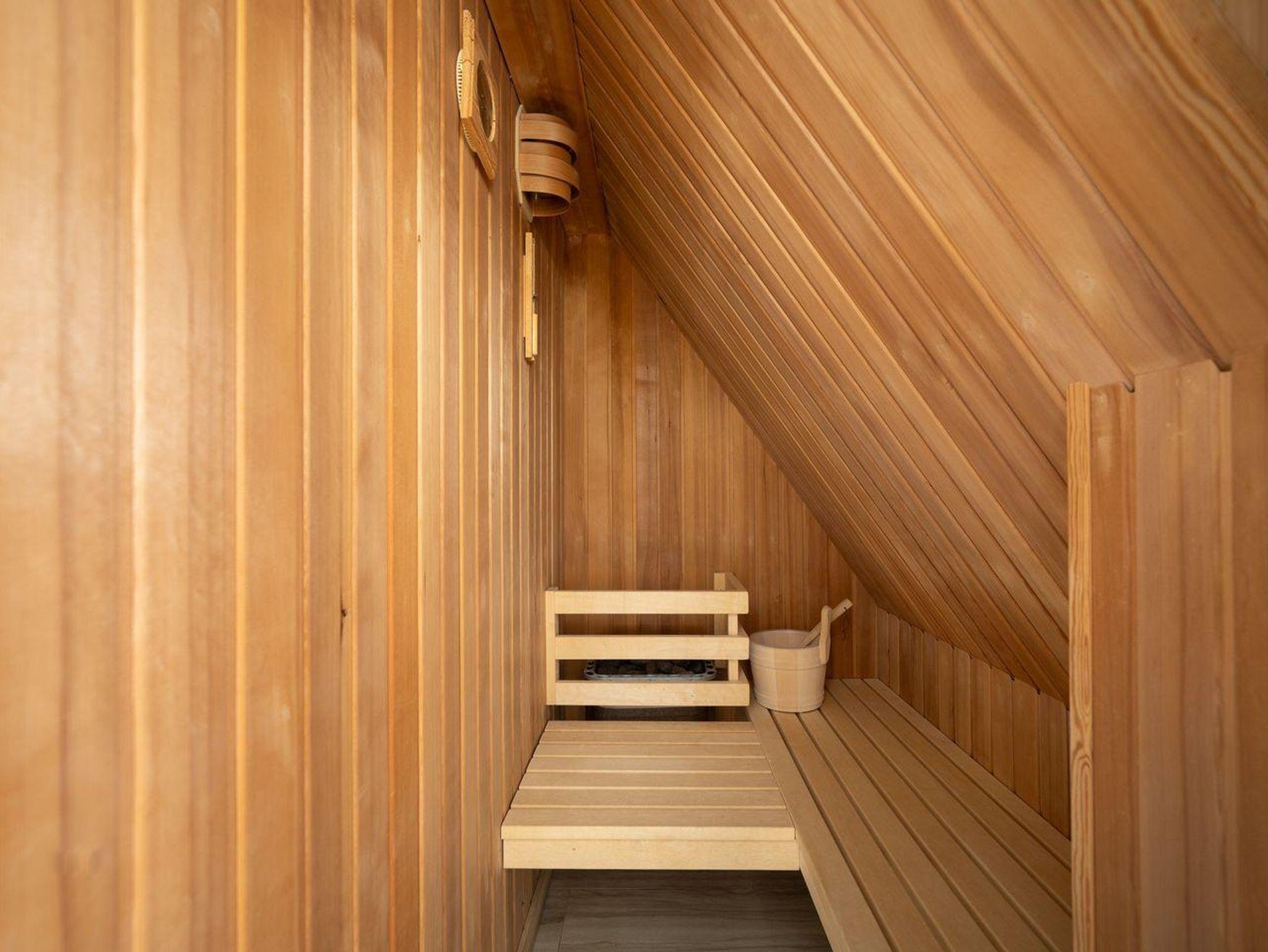 Im Erdgeschoss befindet sich der großzügige Wohnraum mit einer offenen Küche und einem gemütlichen Essbereich. Die Küche ist mit hochwertigen Geräten voll ausgestattet. Ein edler Kaminofen sorgt im Wohnraum leicht und unkompliziert für knisternde Momente. Im Erdgeschoss ist ebenso ein großer Flur und ein HWR. Die beiden Bäder, eines im EG das andere im OG, sind großzügig gestaltet und bieten genügend Platz für Ihre Utensilien. Das volle Wohlfühlprogramm erwartet Sie im Obergeschoss, hier gelangen Sie über das Bad direkt in die Sauna.