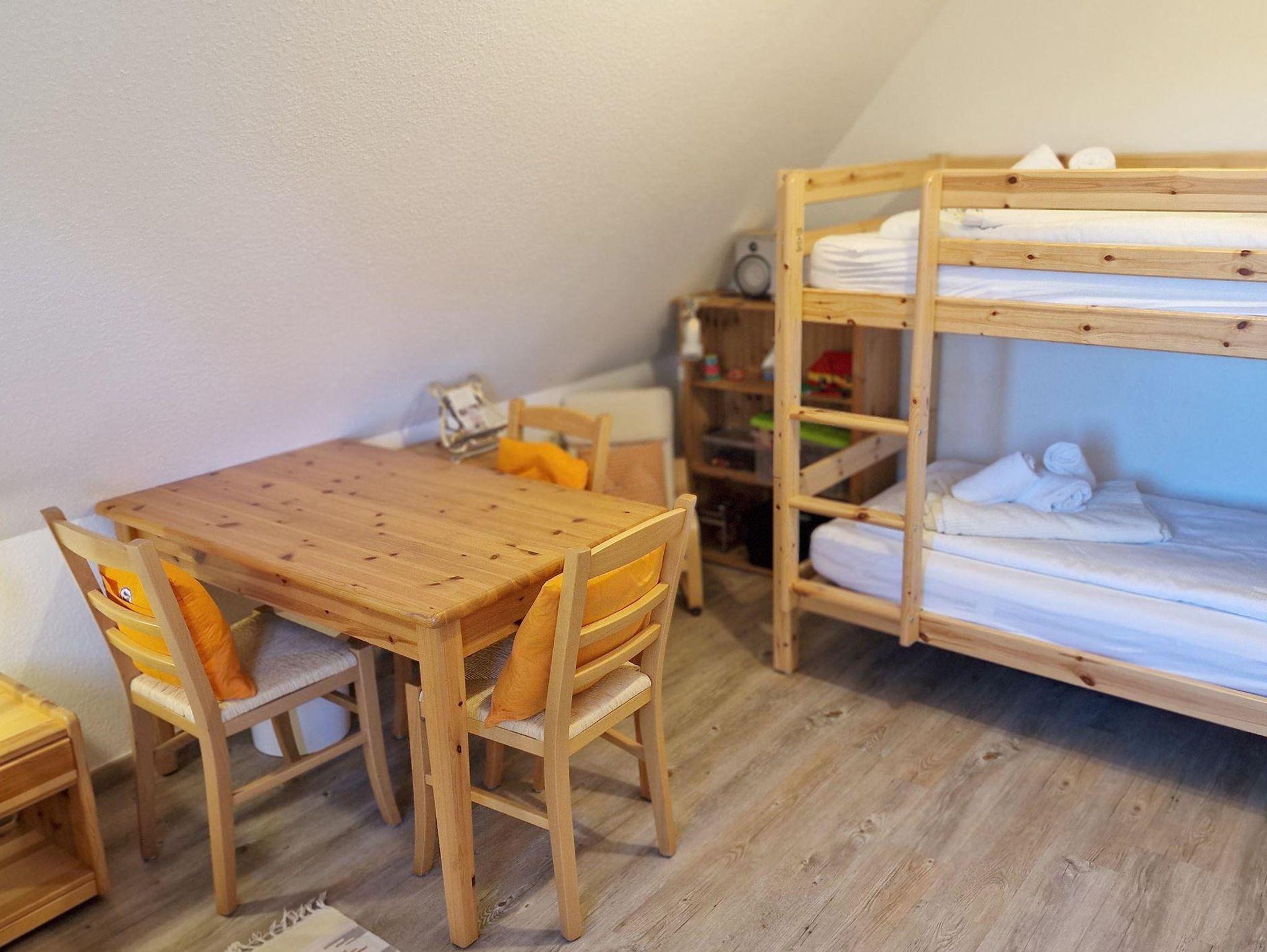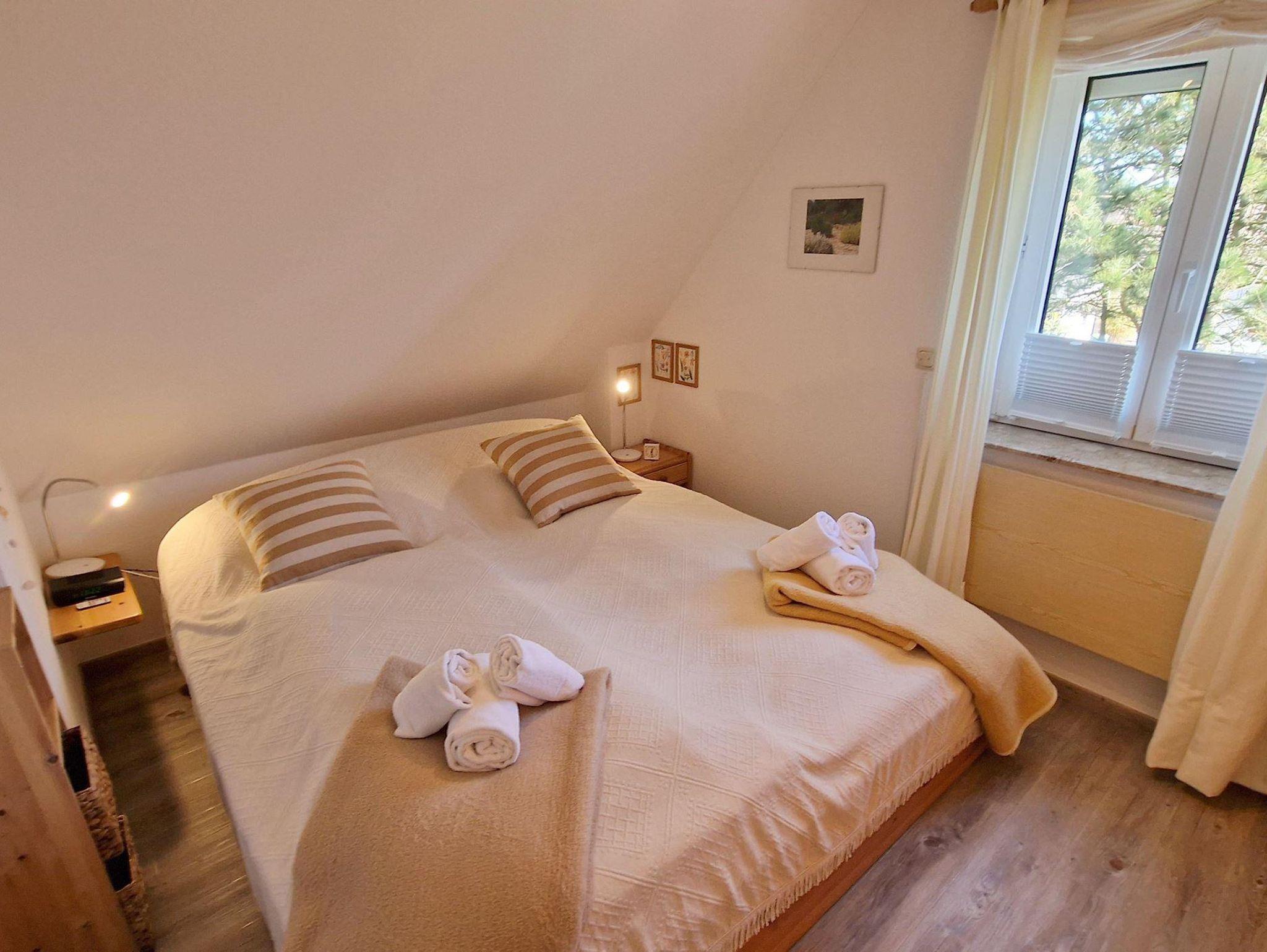 Die beiden Schlafzimmer sind mit komfortablen Betten ausgestattet, die für erholsame Nächte sorgen. Das Badezimmer im Erdgeschoss ist klein, aber fein und lädt dazu ein, sich zu verwöhnen und zu entspannen.