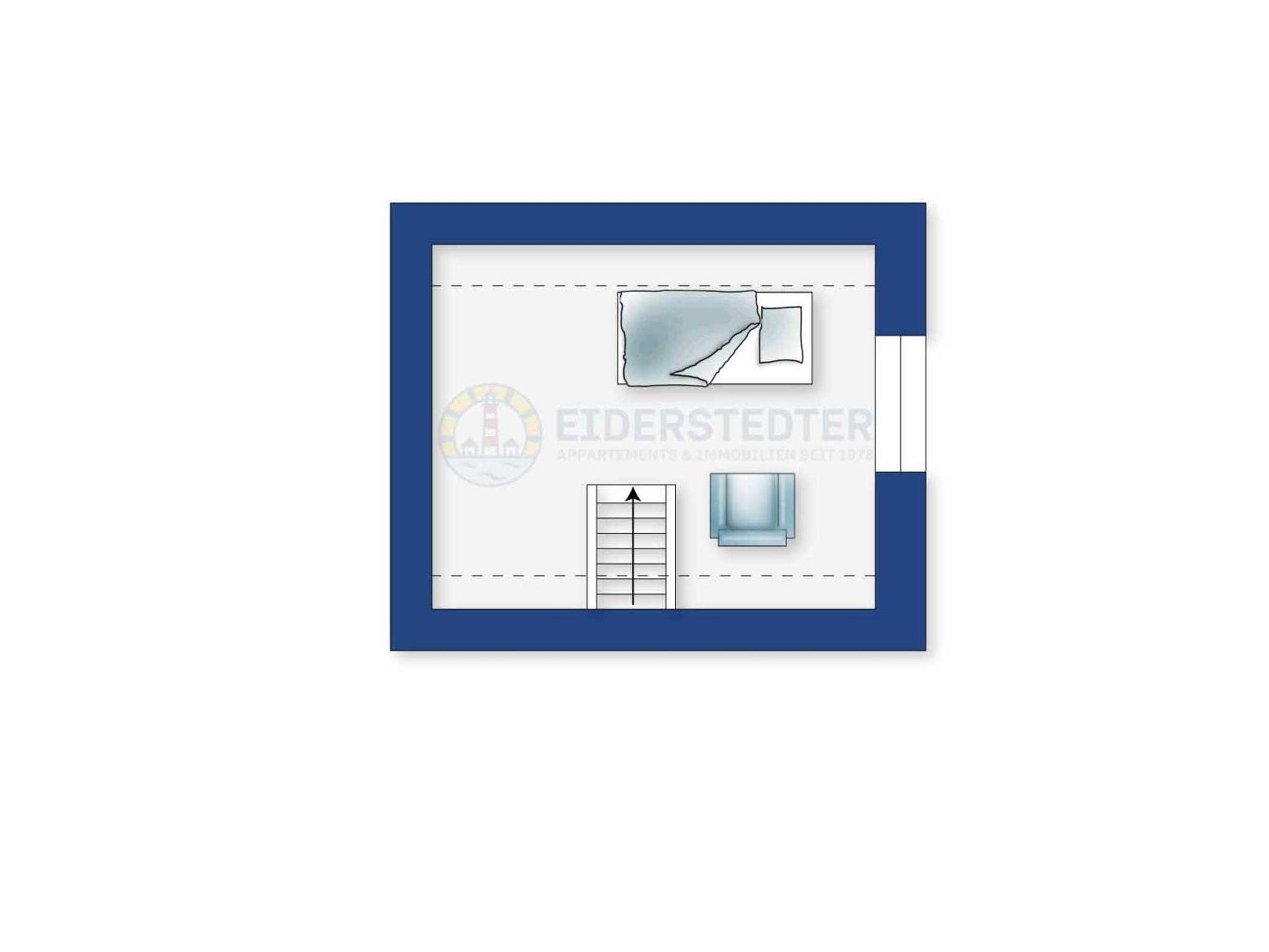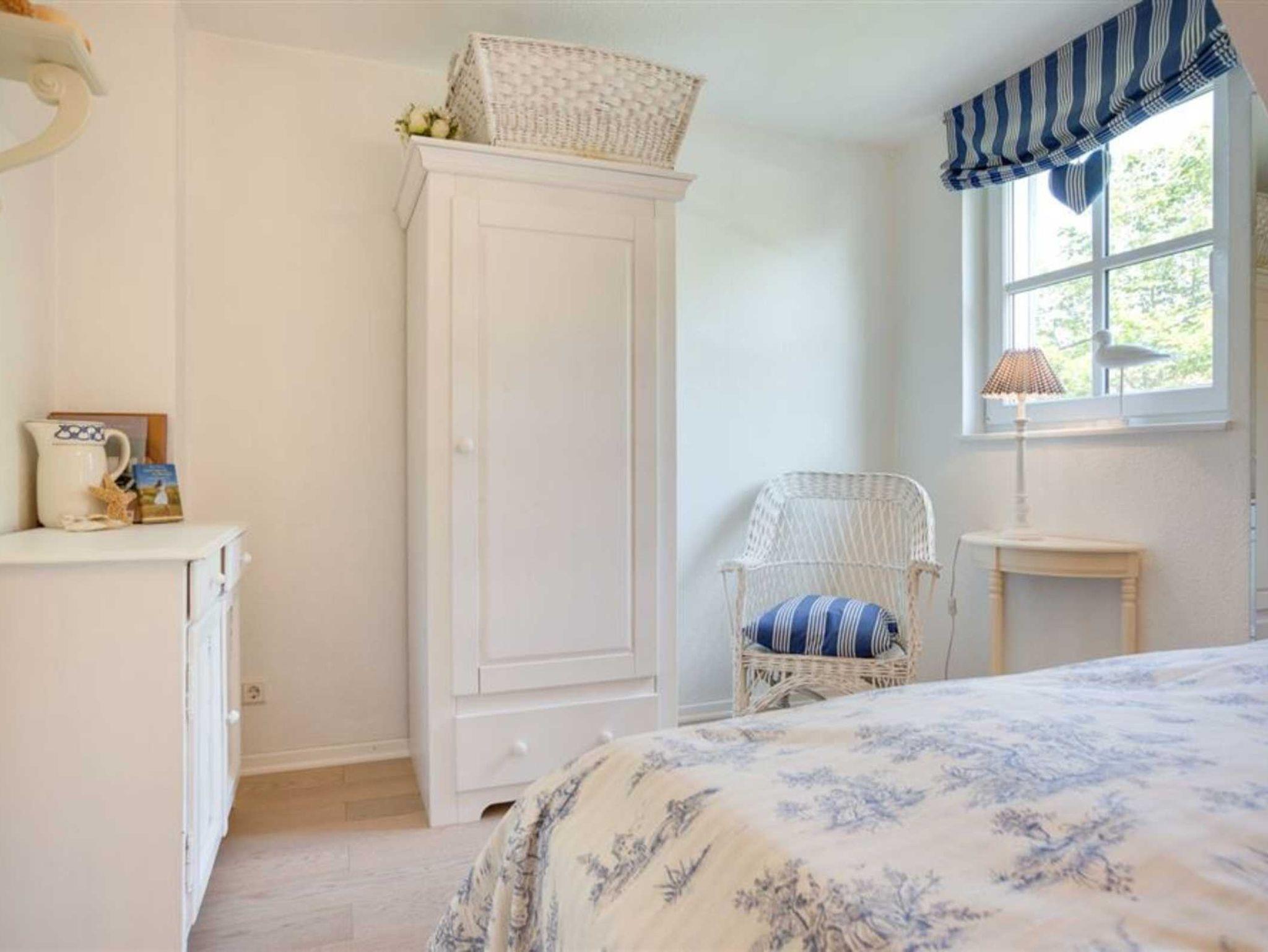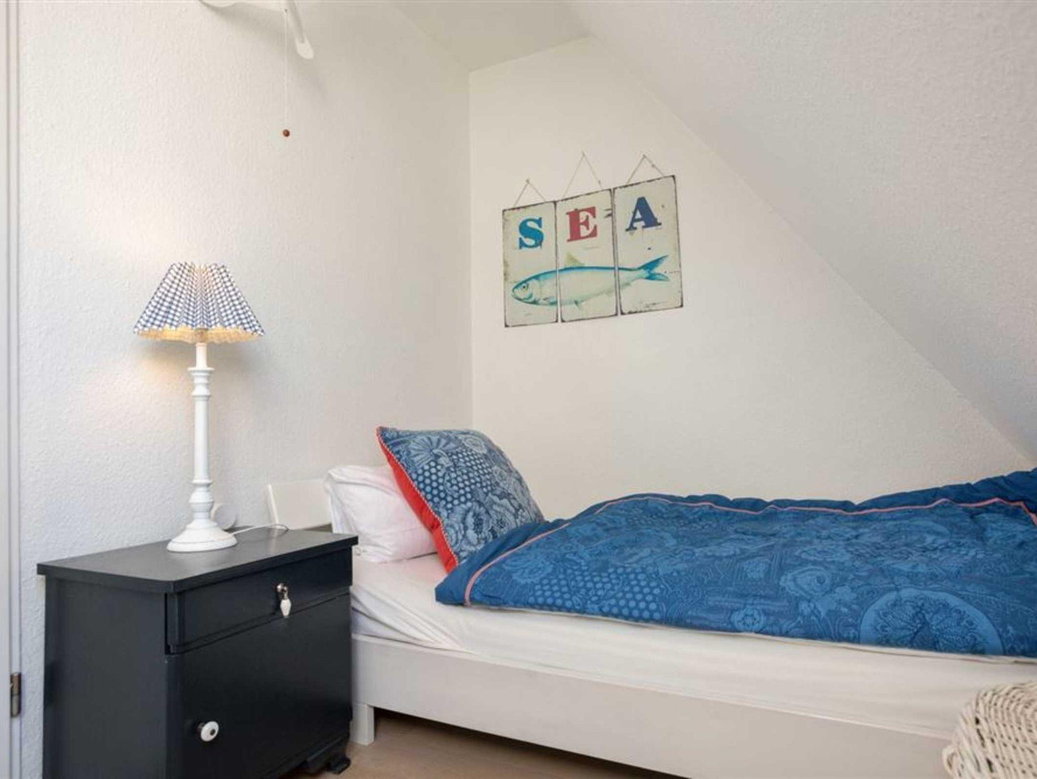 3. Schlafzimmer mit niedrigem Einzelbett (90x190cm), Sessel und Stuhl.