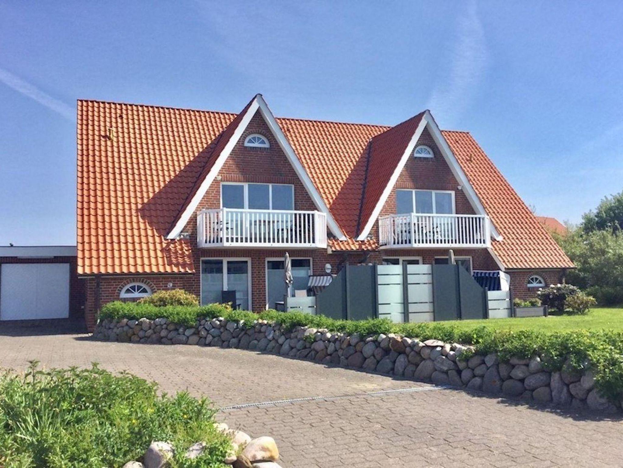 Vom Balkon, der nach Süden ausgerichtet ist, lässt es sich bequem auf den Deich schauen.