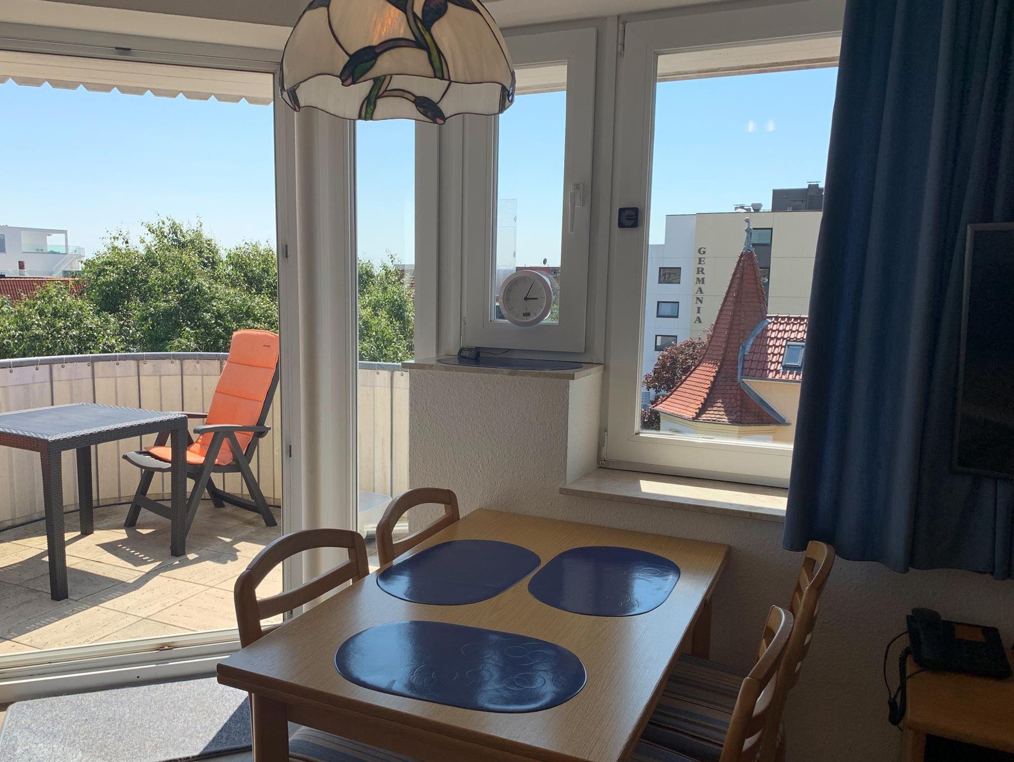 LageSüd- Westlage und Süd- Ostlage, 4. Obergeschoss, ruhig, Zentrum, 200 m zum Strand, Bäcker 50 m, Bahnhof 2 km, Einkaufsmöglichkeiten 150 m, Ortsteil Bad, Meerblick