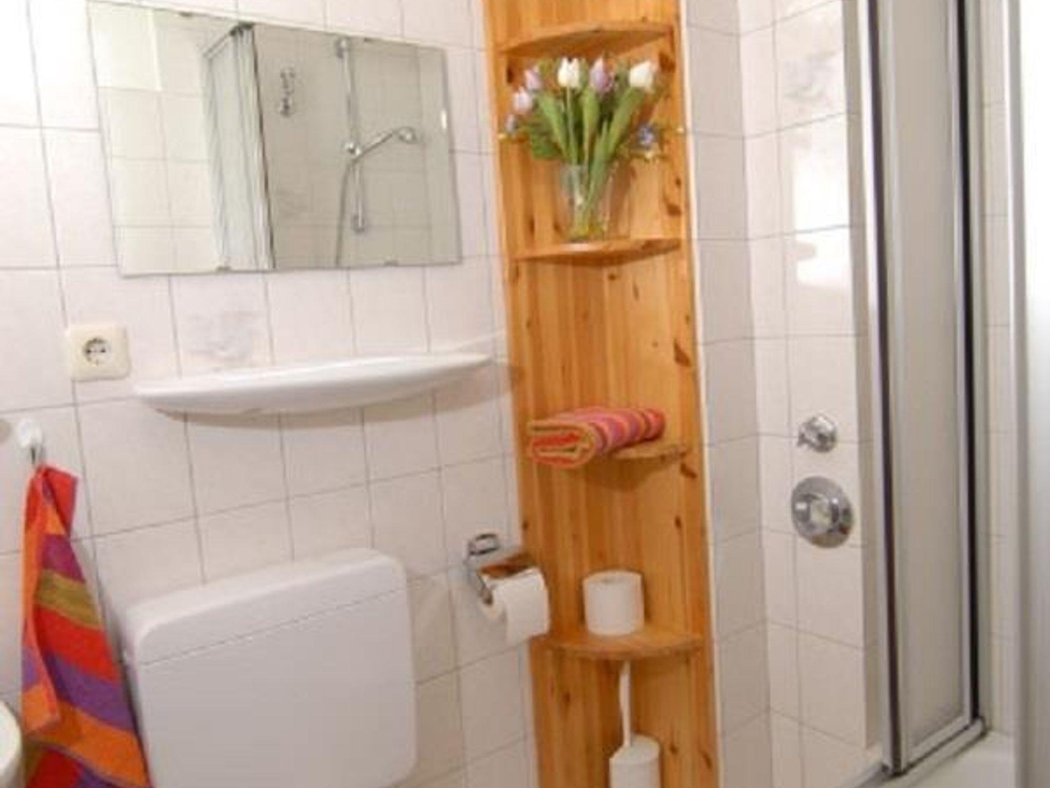 BadDusche, Waschbecken, WC, Regal, Duschkabine