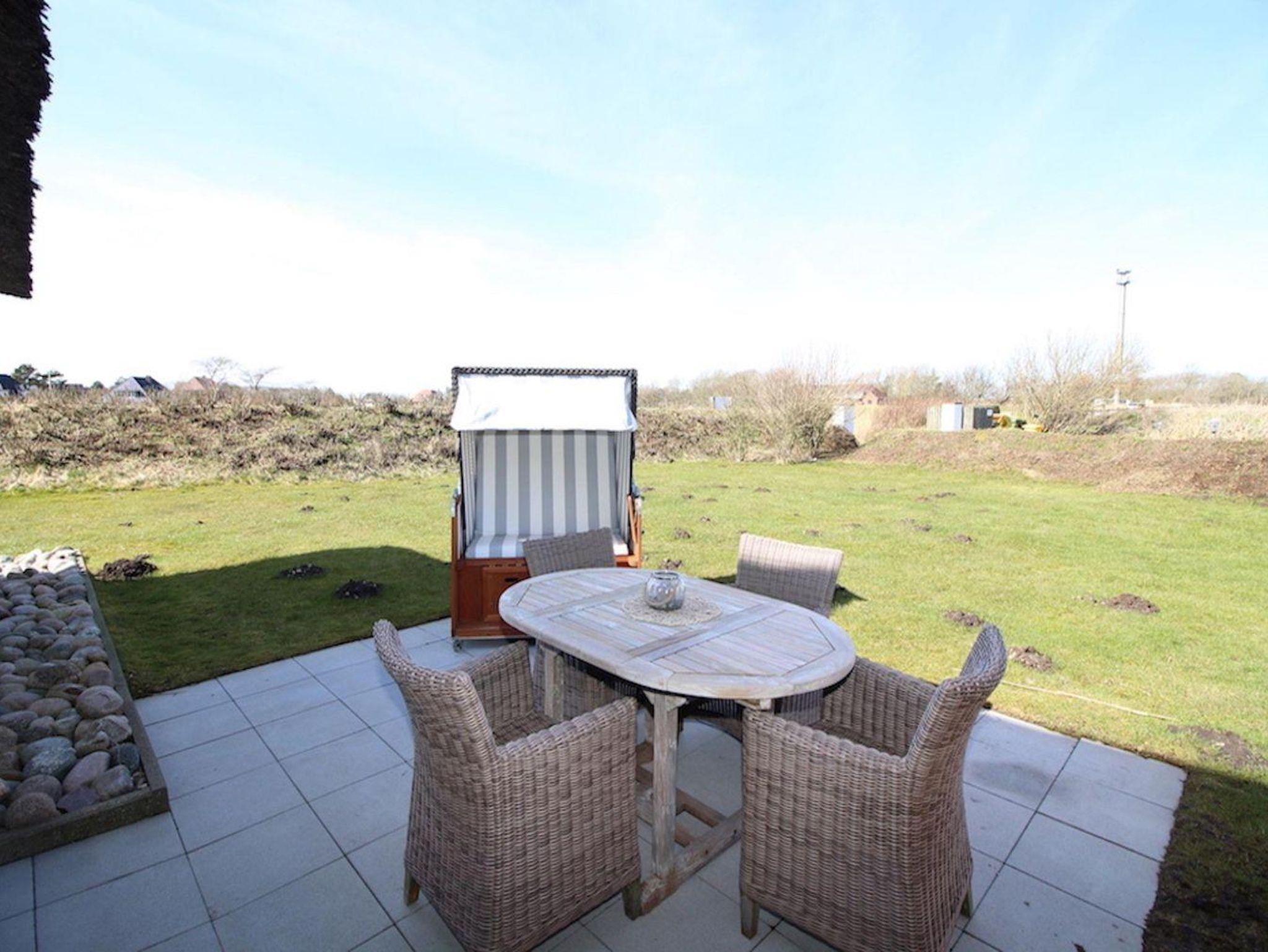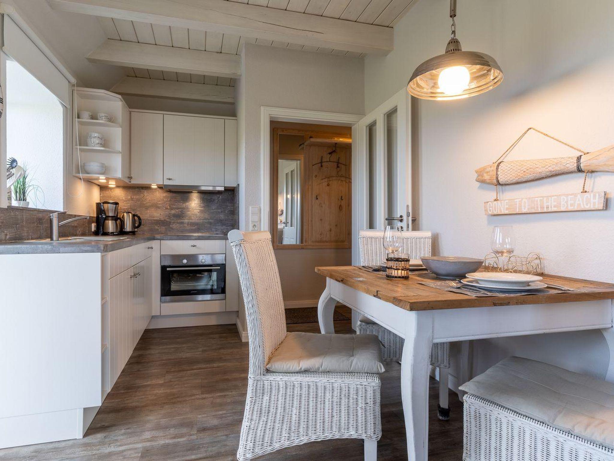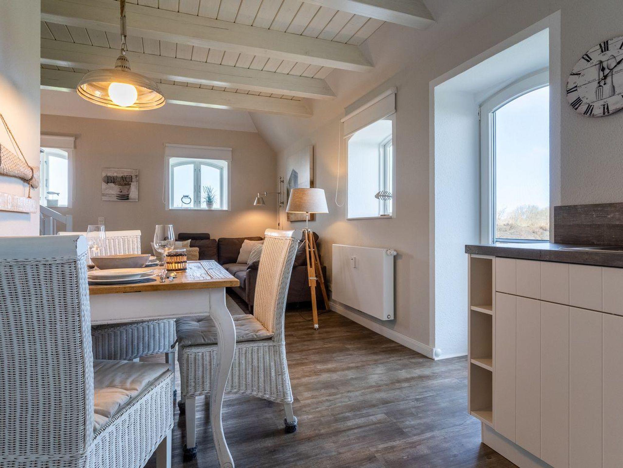 Das wunderschöne Apartment unter Reet wurde mit modernen Möbeln ausgestattet und bietet großzügigen Platz für 2 Personen. Das Grundstück mit Stellplatz wurde mit hübschen Pflanzen angelegt. Auf der Sonnenterrasse mit Gartenmöbeln und Strandkorb, umgeben von Schafwiesen und Pferdekoppeln, kann man herrlich ausspannen und die Ruhe genießen. Das Appartement befindet sich im Erdgeschoss über 2 Etagen. Es verfügt über ca. 60 m² Wohnfläche und teilt sich wie folgt auf: Auf der ersten Etage befindet sich ein großzügiger Wohnraum mit einer offenen Küche und einem gemütlichen Essbereich. Die Küche ist voll ausgestattet. Ein separates Duschbad bietet jeden Komfort. Über eine Holztreppe gelangt man zur Schlafgalerie im Dachgeschoss. Das Schlafzimmer verfügt über ein 1,8 x 2,0 m Bett. Kostenlose W-LAN Nutzung.