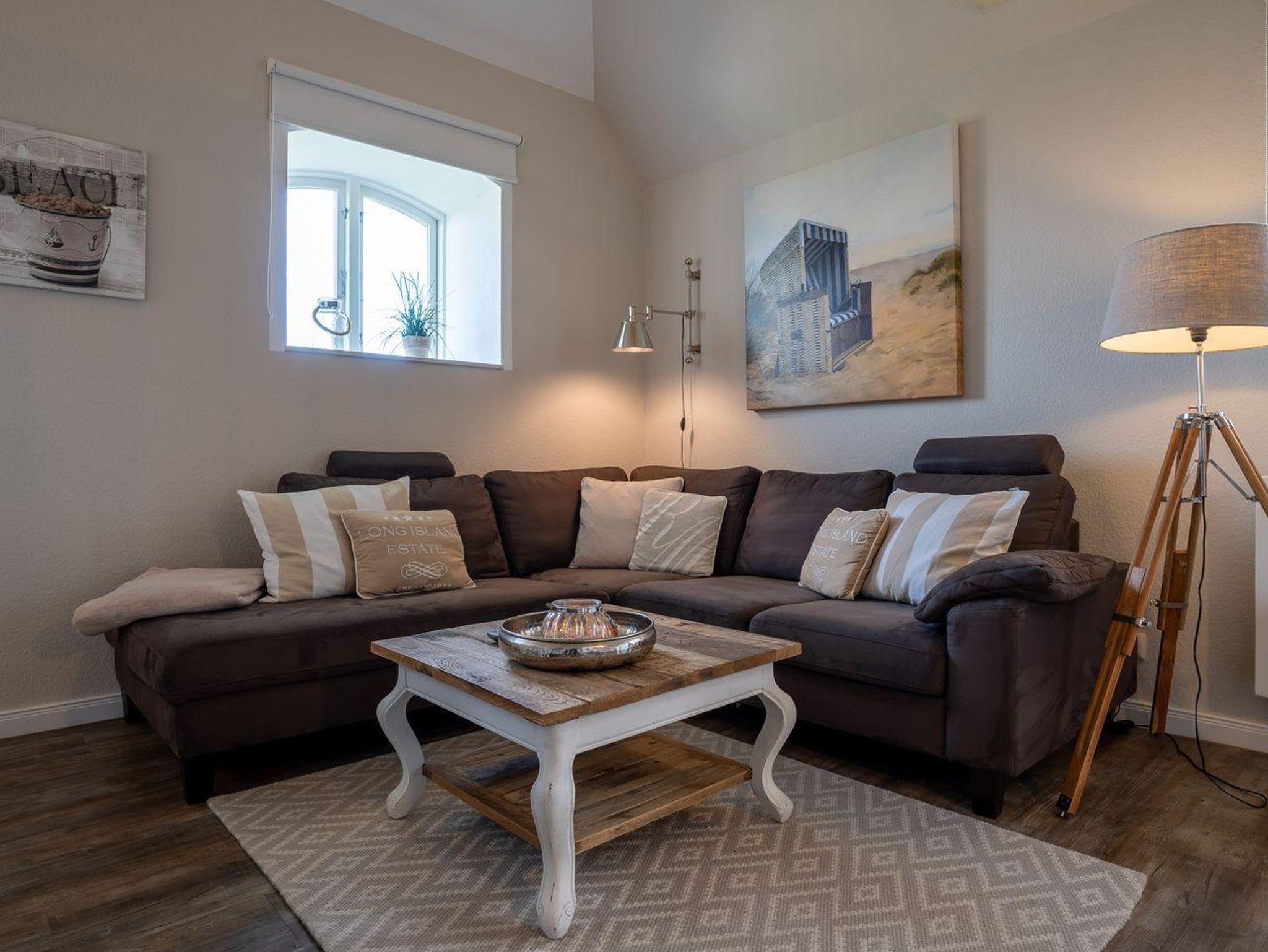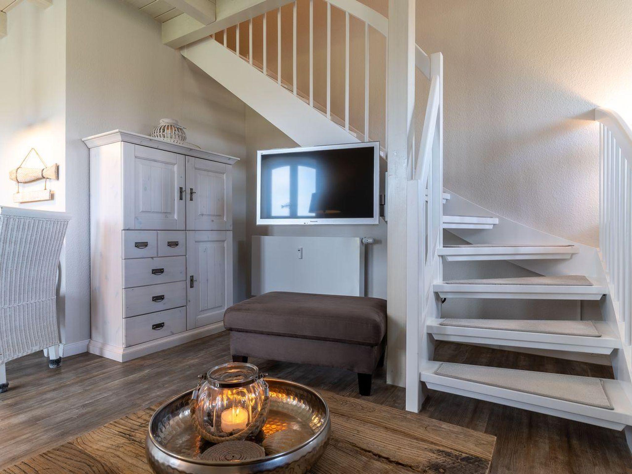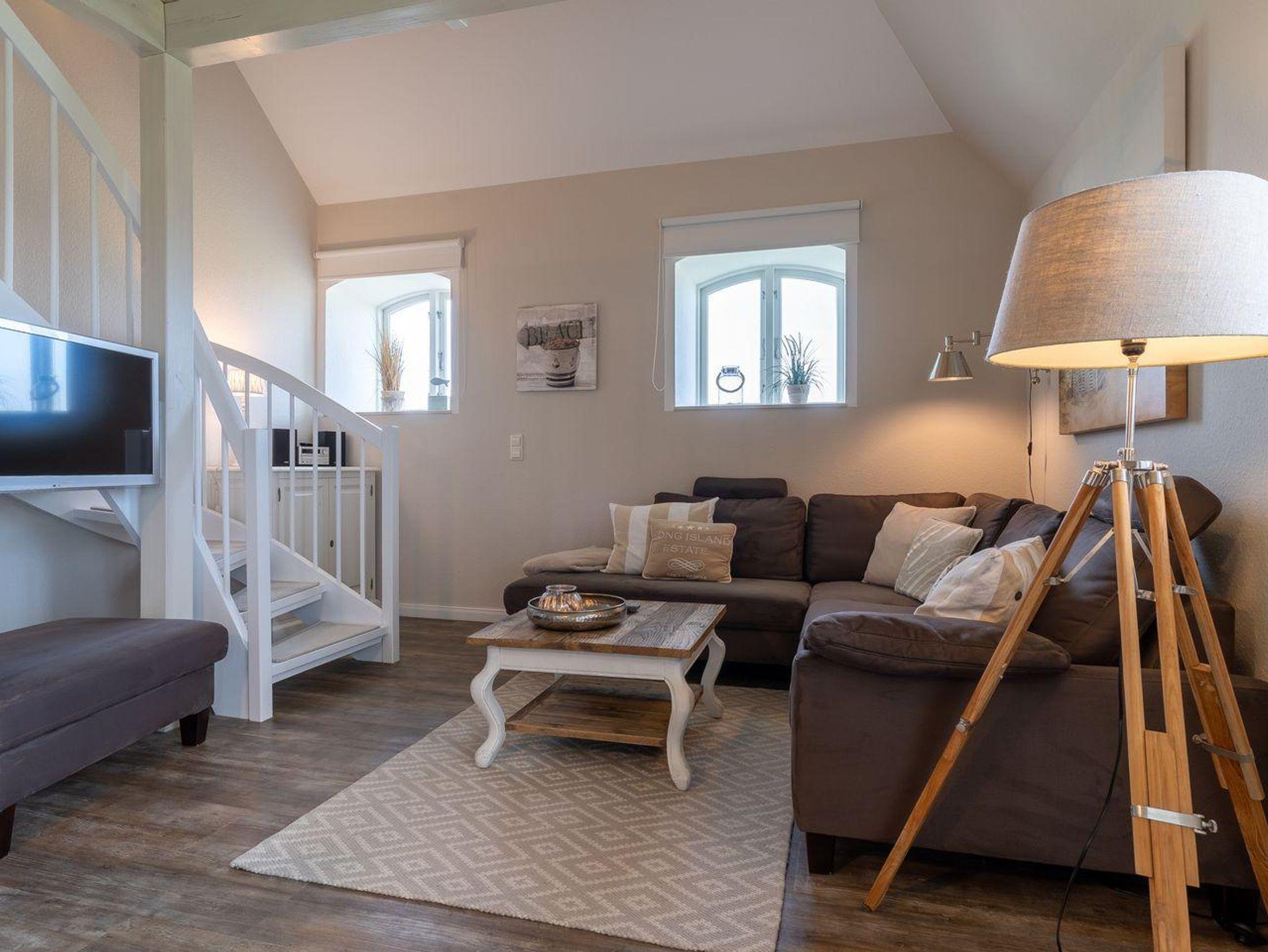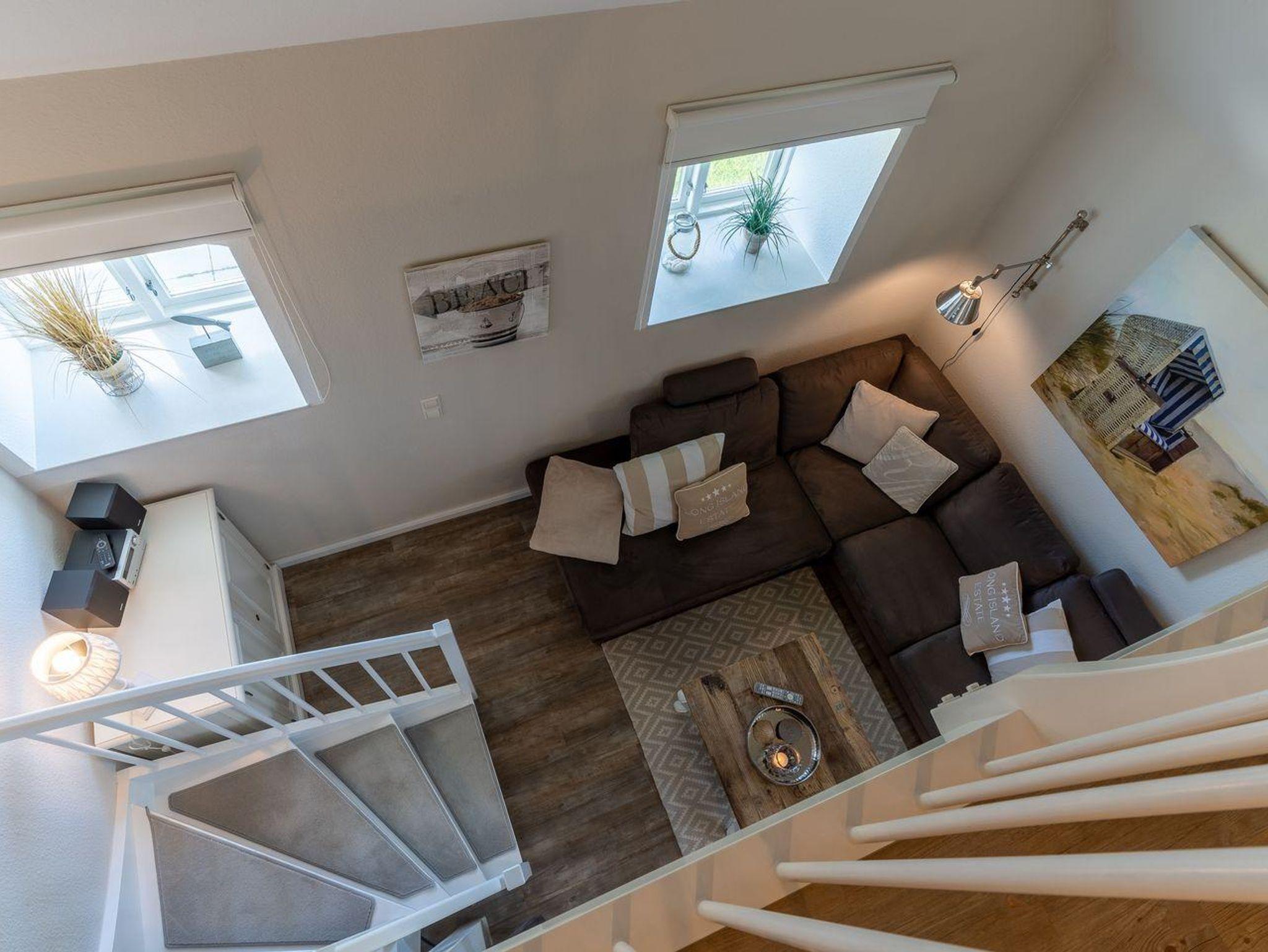 Das wunderschöne Apartment unter Reet wurde mit modernen Möbeln ausgestattet und bietet großzügigen Platz für 2 Personen. Das Grundstück mit Stellplatz wurde mit hübschen Pflanzen angelegt. Auf der Sonnenterrasse mit Gartenmöbeln und Strandkorb, umgeben von Schafwiesen und Pferdekoppeln, kann man herrlich ausspannen und die Ruhe genießen. Das Appartement befindet sich im Erdgeschoss über 2 Etagen. Es verfügt über ca. 60 m² Wohnfläche und teilt sich wie folgt auf: Auf der ersten Etage befindet sich ein großzügiger Wohnraum mit einer offenen Küche und einem gemütlichen Essbereich. Die Küche ist voll ausgestattet. Ein separates Duschbad bietet jeden Komfort. Über eine Holztreppe gelangt man zur Schlafgalerie im Dachgeschoss. Das Schlafzimmer verfügt über ein 1,8 x 2,0 m Bett. Kostenlose W-LAN Nutzung.