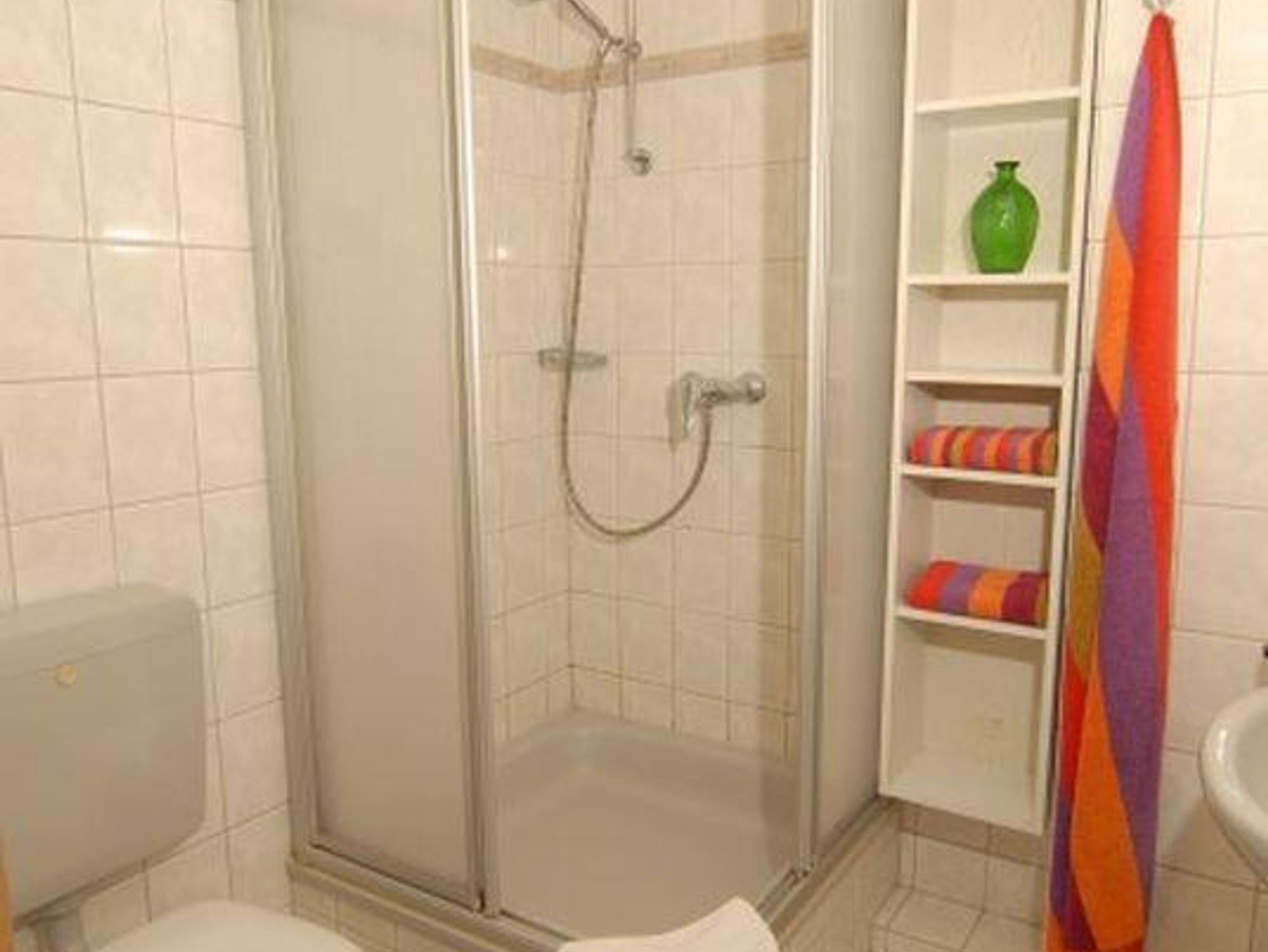 Bad: Dusche, Waschbecken, WC, Regal, Duschkabine