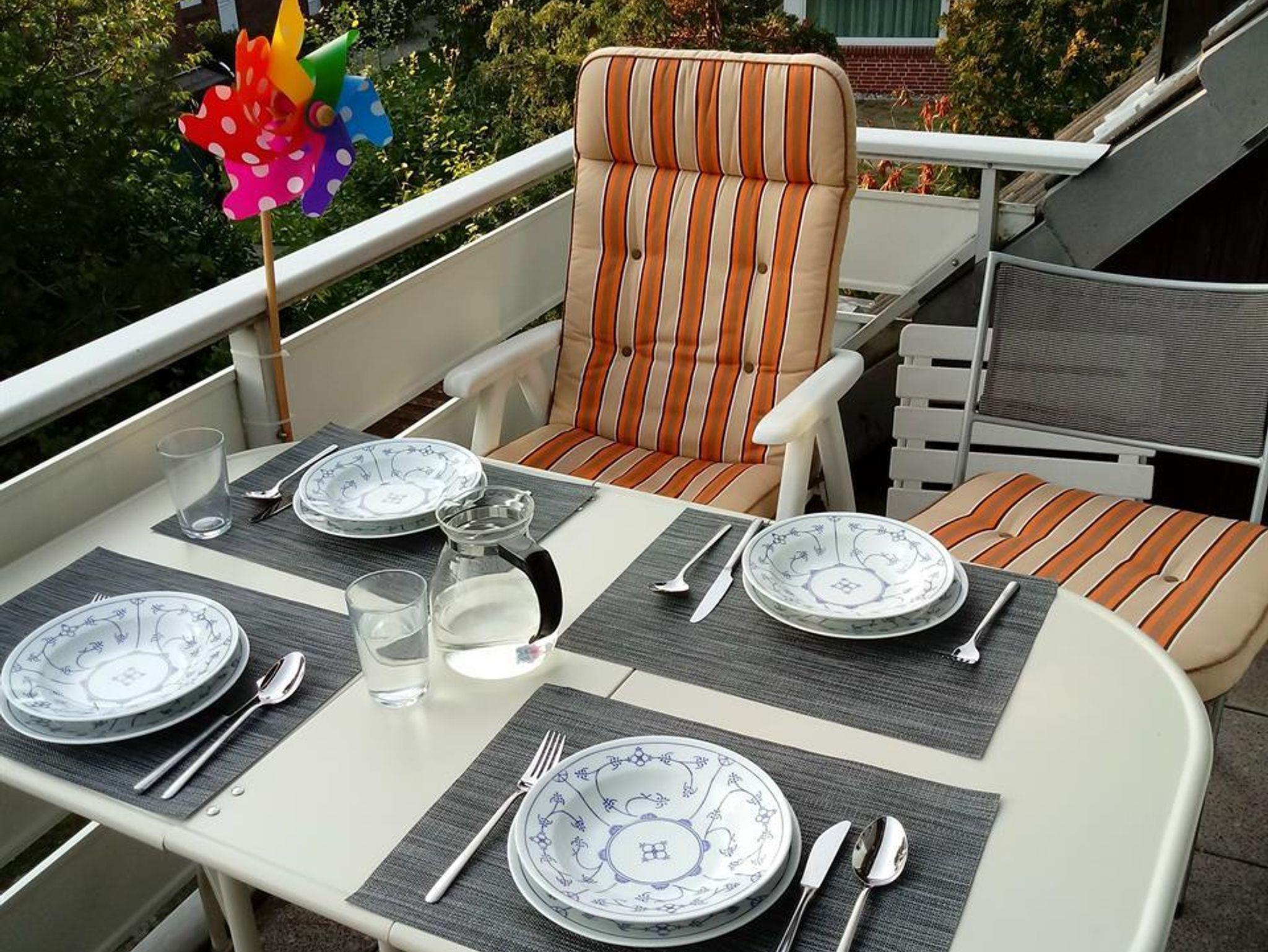 Der möblierte Südwest-Balkon mit ausfahrbarer Markise lädt zum Entspannen, Essen und Sonnenbaden ein.