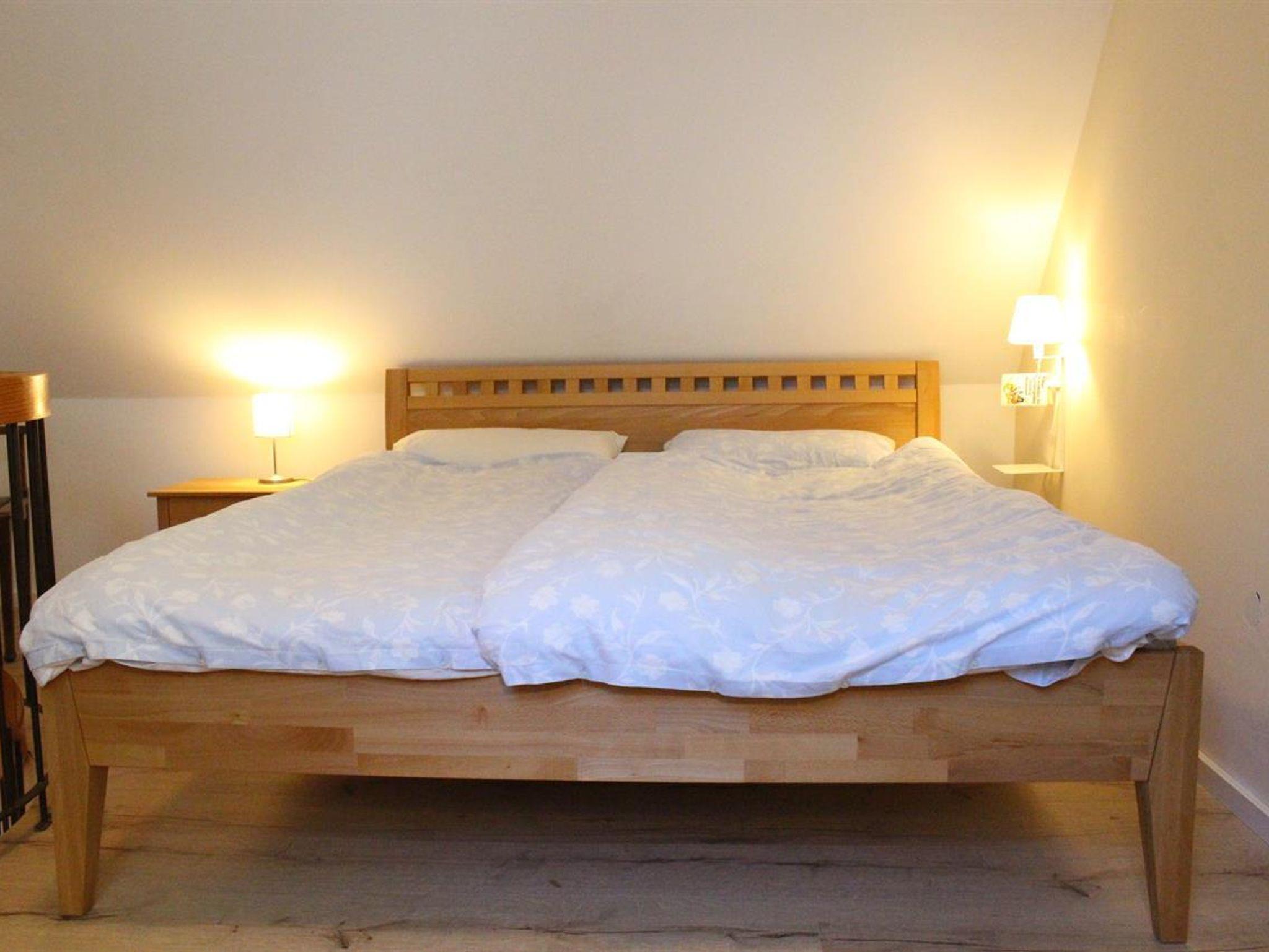 Über eine Wendeltreppe erreichen Sie den zweiten Schlafraum im Dachgeschoss. Ausgestattet mit einem Doppelbett (1,80m x 2,10m), mit viel Stauraum (großer Einbaukleiderschrank und Abseite!) und mit einer kleinen Leseecke.