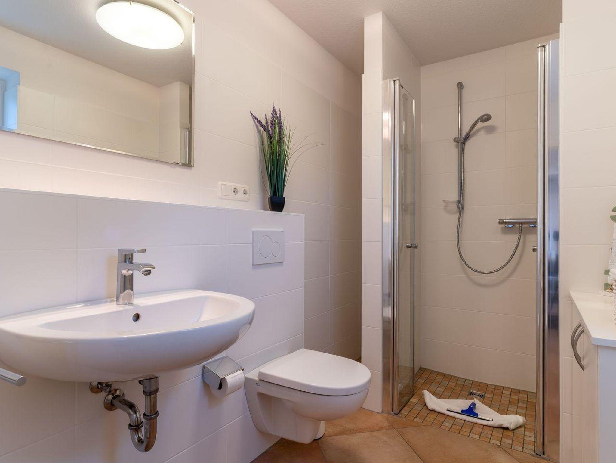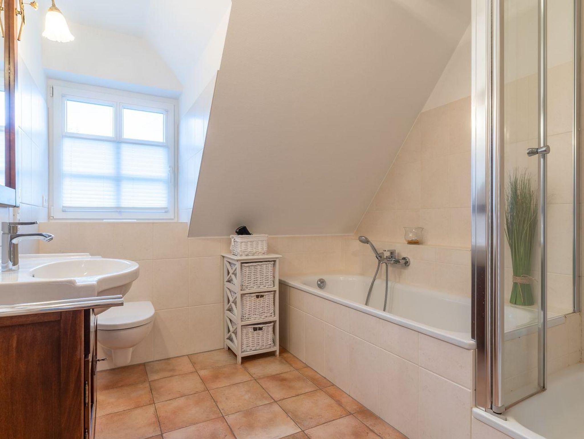 Besonders angenehm ist, dass das Haus über zwei moderne Bäder verfügt: Ein Vollbad mit Handtuchheizung und ein weiteres Bad mit ebenerdiger Dusche. Im Erdgeschoss finden Sie zudem einen umfangreich ausgestatteten Hauswirtschaftsraum, der keine Wünsche offen lässt.