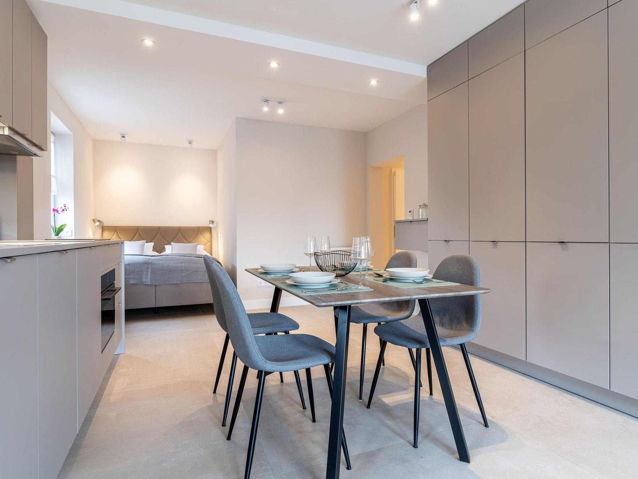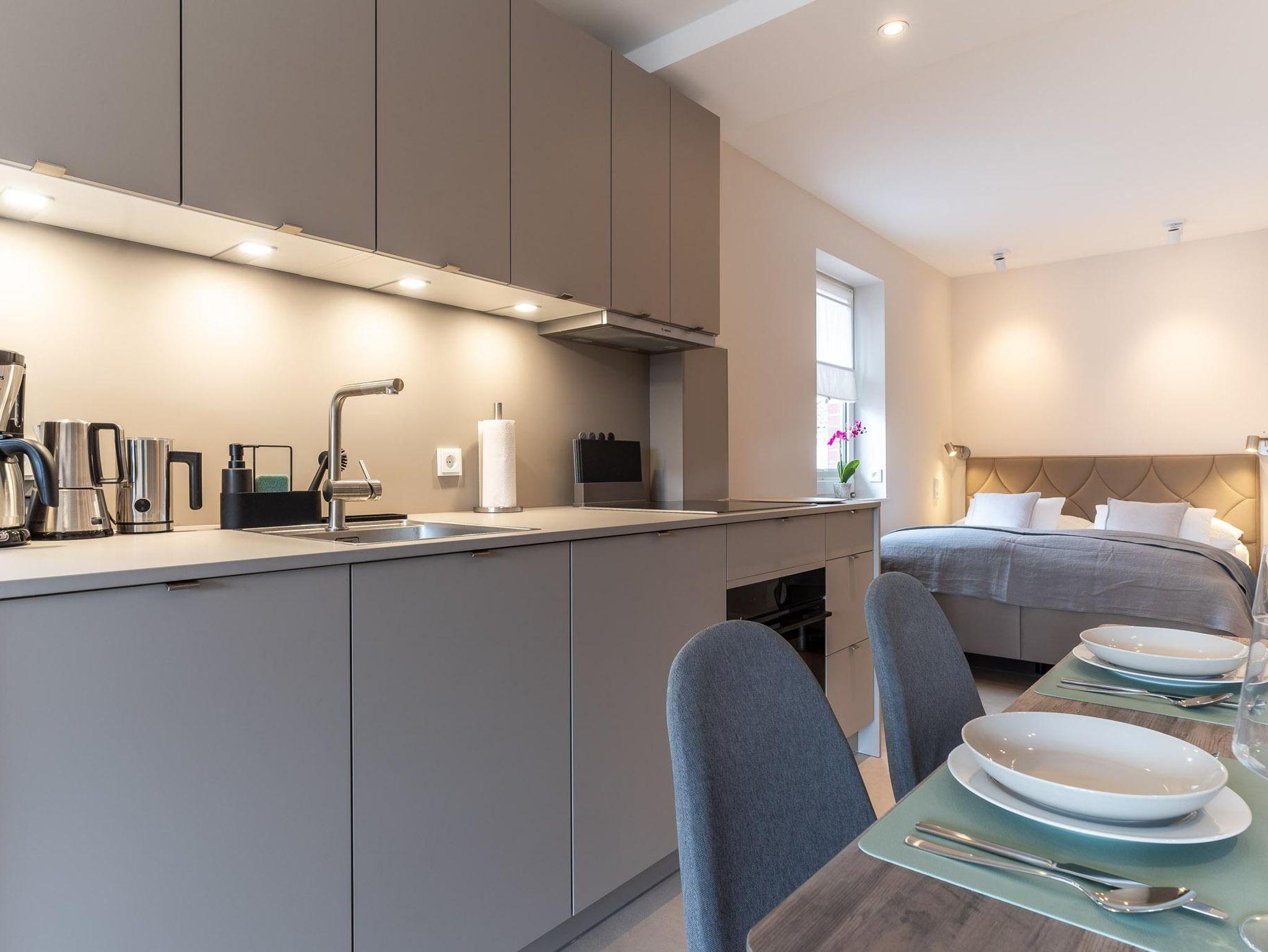 (160*200) und einen großzügigen Wohn-Essbereich mit integrierter Küchenzeile.