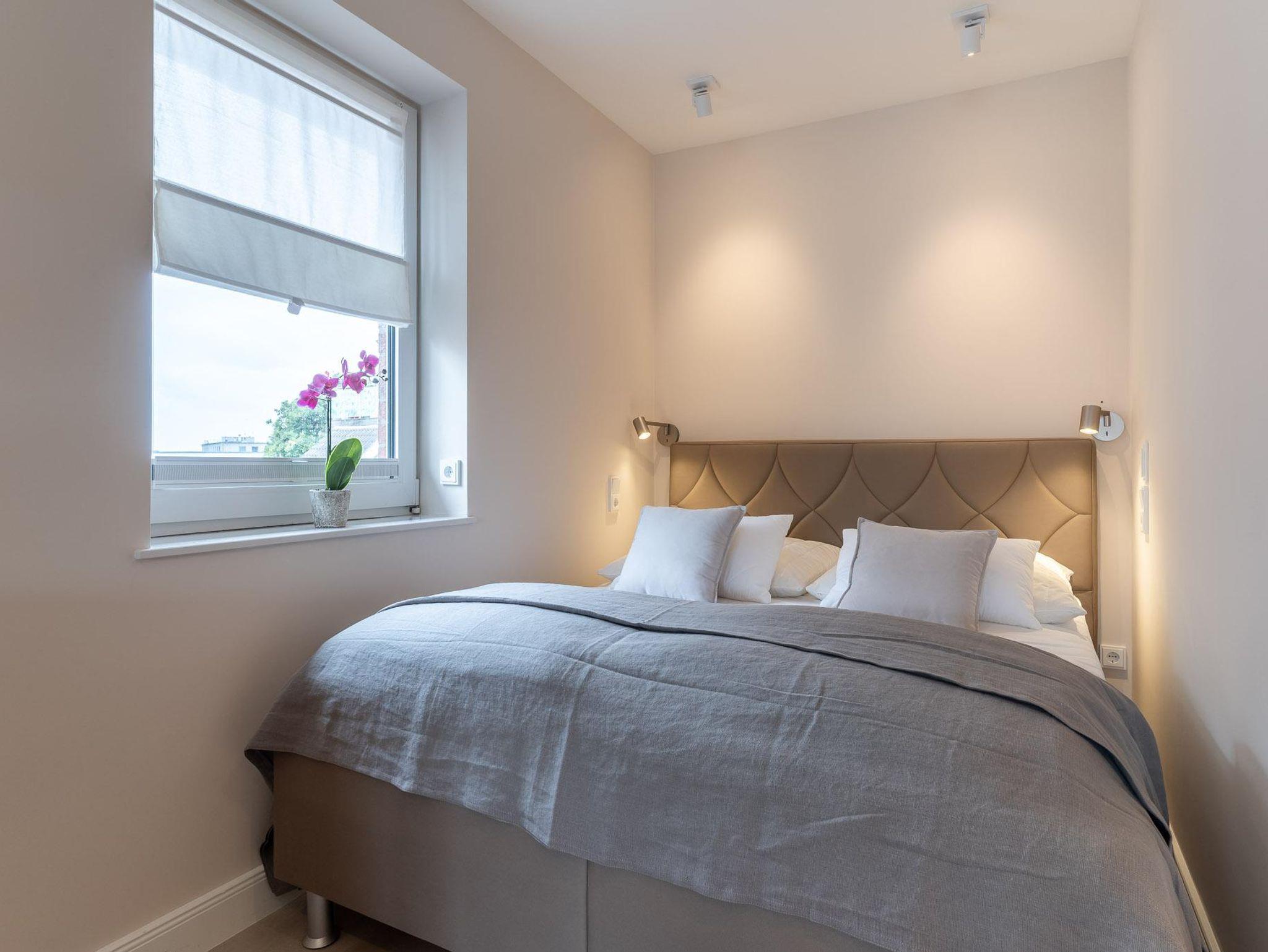 Zimmer Wohnung mit Balkon. Die Wohnung hat 1 Schlafraum mit Doppelbett
