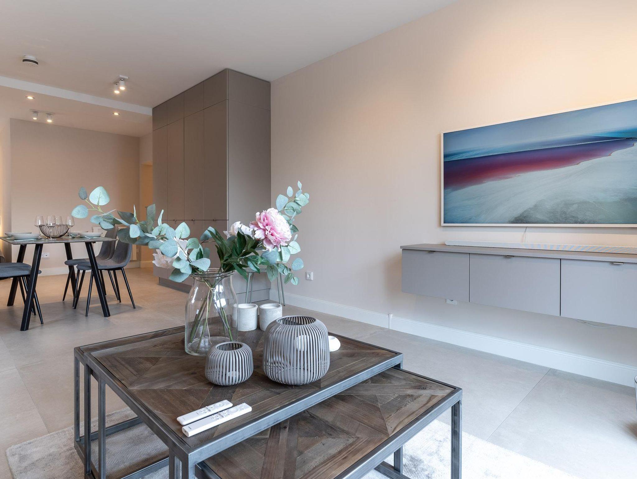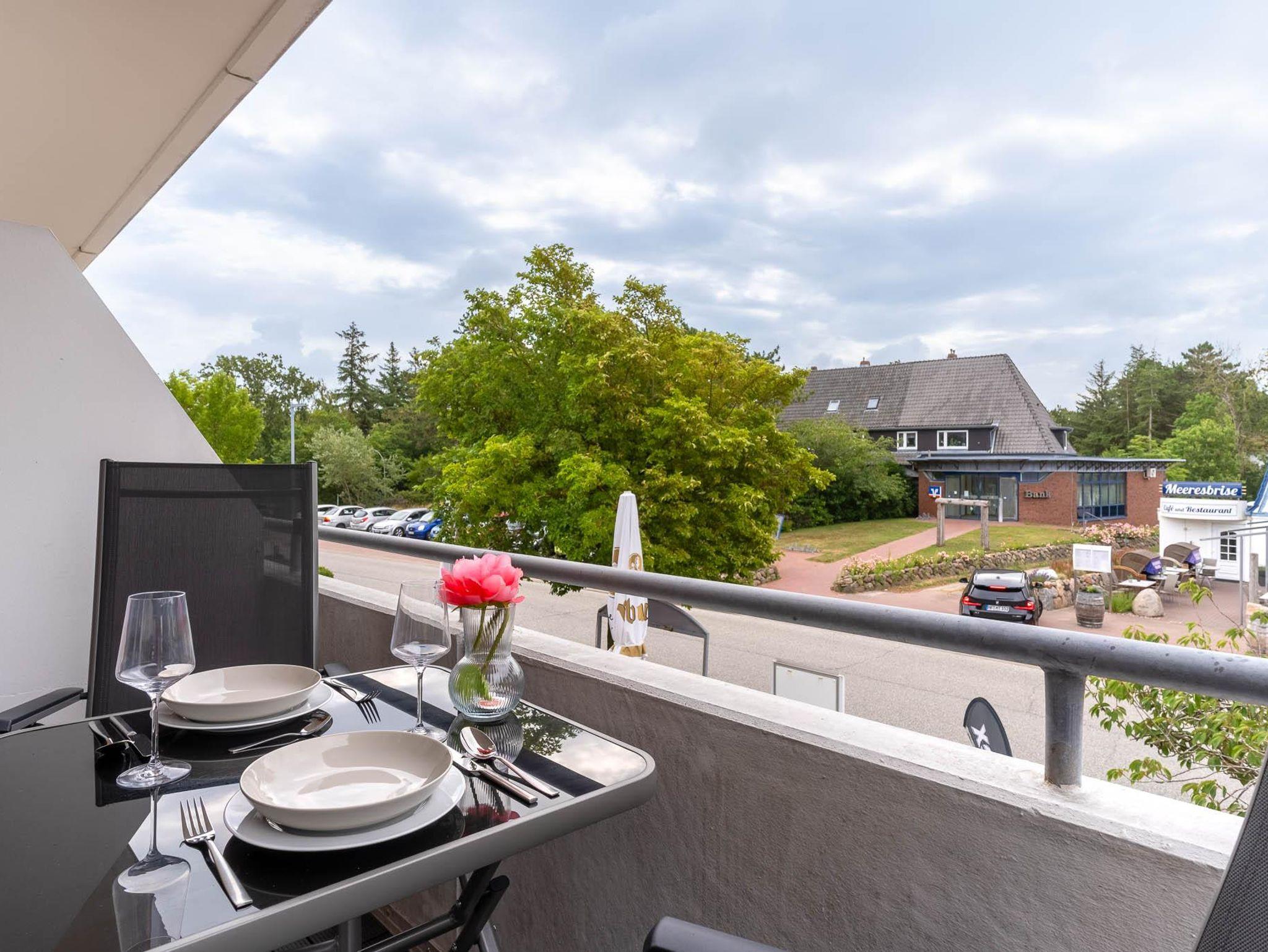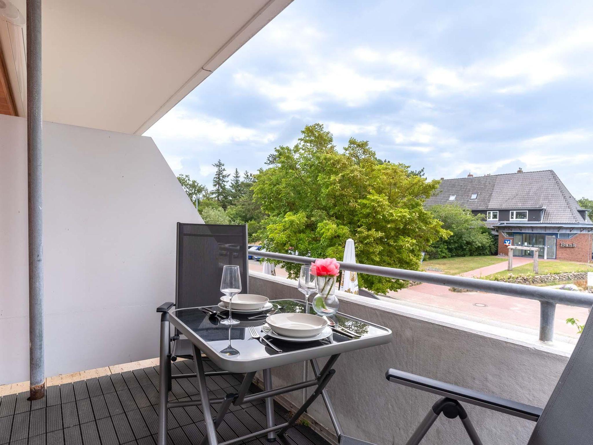 Vom Wohnraum aus haben Sie Zugang zum großen möbliertem Balkon, der zum Osten