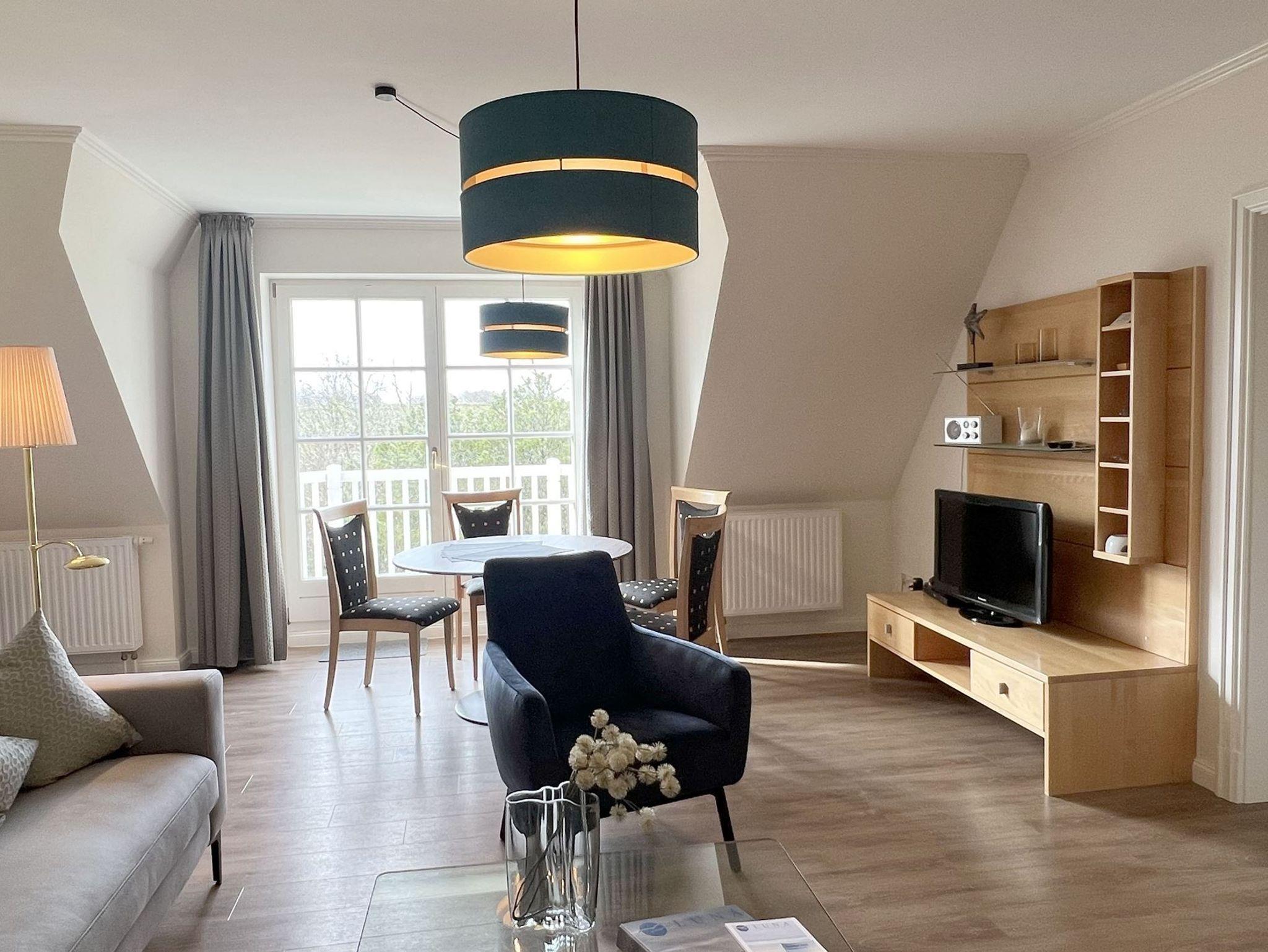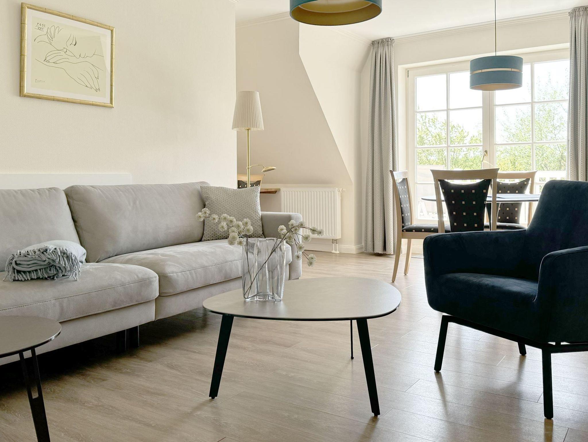 Die 75 qm dieser wunderbaren Wohnung teilt sich wie folgt auf: Eingangsbereich; Eingangsdiele mit Garderobe; großzügiger Wohn-Essbereich mit direktem Zugang auf einen Balkon mit Gartenmöbeln, zusätzlich im Dünengelände eine große, durch Friesenwälle und Gehölze abgeschirmte Terrasse mit Gartenmöbeln und einem Strandkorb. Zwei Schlafzimmer mit Doppelbetten, zwei Duschbäder/WC. Separate Küche. Im Untergeschoss befindet sich eine Gemeinschaftssauna, Ruheraum, verschiedene Duschen, Fußbäder, Solarium, Fitnessraum, Tischtennis. Im Außenbereich: ein Spielplatz für die Kleinsten, Stellplatz, Fahrradständer