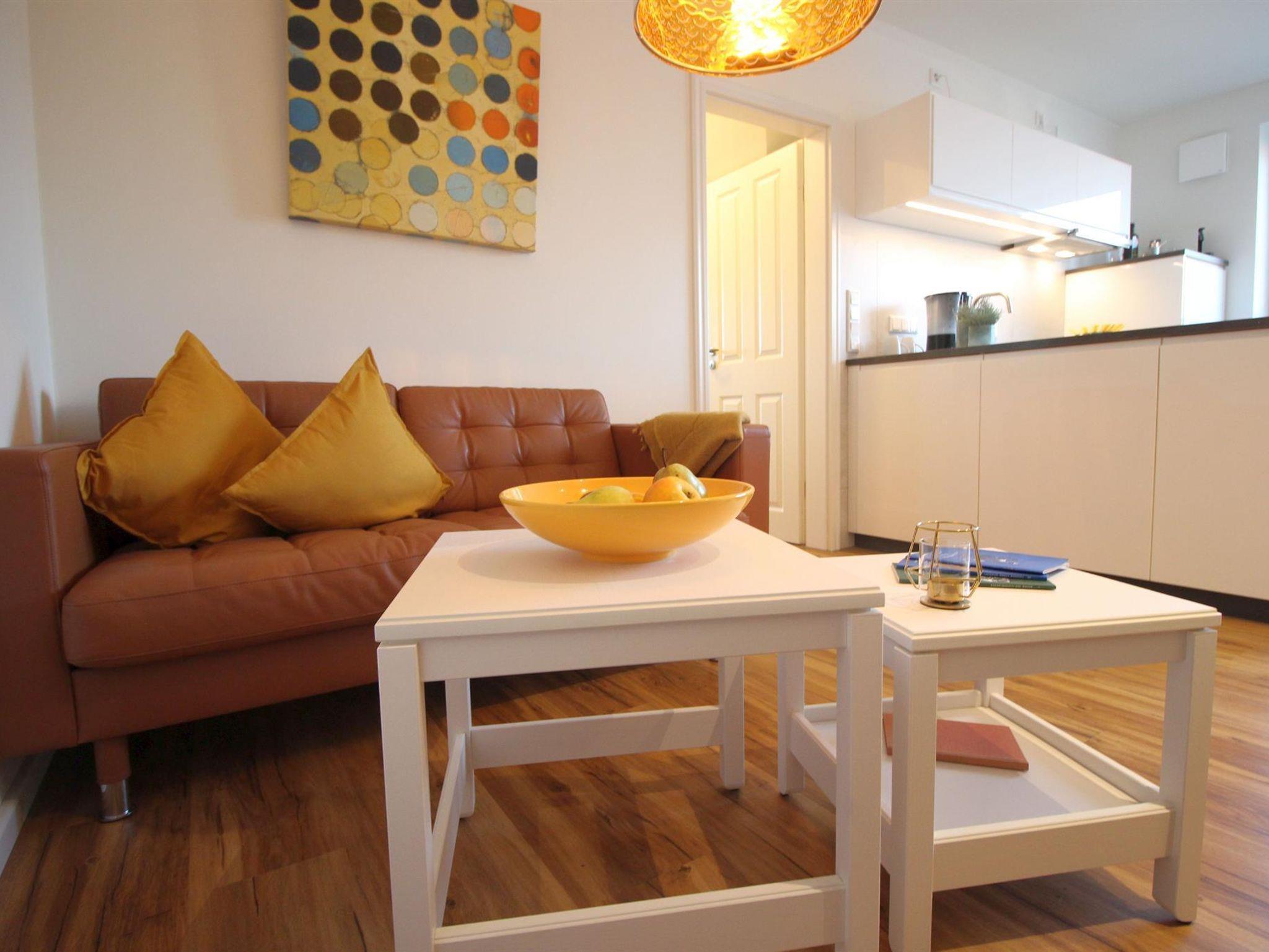 Die Wohnung ist ca. 32 qm groß, bietet Platz für zwei Personen und ist im Obergeschoss gelegen.
