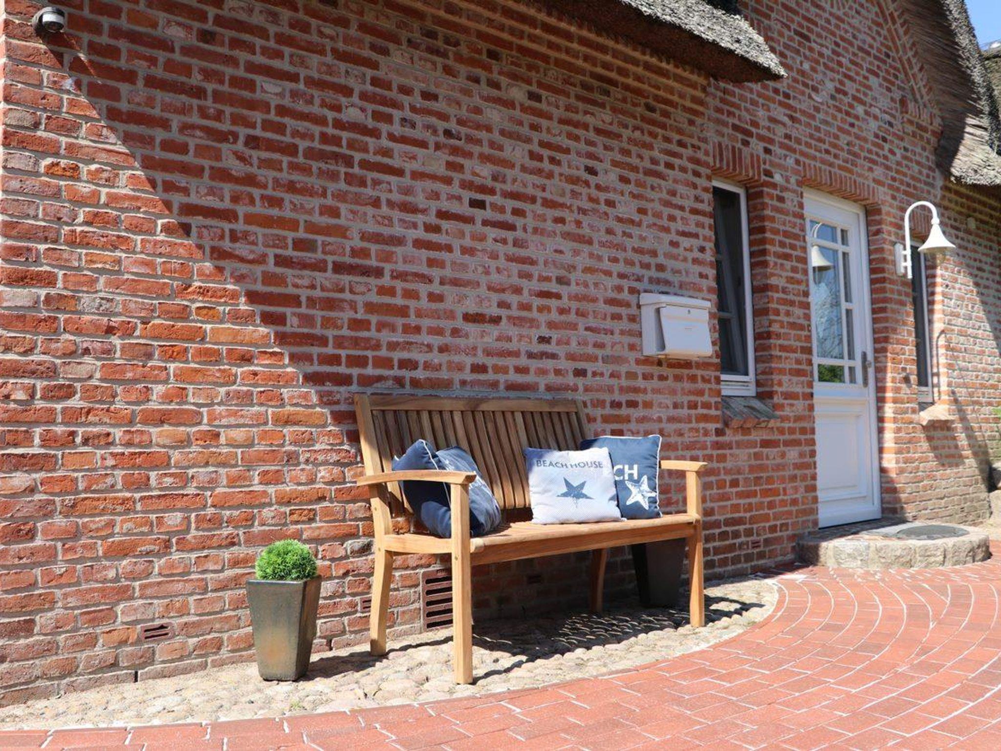 Eine möblierte Südwest-Terrasse, zwei Sonnenliegen und ein gemütlicher Strandkorb sowie ein vom Friesenwall eingebetteter Sitzplatz sind mit einer Brise „Westwind“ jederzeit für Sie reserviert.