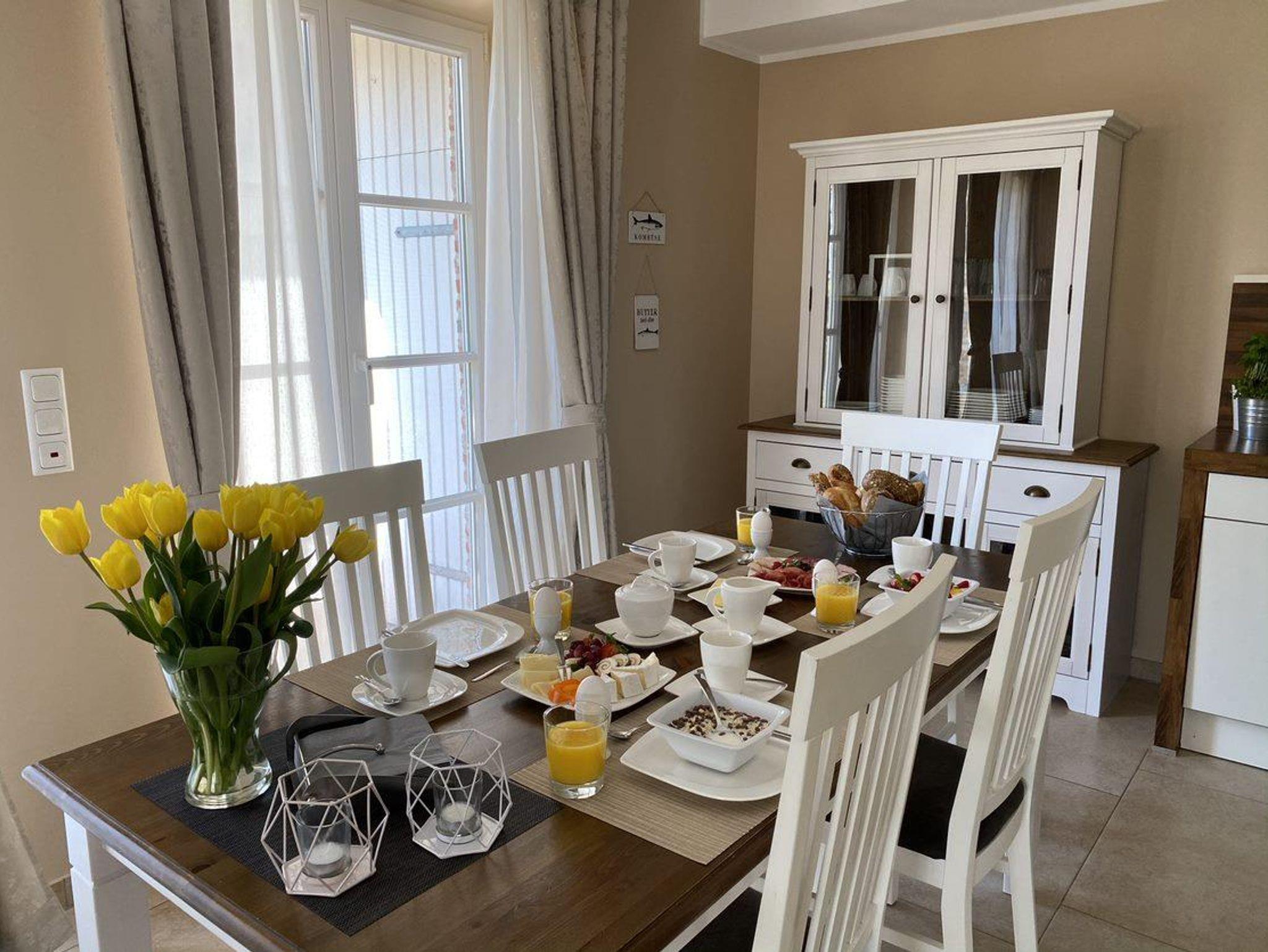 Eine exklusive Ausstattung bietet den Gästen einen hohen Wohnkomfort und feinmaschige Fliegengitter halten im Wohn- und Schlafbereich lästige Insekten fern. Das Gebäude wird durch eine Gaszentralheizung beheizt. Für das Objekt stehen zwei Pkw-Parkplätze sowie ein 5fach-Fahrradständer direkt vor der Haustür zur Verfügung.