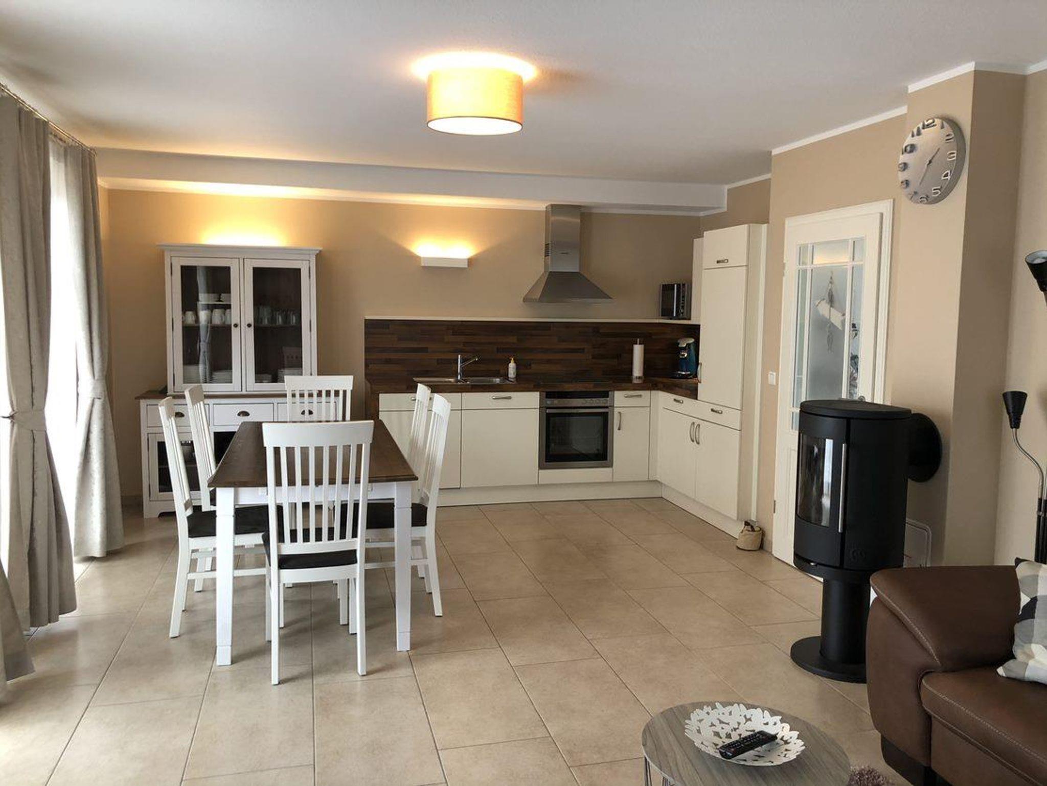 Im Essbereich befindet ich eine komplett ausgestattete Einbauküchenzeile, die durch eine schöne Essgruppe ergänzt wird.
