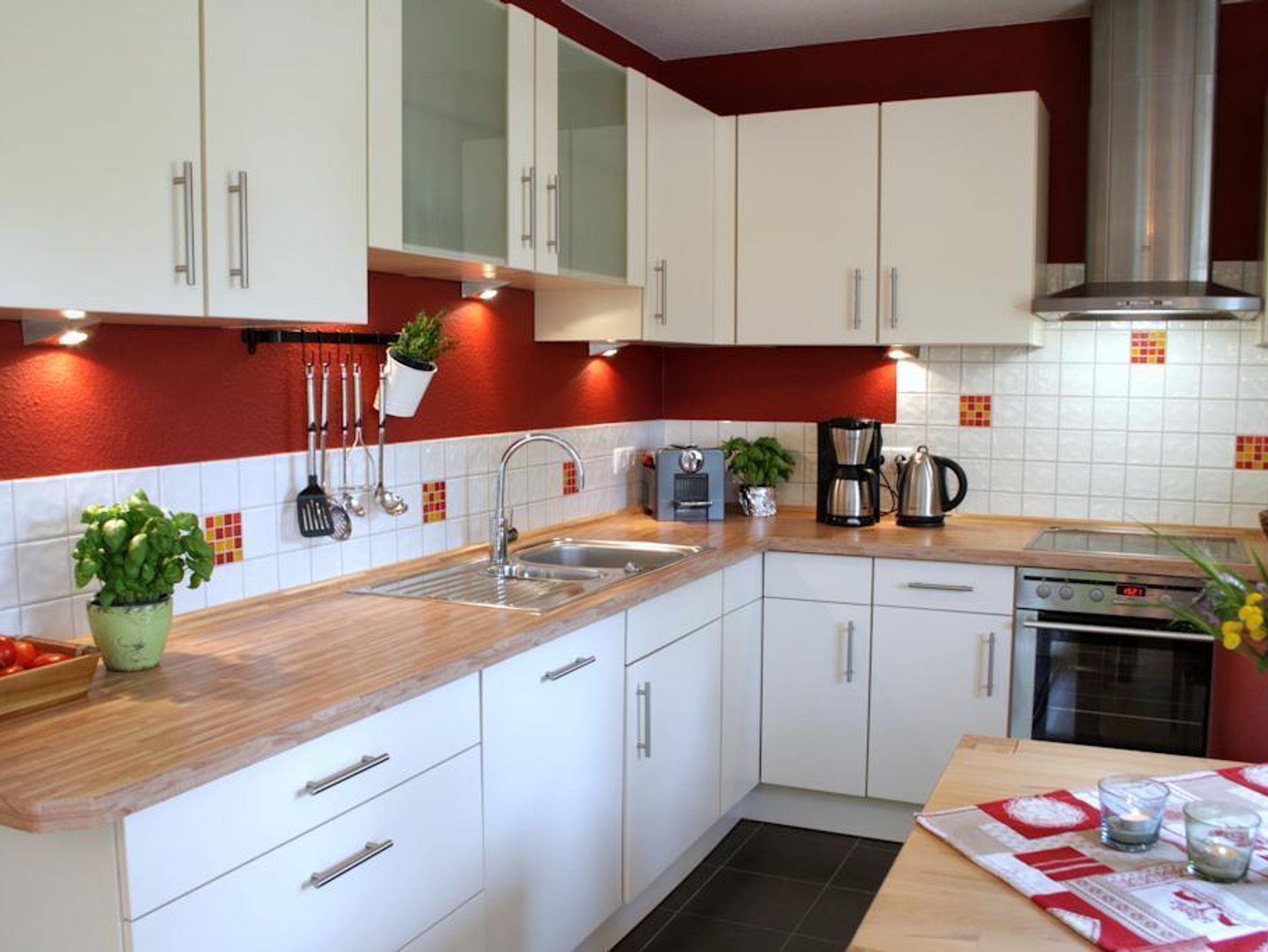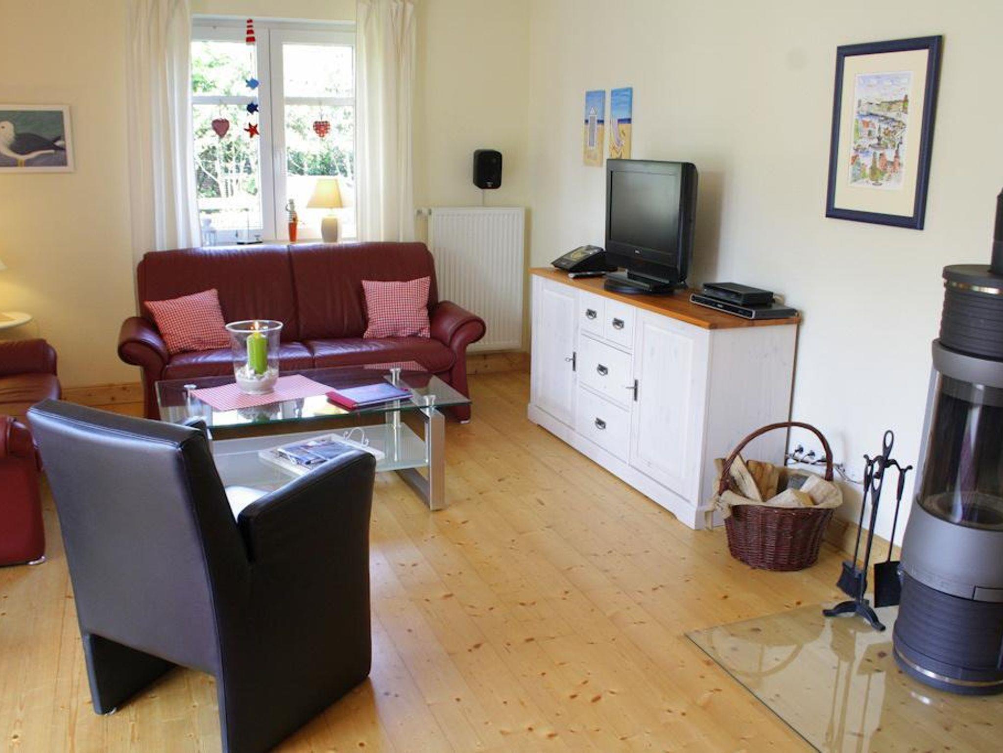 Diese 3-Zimmerwohnung mit 2 Schlafzimmern,einem Duschbad mit Sauna und WC bietet einen großzügigen Aufenthalt bis zu 4 Personen. Im 32qm großen Wohn- und Esszimmer befinden sich 2 moderne Sofas und 1 Sessel sowie ein Esstisch mit Stühlen und Einschiebebank. Designerleuchten verbreiten angenehmes Licht. Für kalte Wintertage gibt es einen Kaminofen. Die offene Markenküche hat eine großzügige Ausstattung in besonderer Qualität. Mikrowelle, Geschirrspüler, Umluftherd, Ceranfeld, Gefrierkombination, eine komplette Küchenaustattung und hochwertiges Geschirr sind Standard. In den Schlafräumen befinden sich 1 nobles Doppelbett im Retro-Look und zum anderen 2 Einzelbetten. Die Fenster in den Schlafräumen sind mit Fliegengittern ausgestattet. Das hochmoderne Bad verfügt über Dusche mit Glasschiebetür, Waschtisch, Fön, WC, Handtuchwärmer sowie Fußbodenheizung.