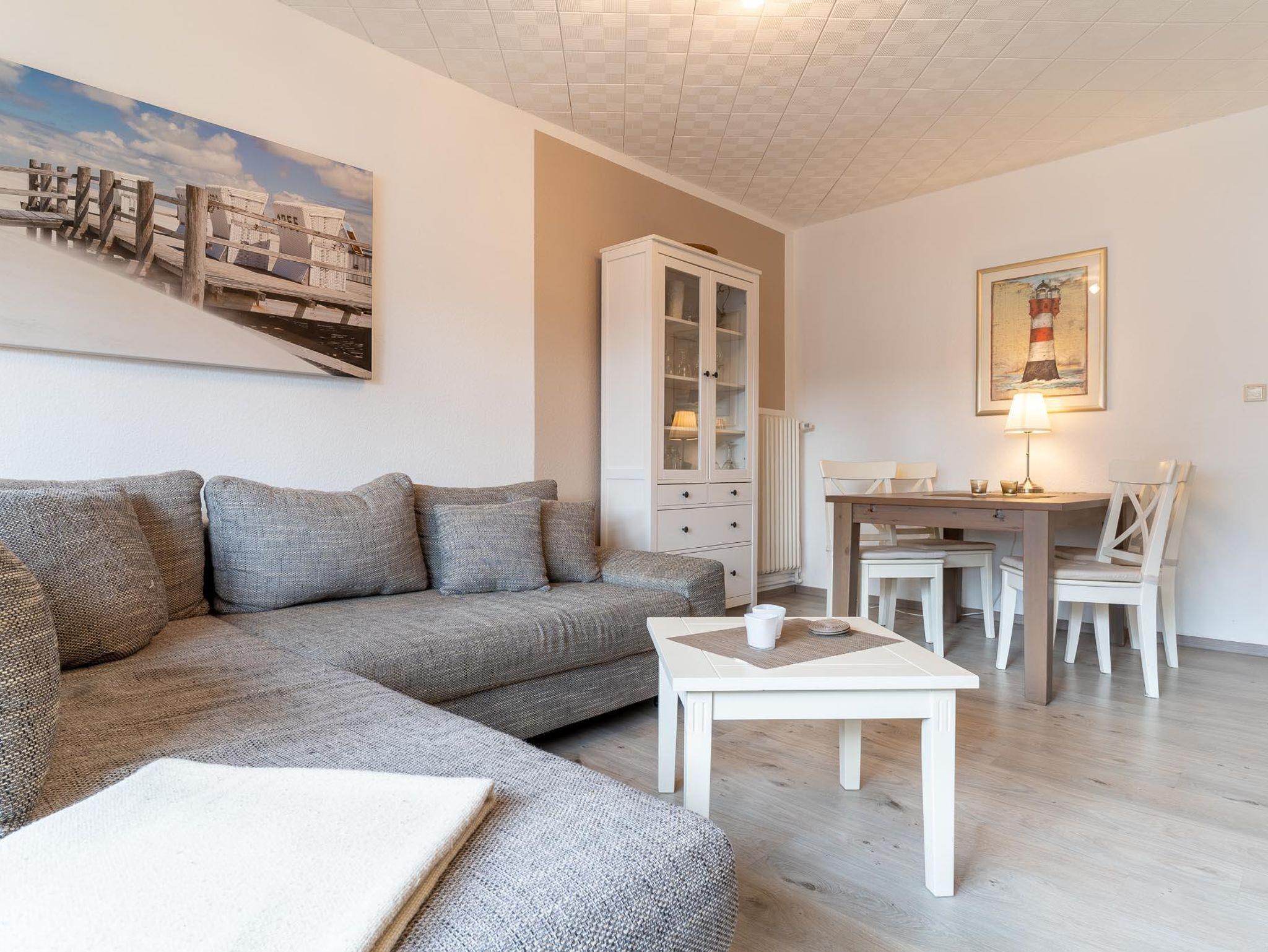 Die Wohnung Springfloot 1 ( ca. 49 qm) liegt im Erdgeschoss des Hauses, ist für bis zu 3 Personen (Nichtraucher) geeignet und wurde 2014 saniert.