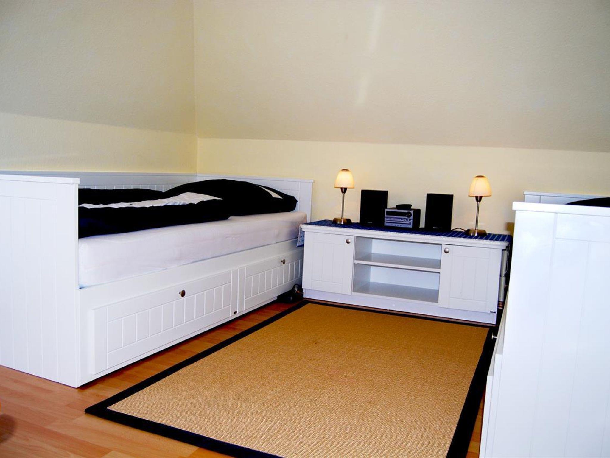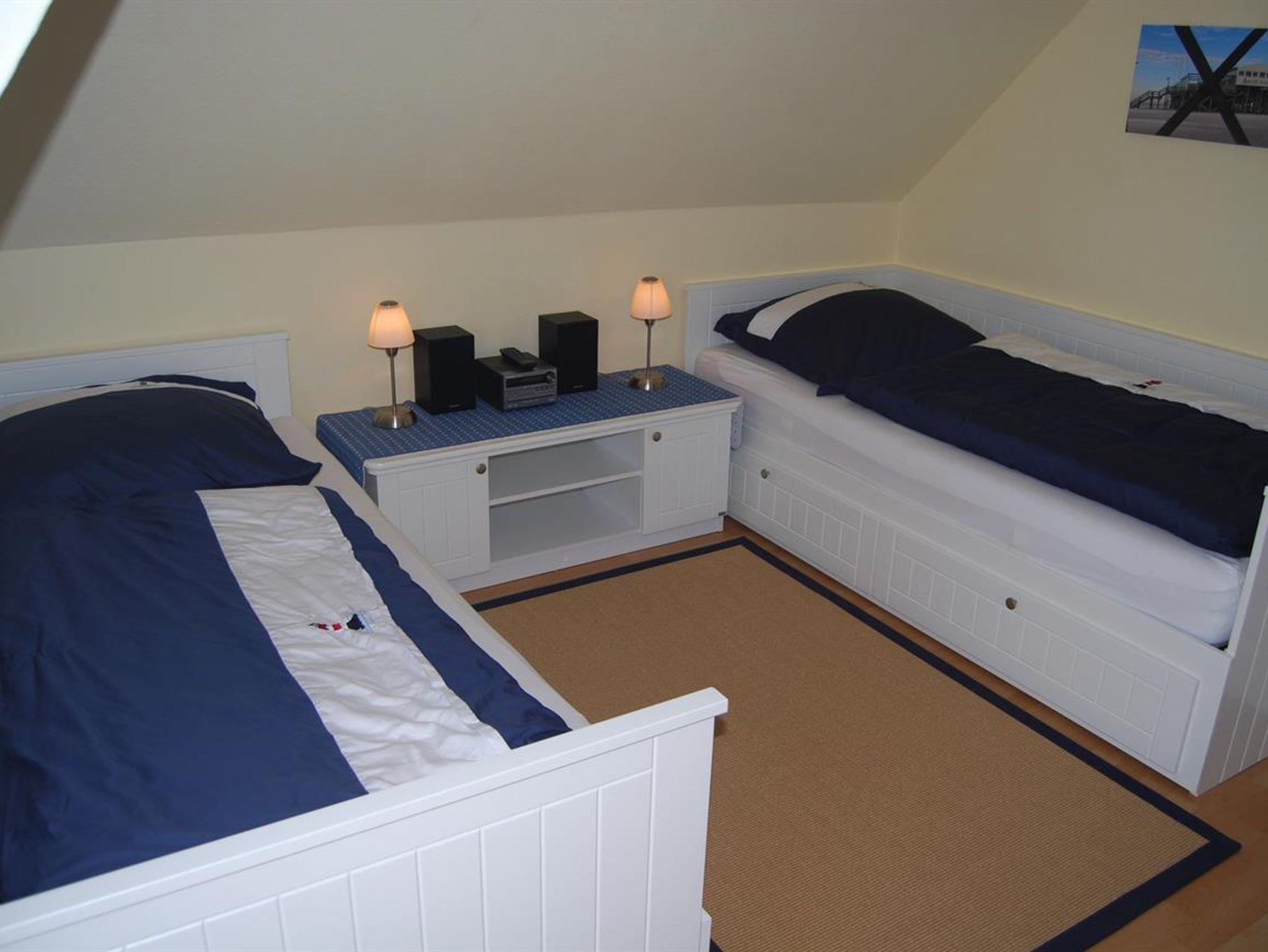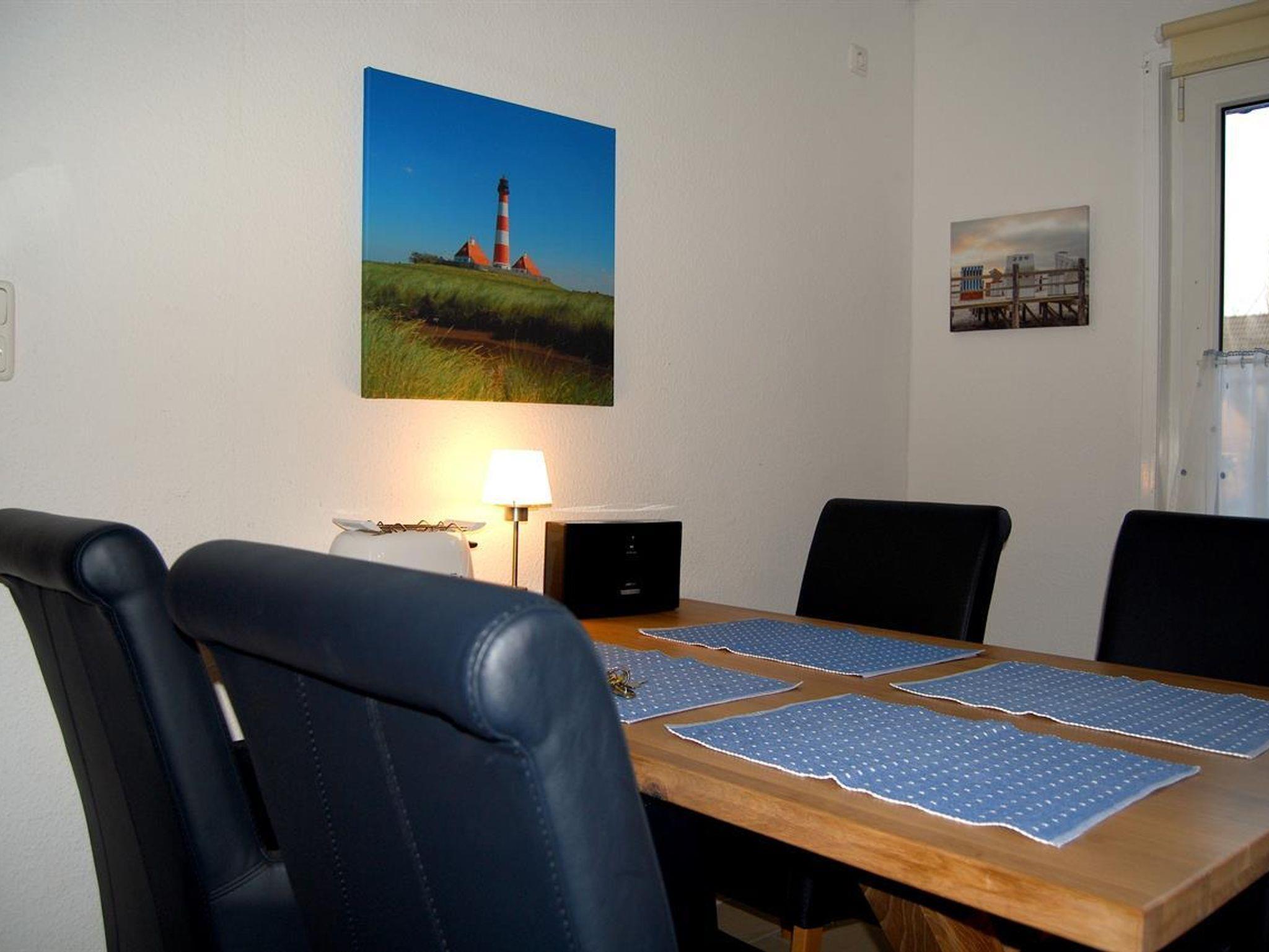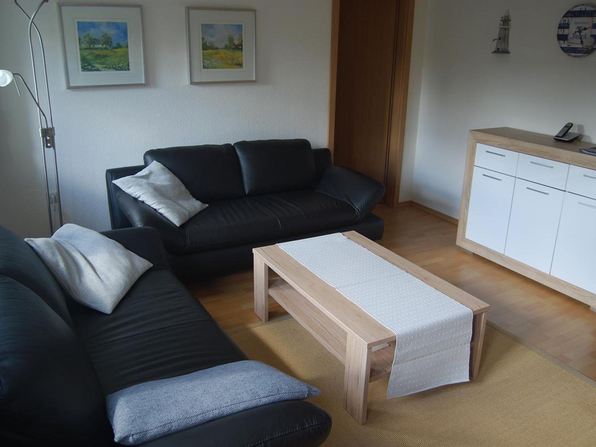 Unsere Obergeschoss-Wohnung ist einfach klasse. 75 qm für bis zu 4 Personen, 2 Schlafzimmer, eine nagelneue Einbauküche mit Granitarbeitsplatte und edlem Essplatz in Buche und Leder. Machen Sie es sich im modernen Wohnzimmer auf der Leder-Sitzgruppe bequem. Schauen Sie HD-Fernsehen mit vielen Kabelkanälen oder spielen Sie Brettspiele mit Ihren Kindern. Wenn das Wetter schön ist, können Sie auf dem grossen Balkon frühstücken oder abends auf dem edlen Weber-Kugelgrill grillen. Oder Sie geniessen dort ein Gläschen im Strandkorb und schauen in die Weite. Das Kinder-Schlafzimmer ist super gemütlich, hat 2 hochwertige Einzelbetten und einen schönen Kleiderschrank, alles in Weiss. Hochwertige Vossen-Handtücher und Irisette-Bettbezüge lassen keine Wünsche offen. Die Dekoration orientiert sich an dem Ambiente des Nordens und der Nordsee.