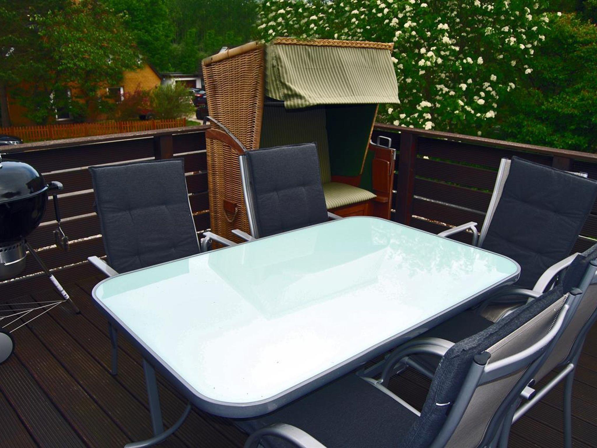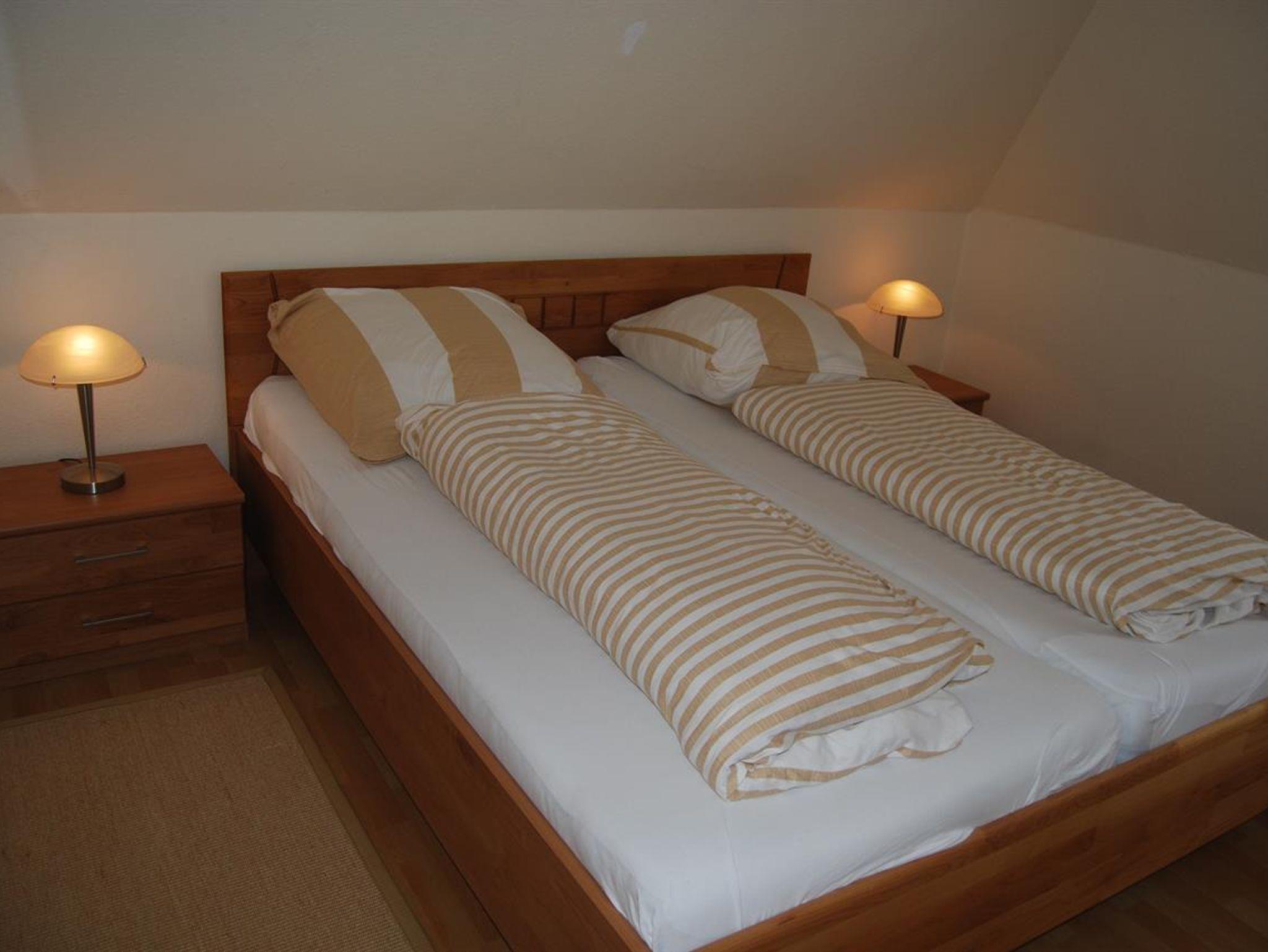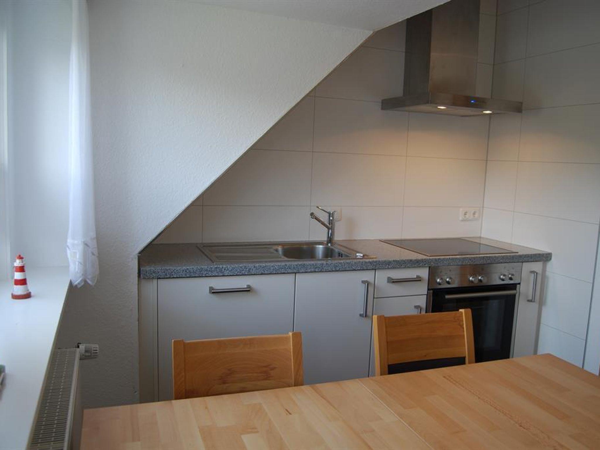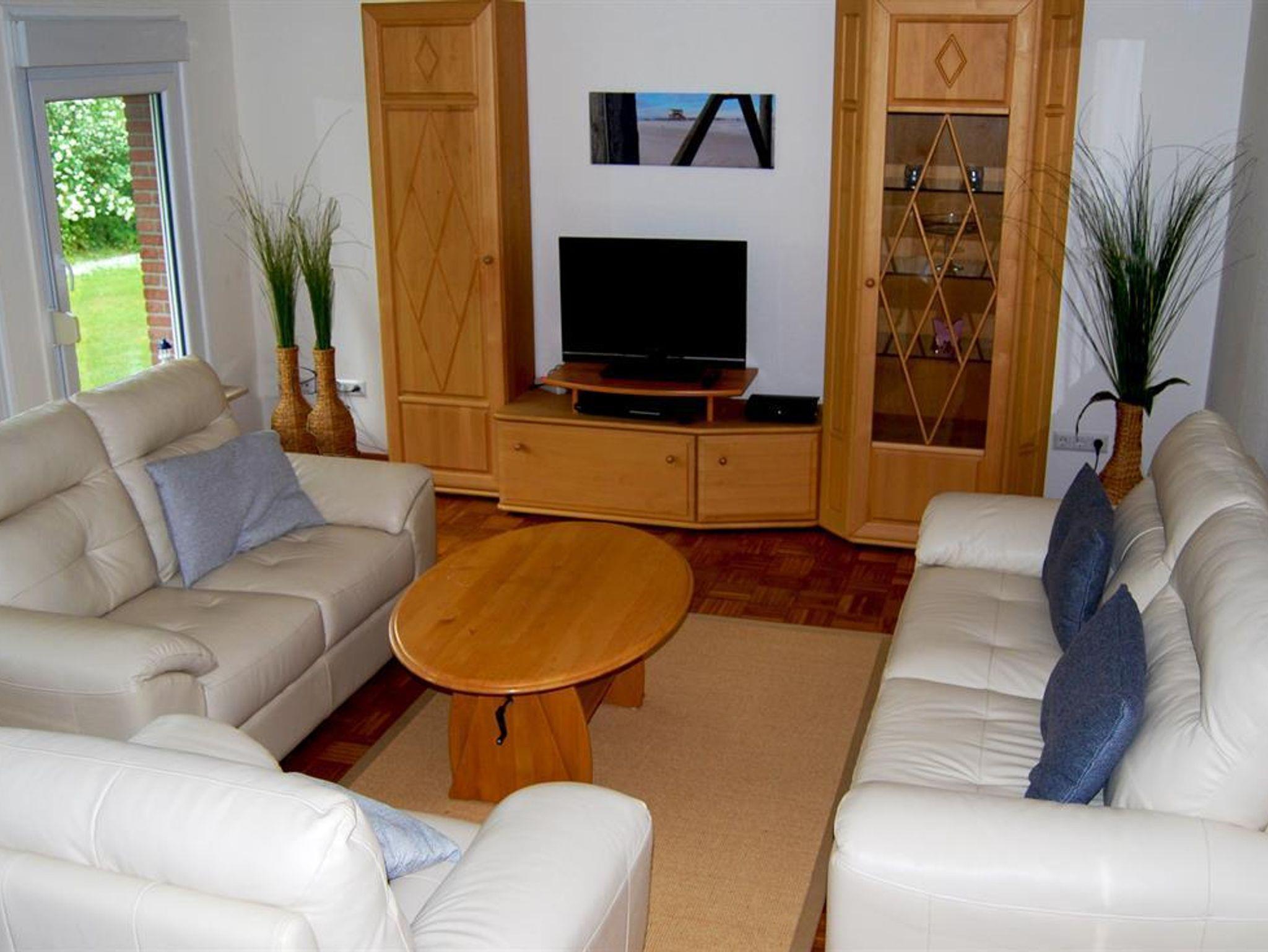 Unsere Obergeschoss-Wohnung ist einfach klasse. 75 qm für bis zu 4 Personen, 2 Schlafzimmer, eine nagelneue Einbauküche mit Granitarbeitsplatte und edlem Essplatz in Buche und Leder. Machen Sie es sich im modernen Wohnzimmer auf der Leder-Sitzgruppe bequem. Schauen Sie HD-Fernsehen mit vielen Kabelkanälen oder spielen Sie Brettspiele mit Ihren Kindern. Wenn das Wetter schön ist, können Sie auf dem grossen Balkon frühstücken oder abends auf dem edlen Weber-Kugelgrill grillen. Oder Sie geniessen dort ein Gläschen im Strandkorb und schauen in die Weite. Das Kinder-Schlafzimmer ist super gemütlich, hat 2 hochwertige Einzelbetten und einen schönen Kleiderschrank, alles in Weiss. Hochwertige Vossen-Handtücher und Irisette-Bettbezüge lassen keine Wünsche offen. Die Dekoration orientiert sich an dem Ambiente des Nordens und der Nordsee.