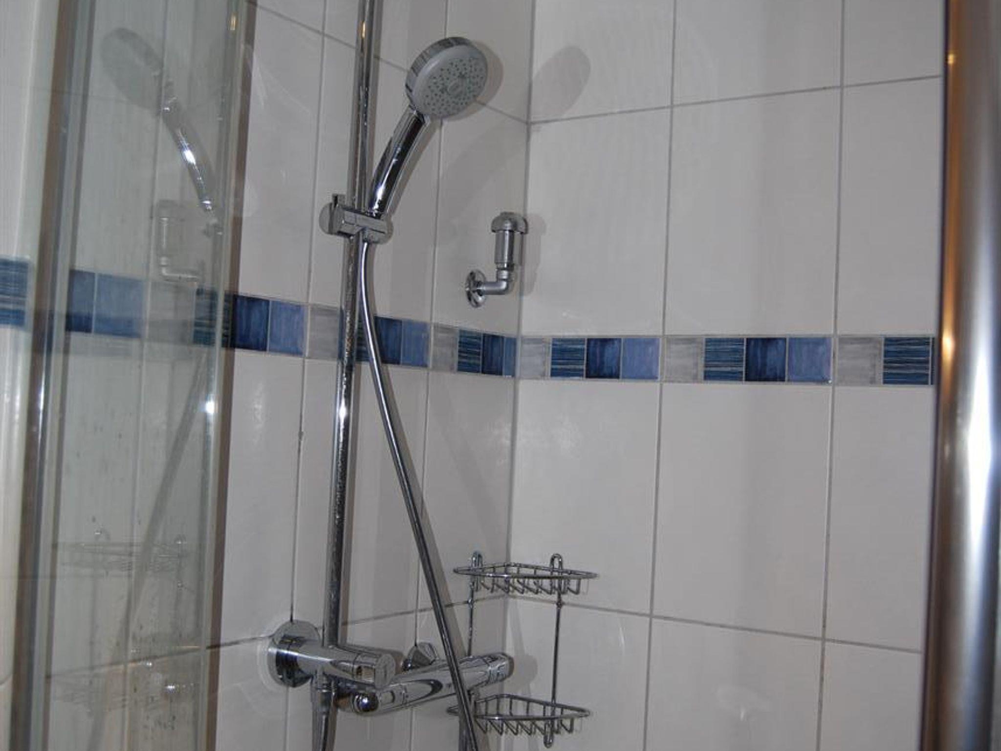Das Badezimmer wurde in 2017 renoviert und verfügt über eine Premium Grohe-Regendusche (Glaswand mit Keramik Duschwanne), edlem V&B Hänge-WC und einen Premium-Waschtisch von V&B mit hochwertiger Grohe Armatur.