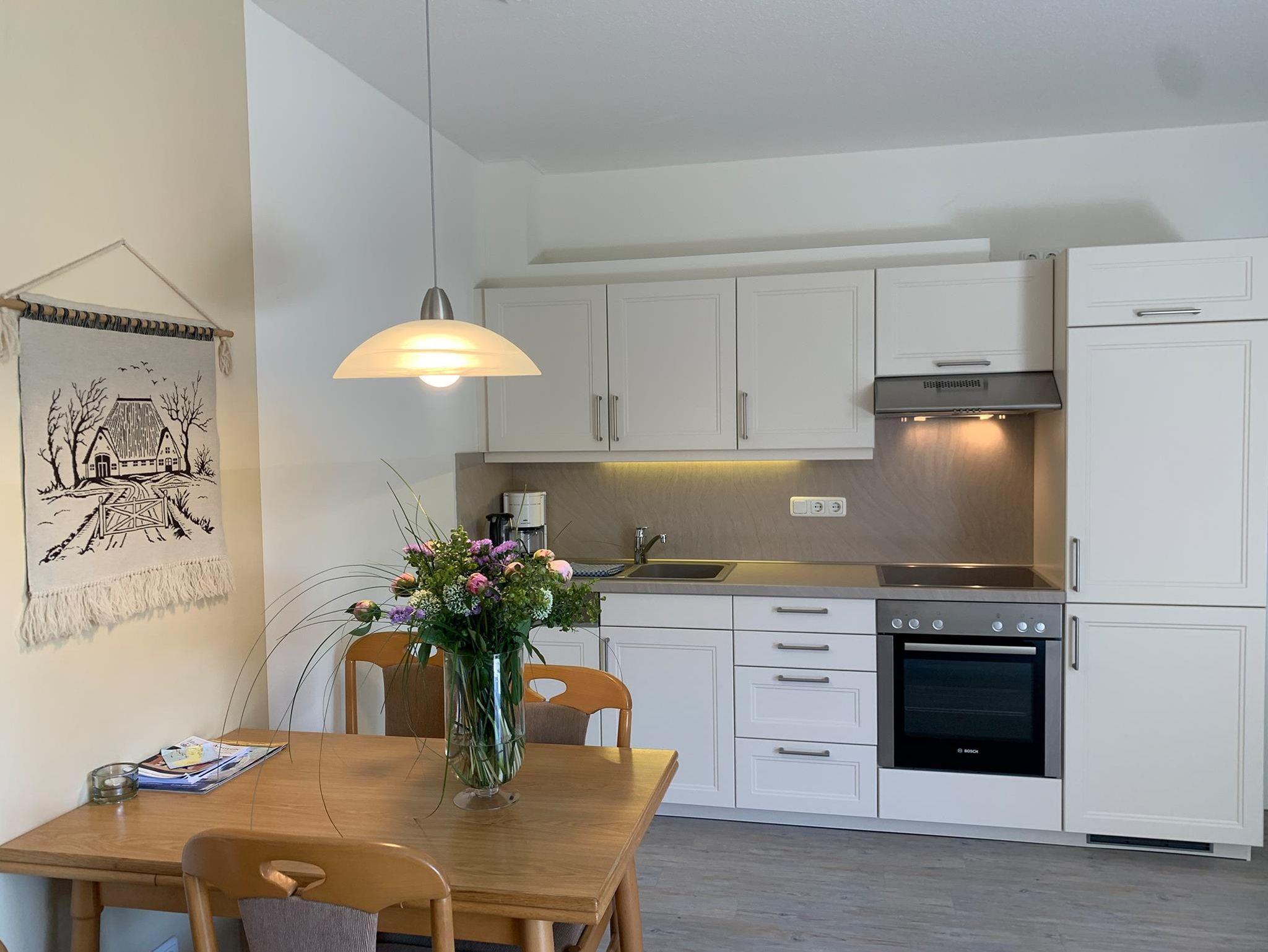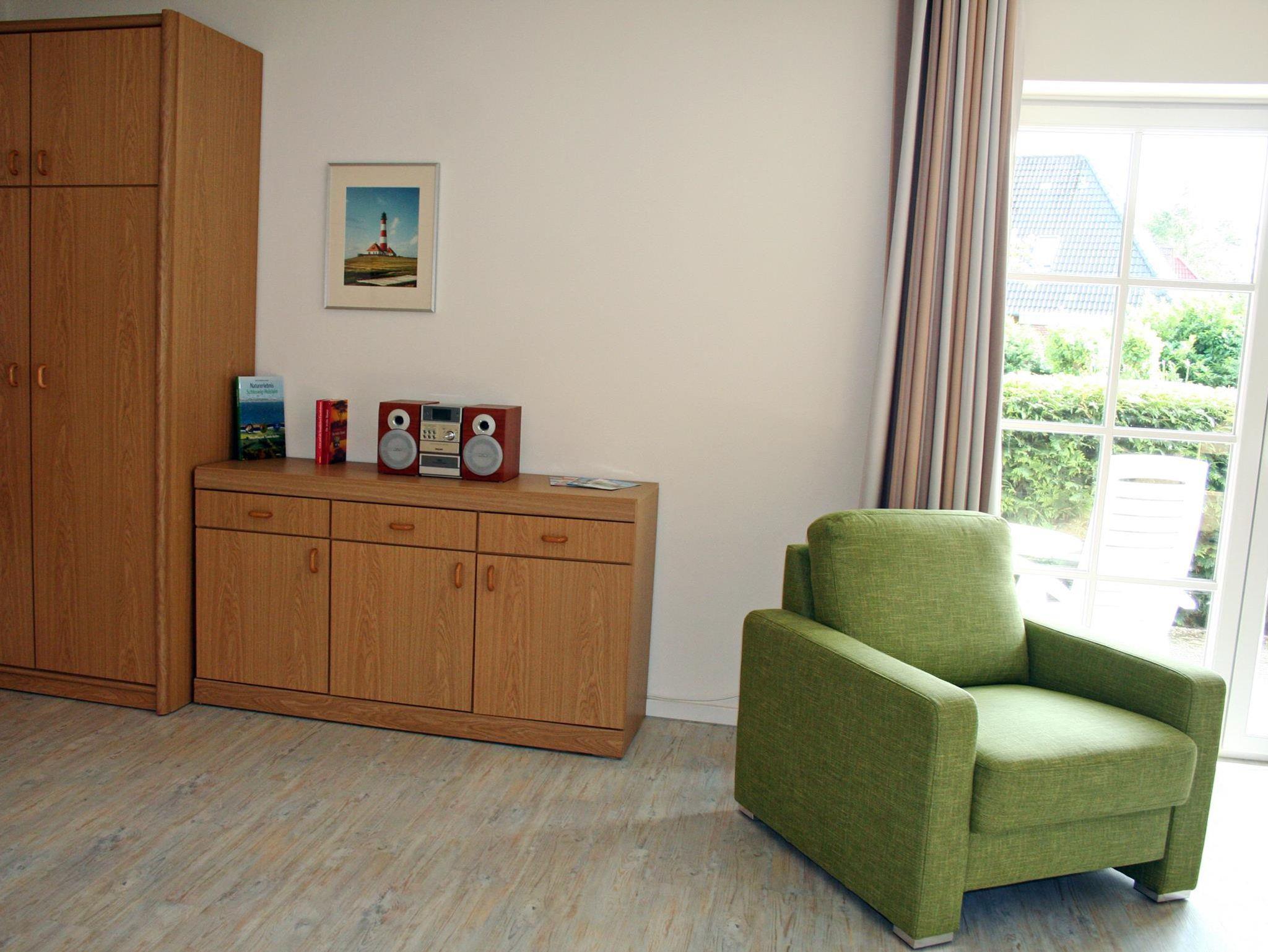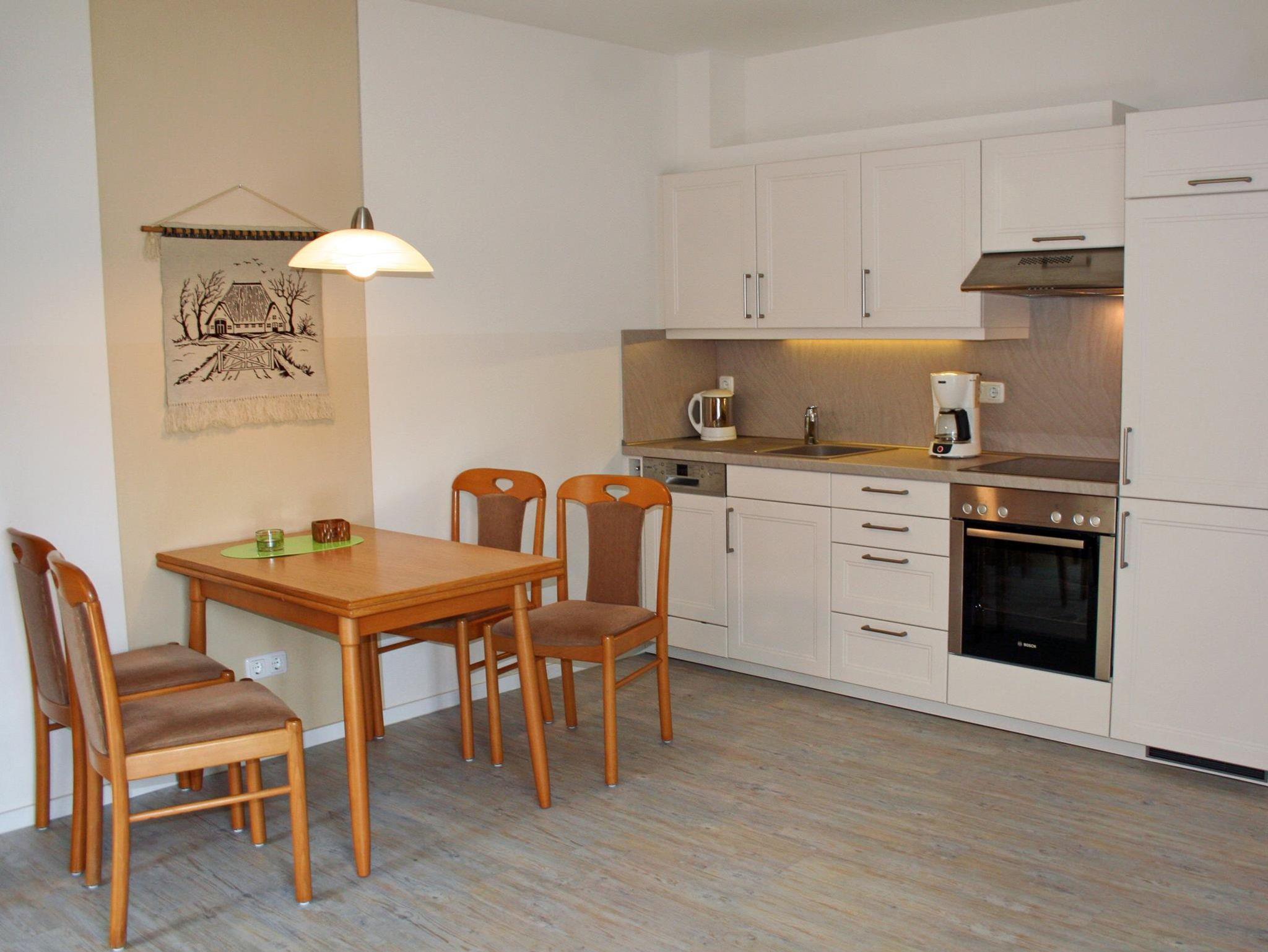 Das Nichtraucher-1-Zimmer-Appartement, in dem sich auch allergiker wohlfühlen, liegt im Erdgeschoss und bietet entspannten Urlaub für bis zu 2 Personen. Aus dem Wohnbereich treten Sie direkt auf die sonnige Süd-Terrasse heraus. Die Küchenzeile ist gut ausgestattet, u.a. mit einem 4-Kochzonen-Ceranfeld, einem Geschirrspüler und Backofen. Ein kuscheliges Schrankdoppelbett sowie Verdunkelungsvorhänge sorgen für erholsamen Schlaf.