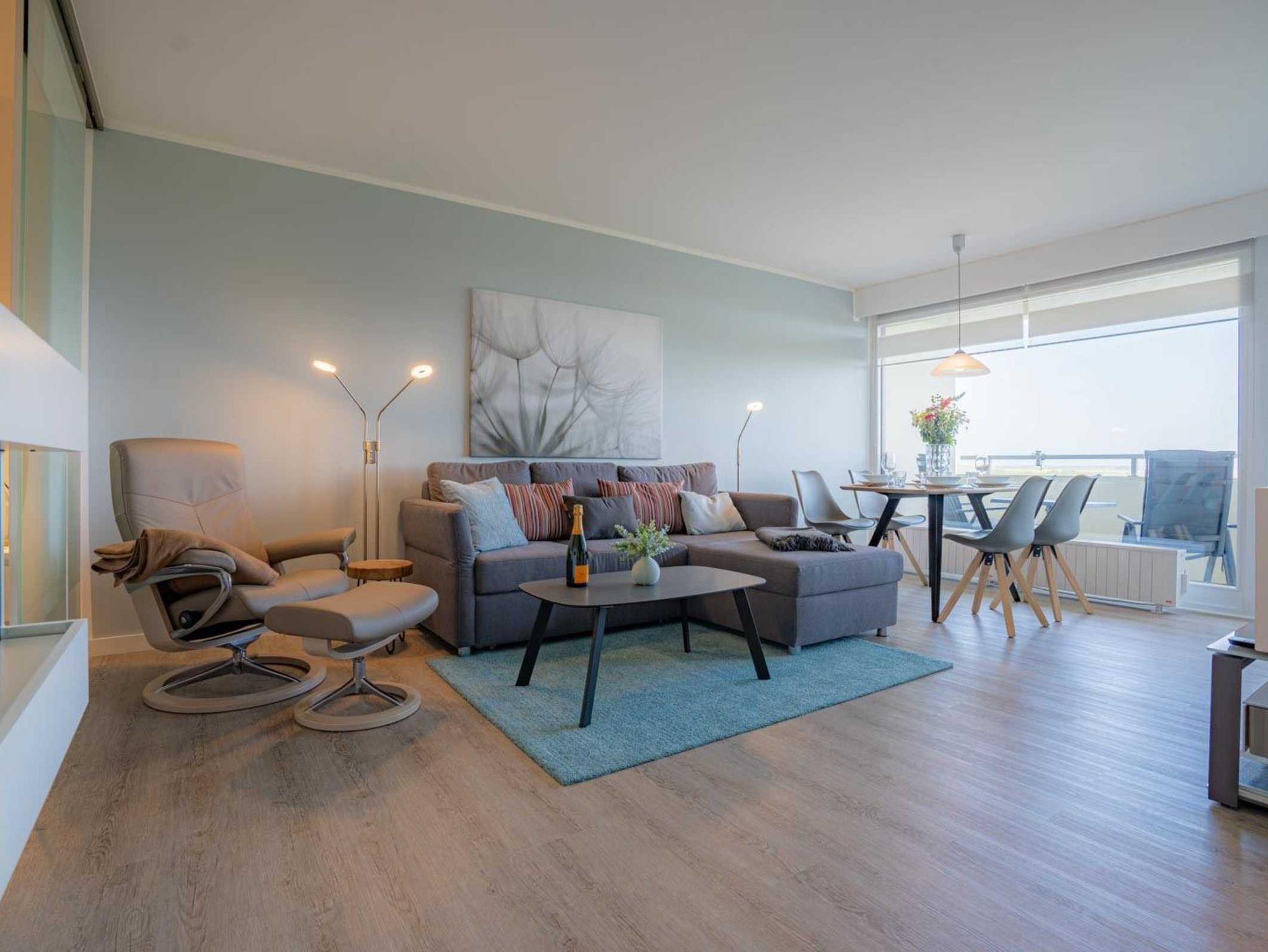 Gemütliche 2 1/2-Zimmer-Ferienwohnung im Haus Atlantic mit ca. 47 m² auf 1 Ebene (9. OG, mit Fahrstuhl) für bis zu 2 Personen. Strandnahe Lage im Ortsteil Bad in St. Peter-Ording. Genießen Sie einen einzigartigen, weiten Ausblick vom Balkon und aus der Wohnung bis auf's Meer.