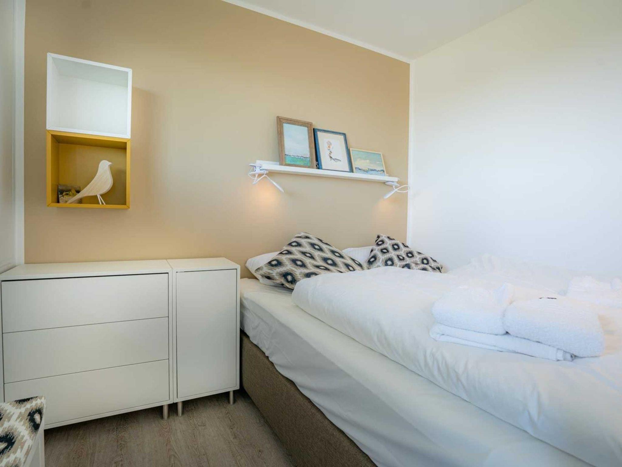 1. Schlafzimmer mit 1 Doppelbett (160x200cm, Boxspringbett) und Kommode.