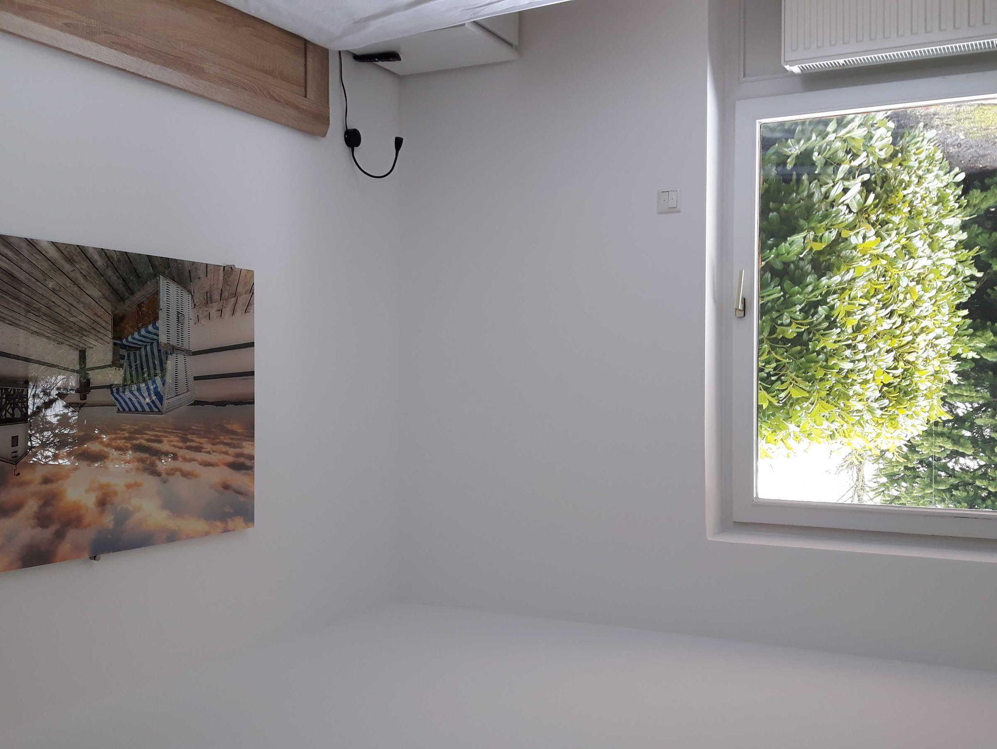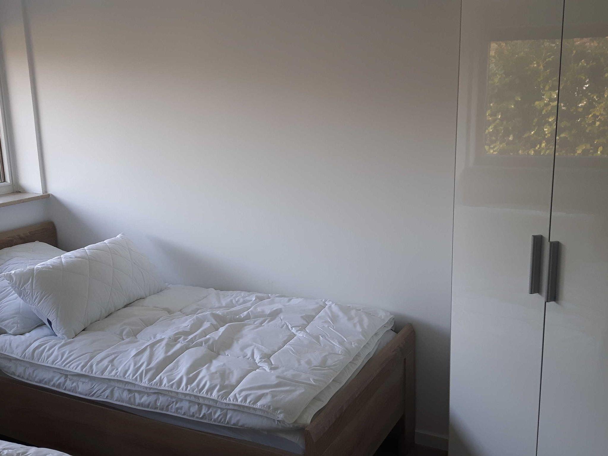Modern und geschmackvoll eingerichtete helle Doppelhaushälfte. Zwei separate Schlafzimmer (das größere mit Doppelbett 160x200cm und das kleinere mit zwei Einzelbetten von je 90x200cm) mit großen Eckschränken. Wohnzimmer mit einem Dauerschlafsofa (mit Lattenrost und innenliegender Matratze von 160x200cm). Flat-TV´s mit Satellitenanschluss im großen Schlafzimmer (43 Zoll) sowie im Wohnzimmer (55 Zoll). W-LAN ohne Gebühr. Separate, modern eingerichtete voll ausgestattete Küche mit allen Elektoreinrichtungen (Kühlschrank mit Tiefkühlfach, Geschirrspüler, selbstreinigender Backofen, Induktionsherd mit vier Kochplatten, elektrischer Wasserkocher, Kaffeefiltermaschine, Toaster, Mixer, Handrührgerät etc.) plus Esstisch für bis zu sechs Personen. Duschbad mit großer Duschkabine mit Glasabtrennung sowie Waschmaschine. Alle Räume sind mit hellem, unempfindlichem Designboden ausgestattet. Wohn- und Schlafräume mit dimmbarem Licht. Elektrische Rollläden sichern alle Räume (einschließlich der Eingangstür, falls gewünscht) und verdunkeln die Zimmer. Ferner stehen Staubsauger, Bügelbrett/Bügeleisen und Fön zur Nutzung bereit! Wäschespinne und Wäscheständer im Außenbereich. Gartenterrasse mit zwei Liegen, sechs Gartenstühlen und großem Esstisch sowie Holzkohlegrill.