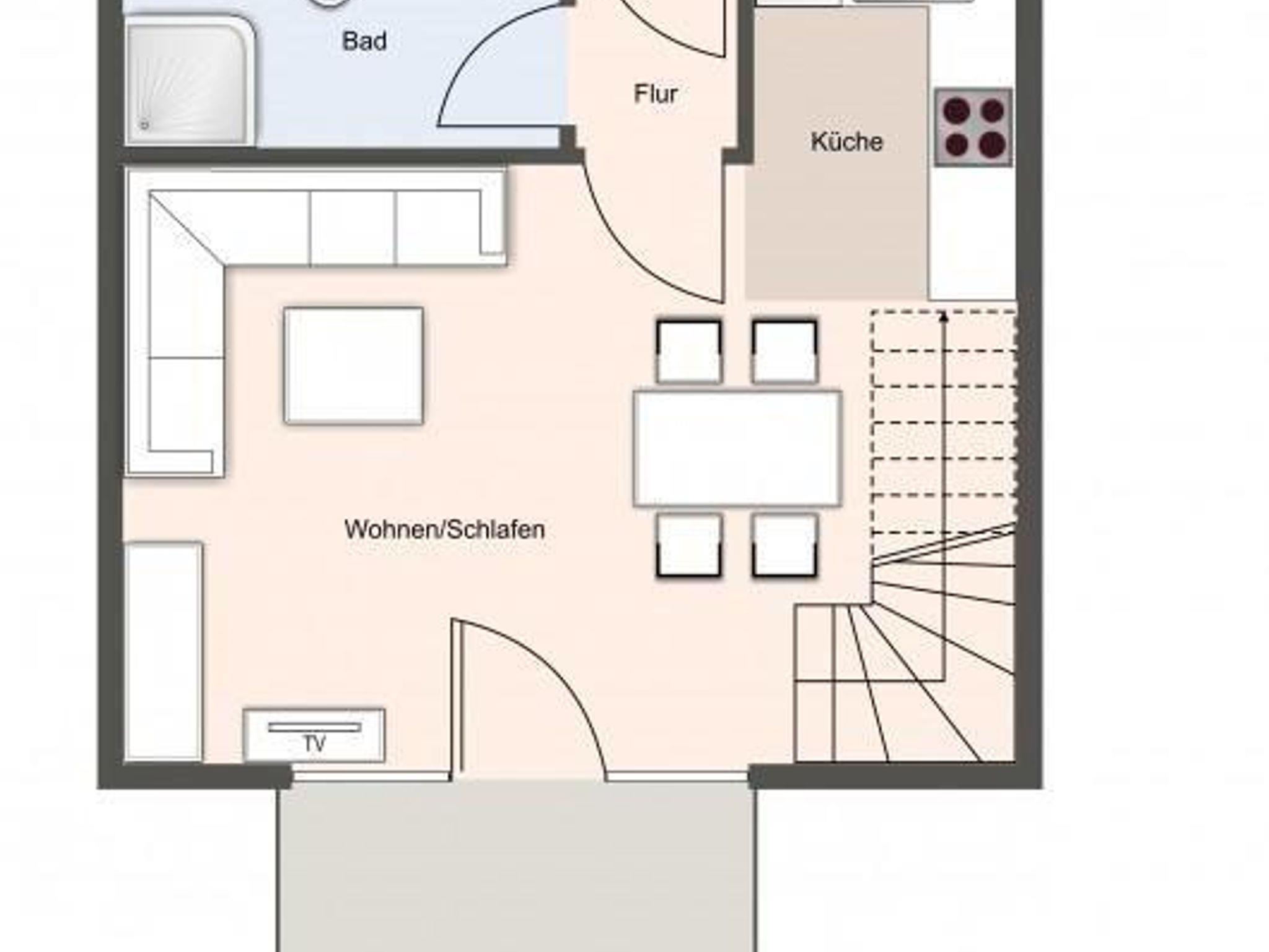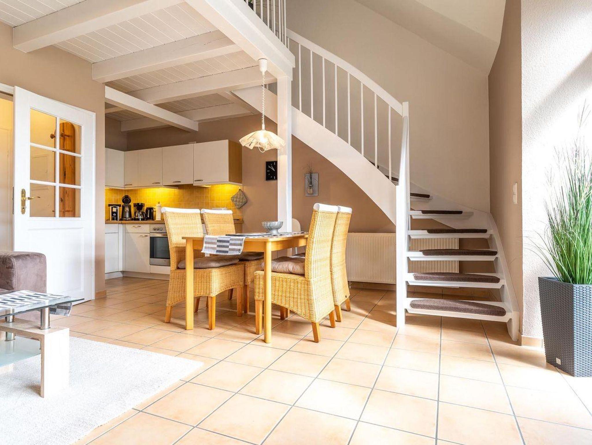 Das Appartement befindet sich im Erdgeschoss und erstreckt sich über 2 Etagen. Es verfügt über ca. 60 m² Wohnfläche und teilt sich wie folgt auf: Auf der ersten Etage befindet sich ein großzügiger Wohnraum mit einer offenen Küche und einem gemütlichen Essbereich. Die Küche ist voll ausgestattet. Ein separates Duschbad bietet jeden Komfort. Über eine Holztreppe gelangt man zur Schlafgalerie im Dachgeschoss. Das stilvolle Schlafzimmer verfügt über ein 1,8 x 2,0 m Bett. Weitere 2 Personen können auf der Schlafcouch im Wohnzimmer 1,6 x 2,0 m entspannen. Kostenlose W-LAN Nutzung. Mit viel Liebe zum Detail wurde großen Wert auf die Inneneinrichtung gelegt. Carpe Diem!