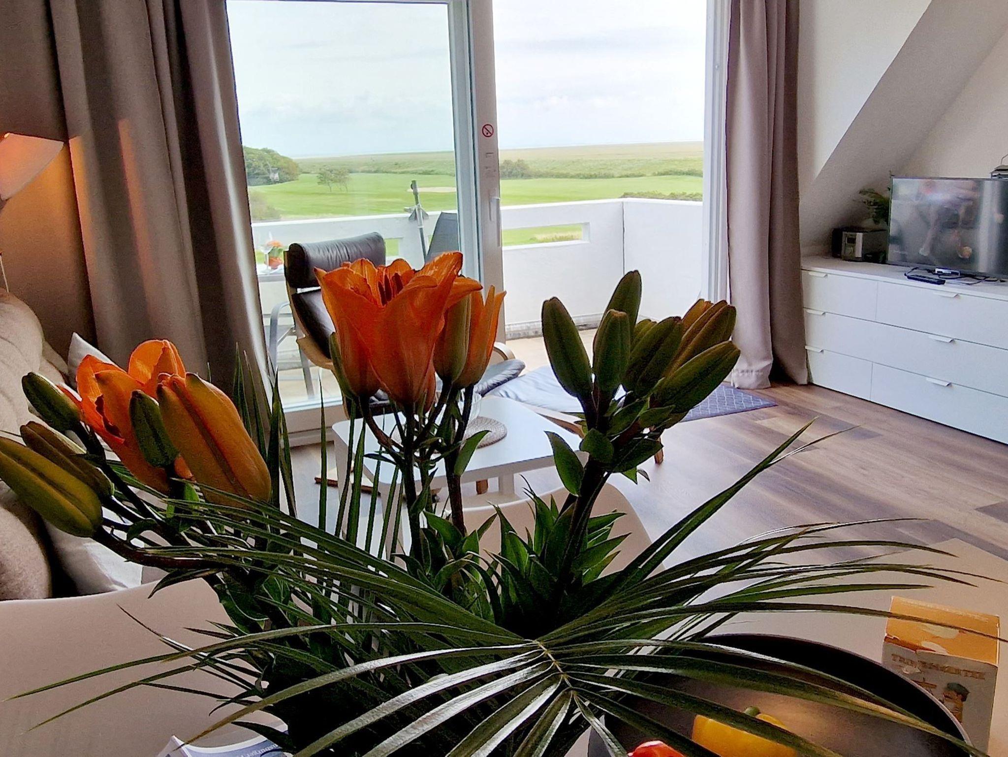 Willkommen in Ihrer Traum-Ferienwohnung! Genießen Sie unvergessliche Urlaubstage in unserer hellen, gemütlichen 2-Zimmer-Nichtraucher-Ferienwohnung, perfekt für bis zu 3 Personen und Ihren geliebten Hund! Stellen Sie sich vor, wie Sie auf dem sonnigen Balkon im 2. OG sitzen, mit Blick über den Golfplatz bis zum glitzernden Meer und bei klarer Sicht bis nach Büsum!Ausstattung: