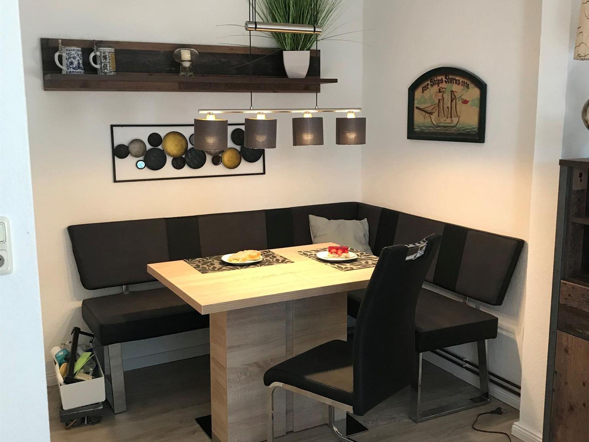 1 Wohnraum mit angrenzendem Essbereich, vollständig eingerichtete Kochnische, Farb-TV, WLAN und Radio. Dusche/WC. Südterrasse.