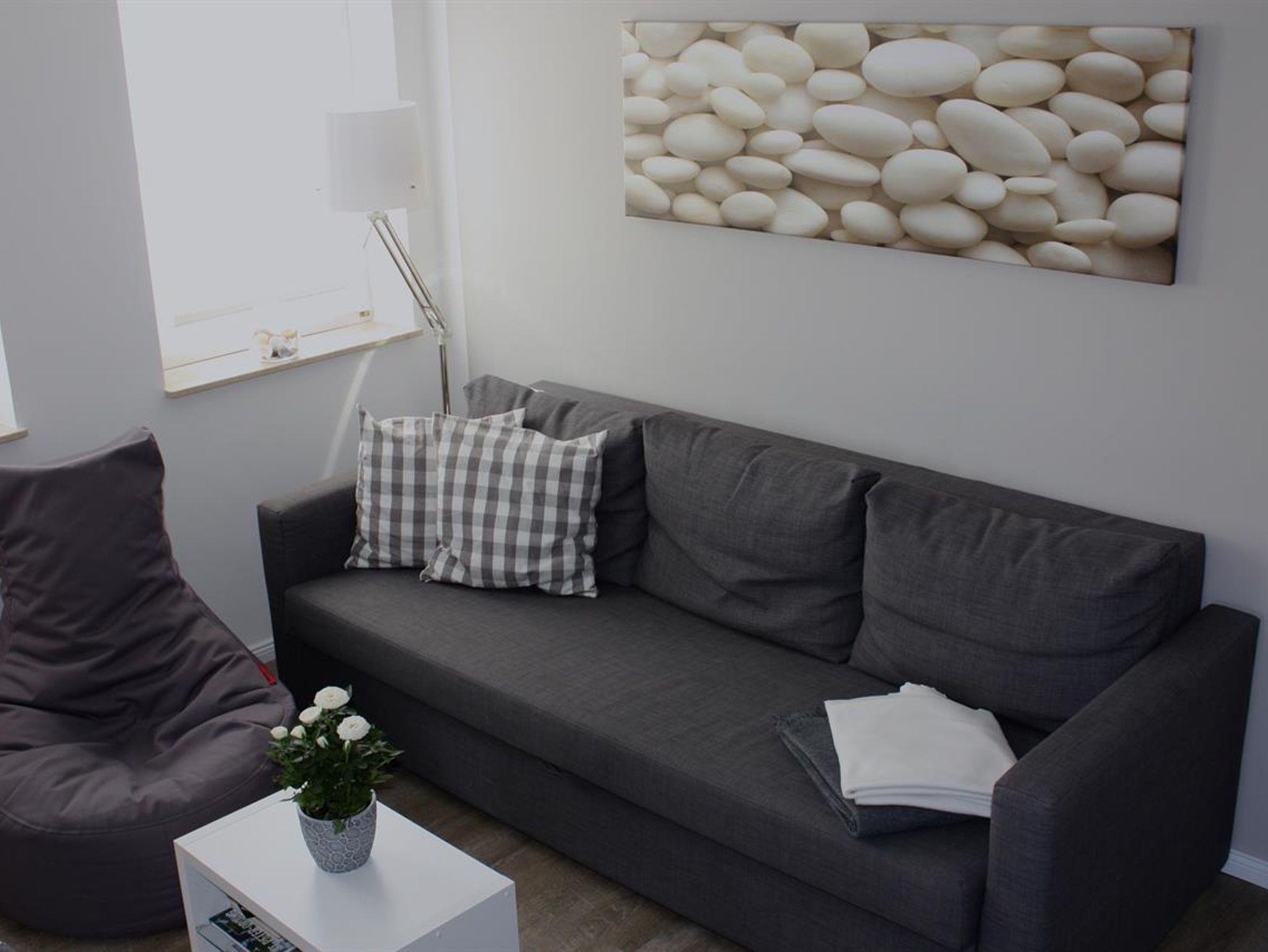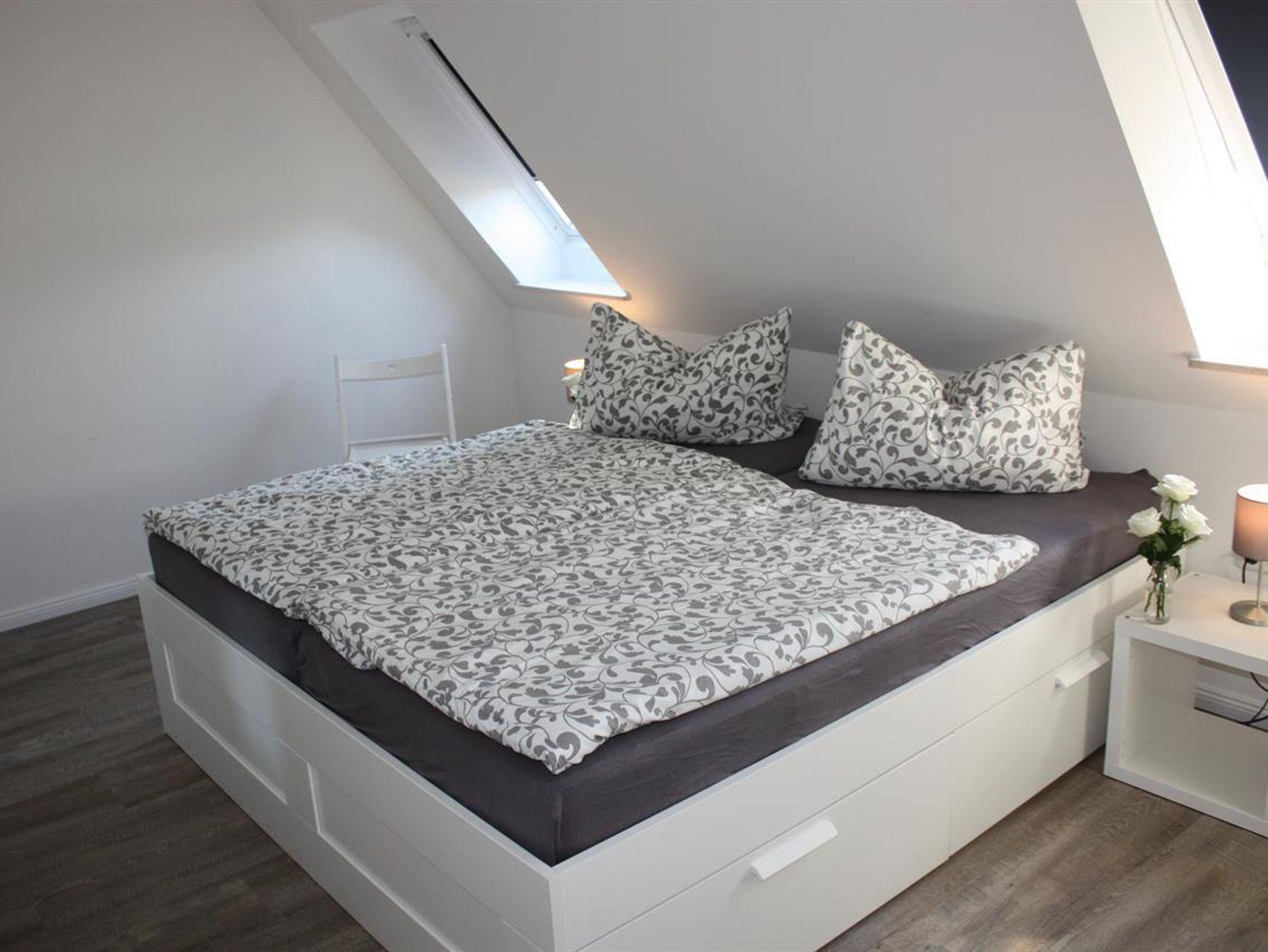 Die Wohnung hat ein Schlafzimmer mit einem Doppelbett (180x200), zusätzlich bietet eine Schlafcouch (140x200) im Wohnzimmer
