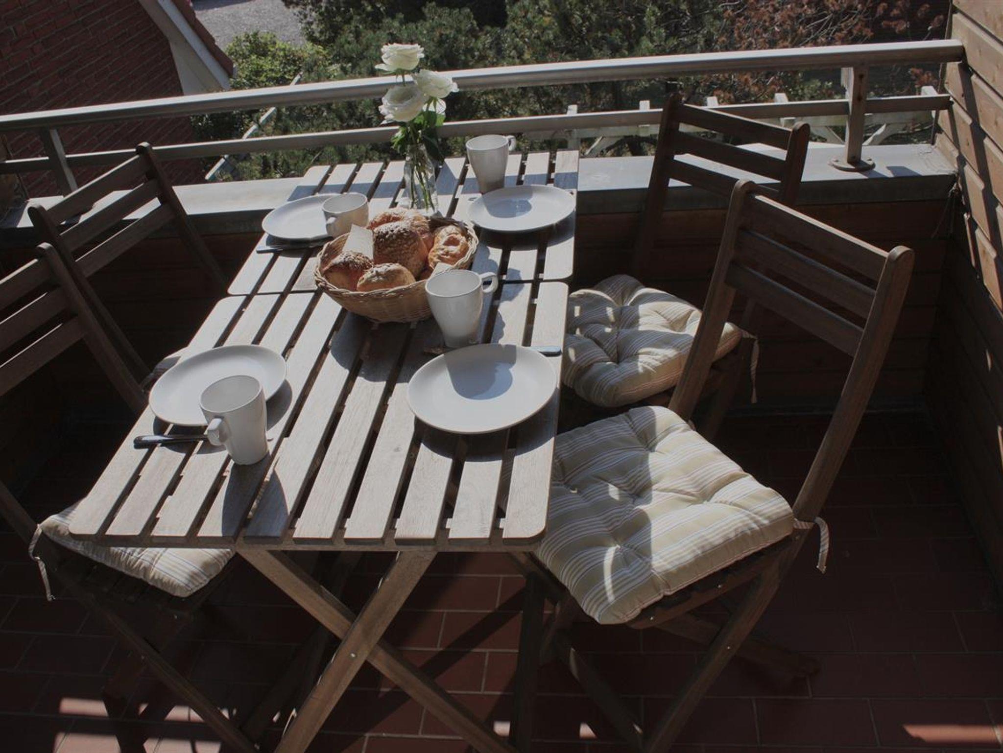 Der zweite Balkon, mit Morgensonne, lädt zum gemütlichen Frühstück ein.