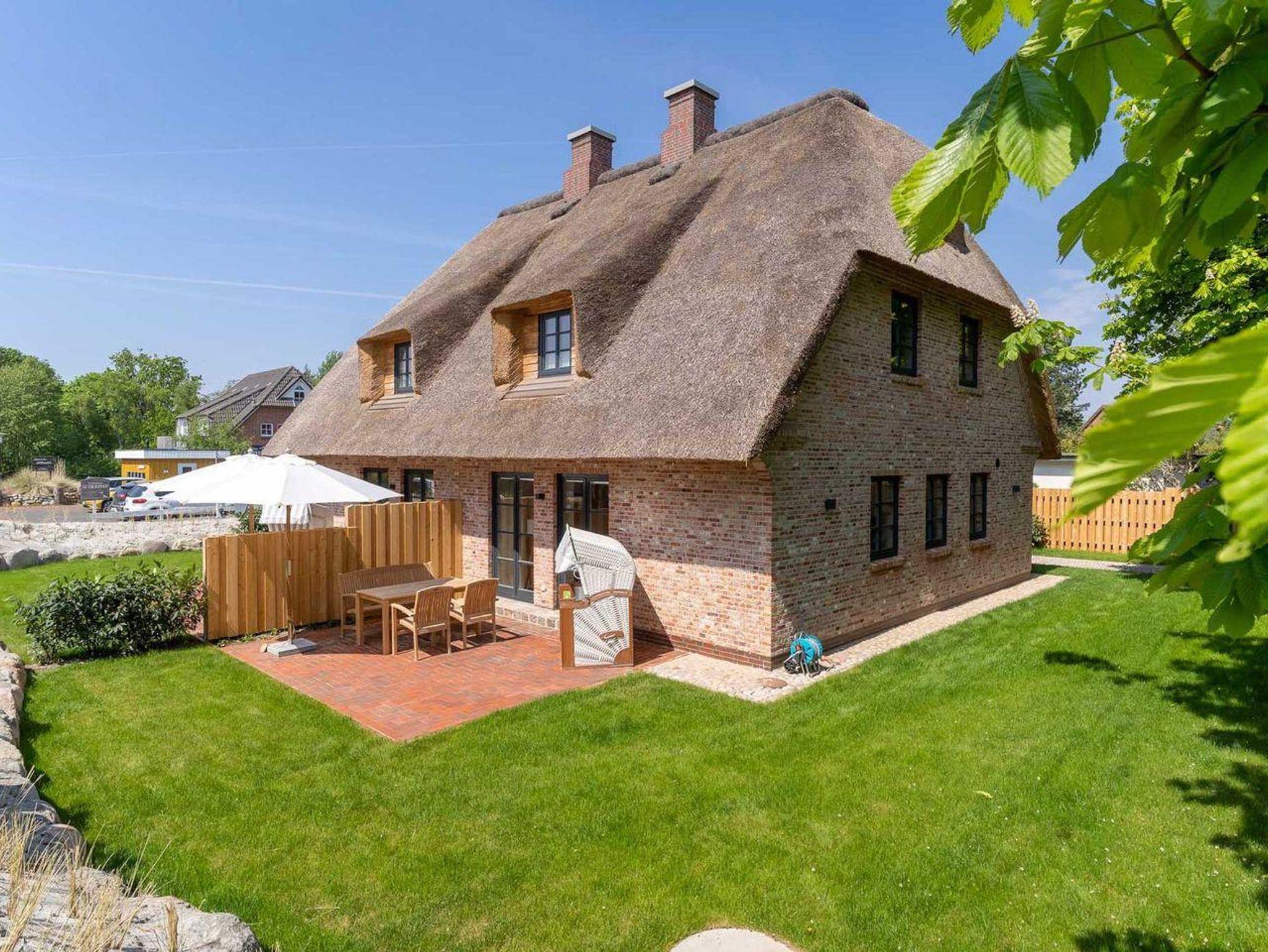Der nach Süden ausgerichtete Garten mit großzügiger Terrasse, Rasenfläche, heimischen Pflanzen und Dünengras überzeugt mit hochwertigen Teak-Gartenmöbeln sowie einem gemütlichen Strandkorb. Für eine komfortable An- und Abreise steht Ihnen ein PKW-Stellplatz direkt am Haus zur Verfügung.
