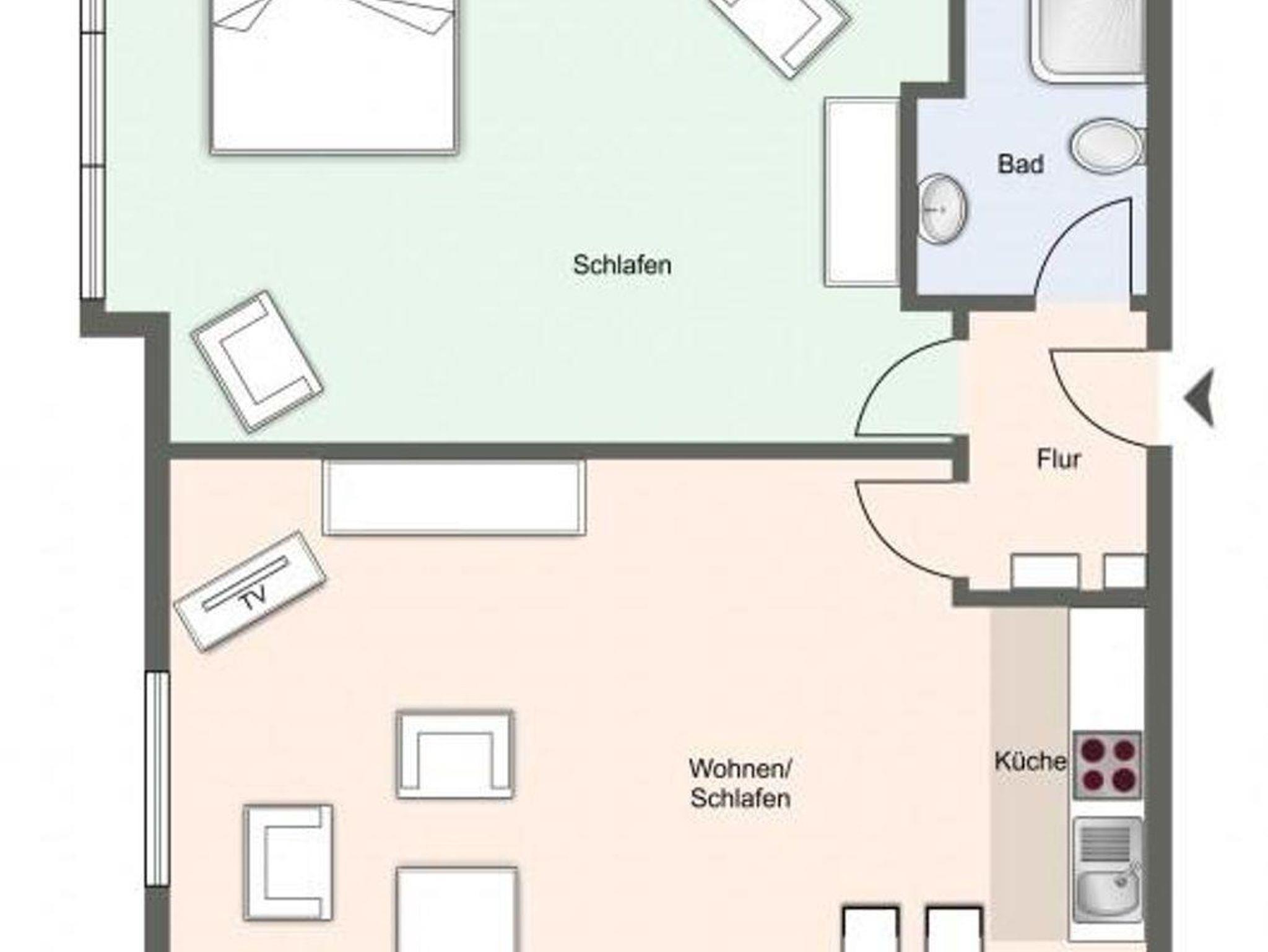 Das Schlafzimmer mit 2 Nachttischen, Beistelltisch, Kleiderschrank, Sessel, Spiegel und einer Stehlampe verfügt über ein gemütliches Doppelbett ( 2,00 x 1,80 m ). Ein Schranksofa im Wohnzimmer bietet weitere 2 Schlafmöglichkeiten. Das Badezimmer besteht aus einer Dusche, Waschbecken und WC. Zur Unterhaltung dient ein Sat-TV Flachbildschirm, Radio sowie WLAN (inklusive). Genießen Sie den tollen Meerblick aus allen Räumen!