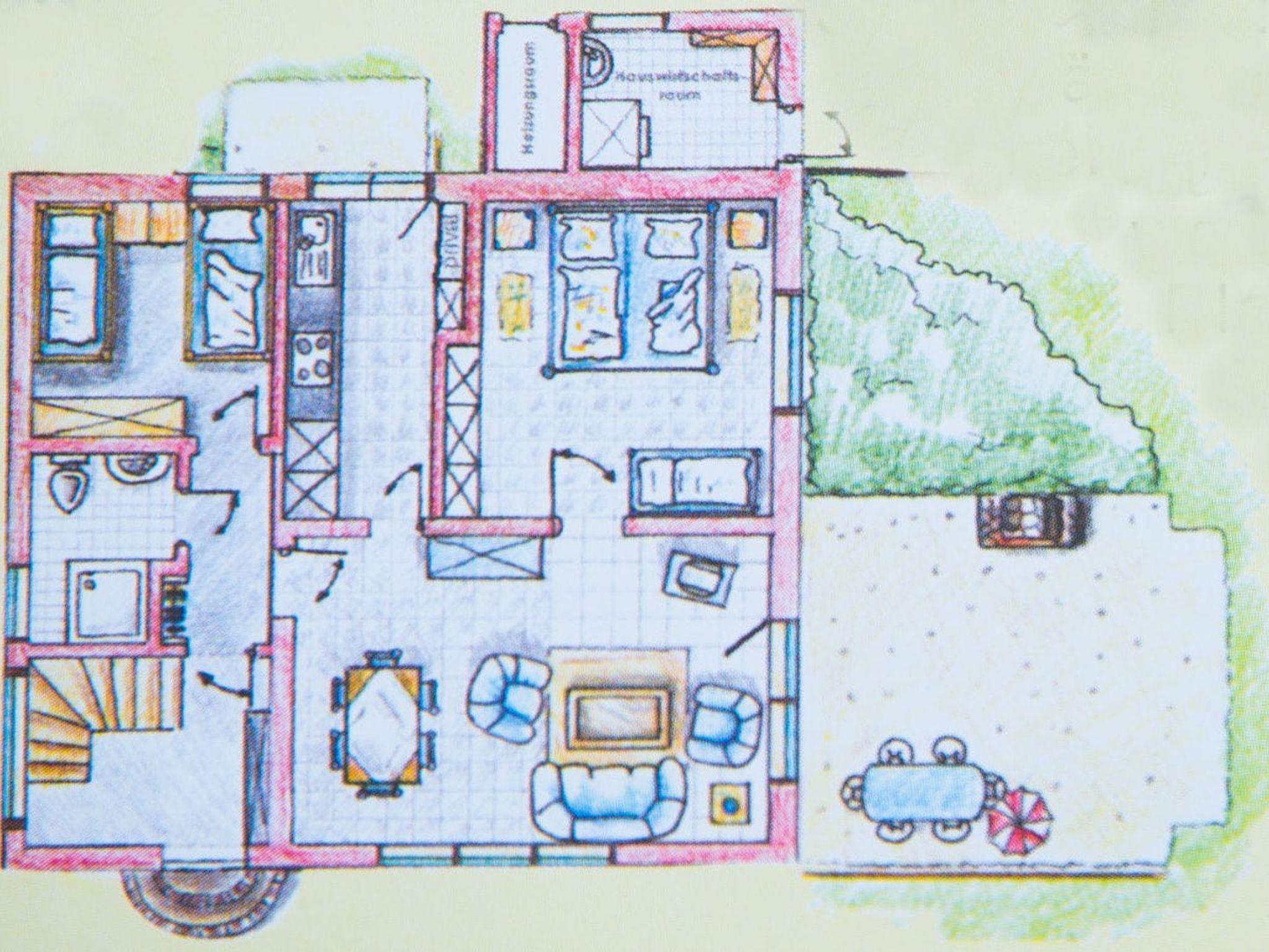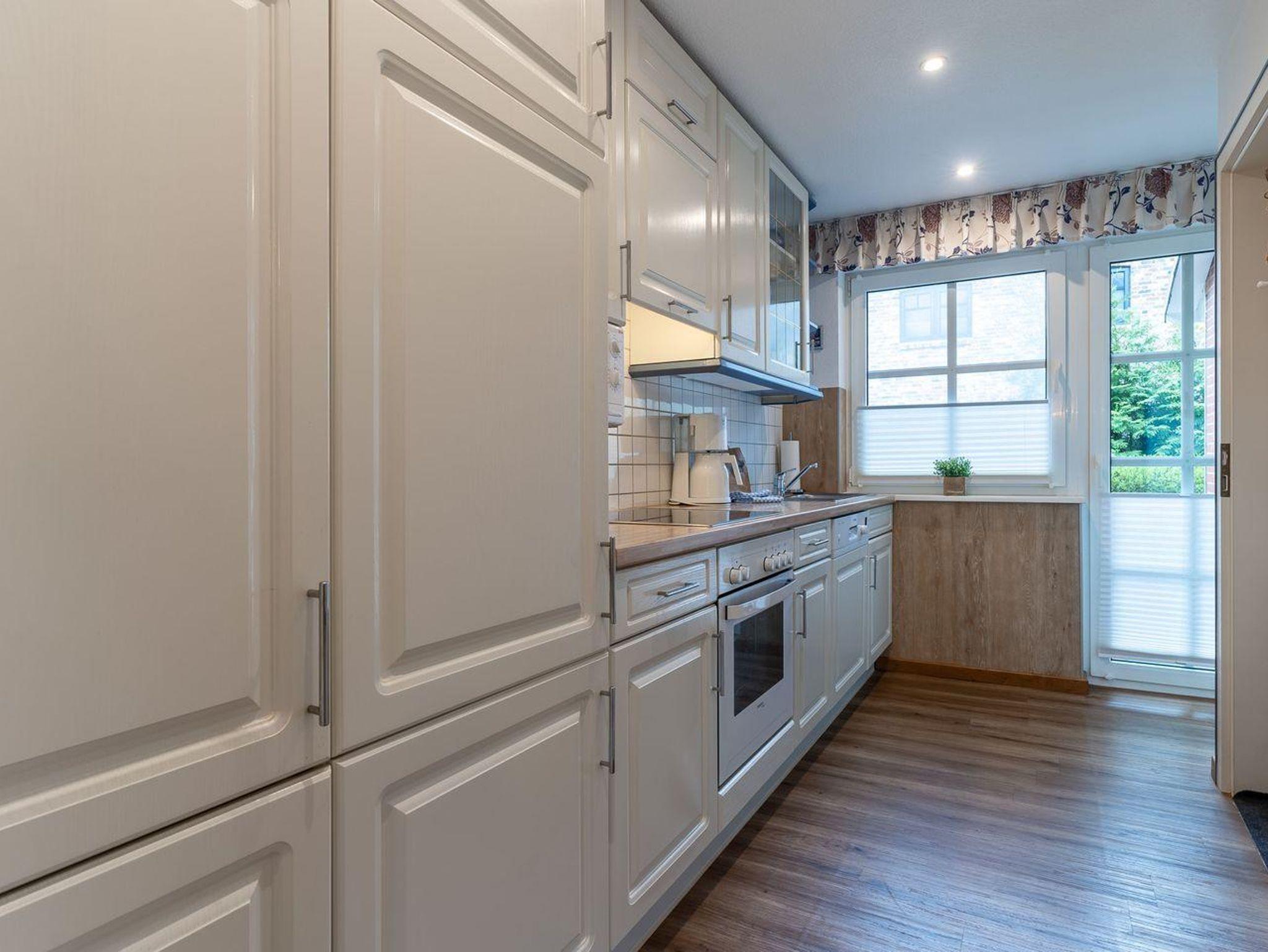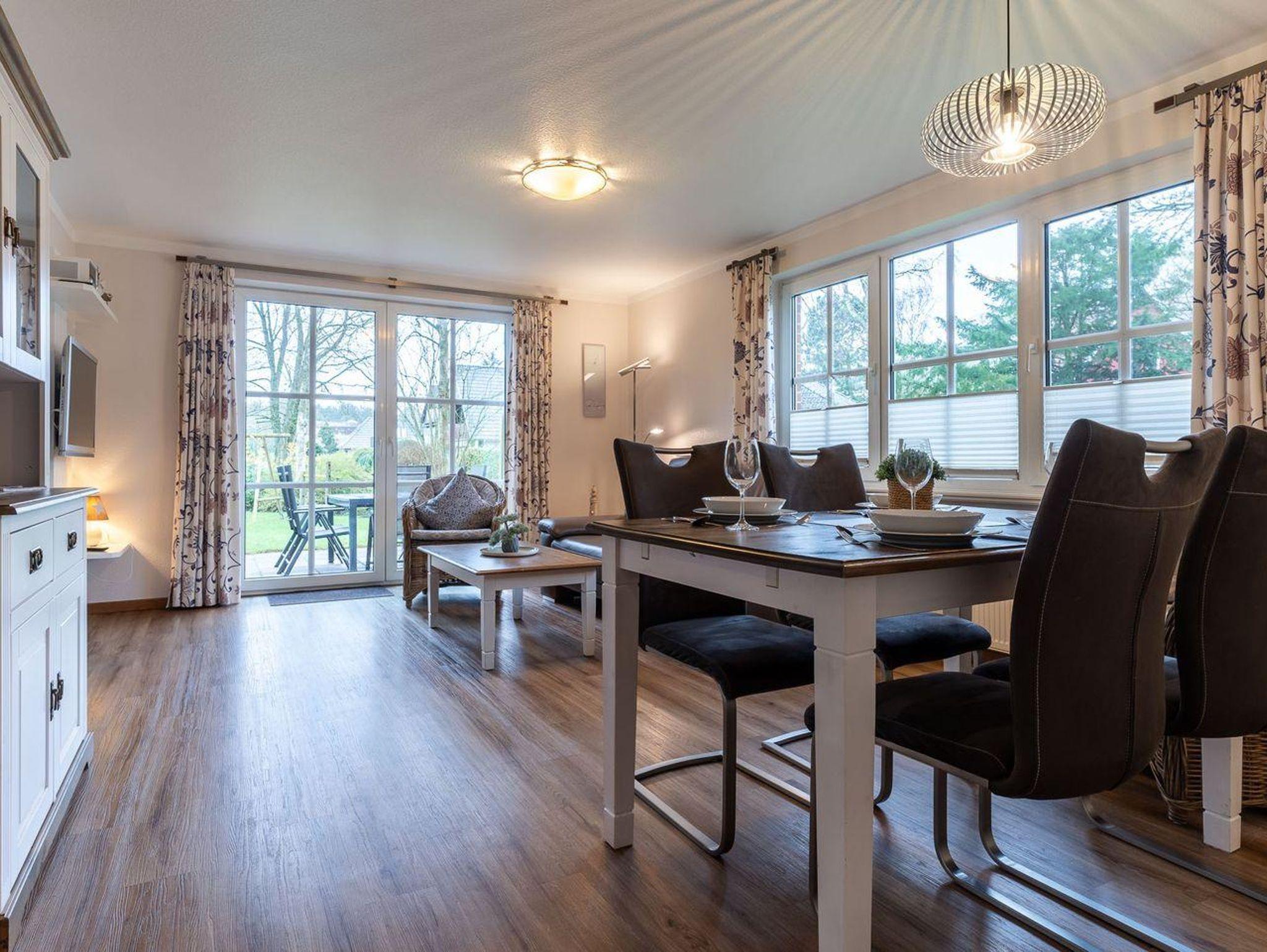 Genießen Sie den Komfort eines praktisch neuen Wohnraums in unserer kernsanierten Erdgeschosswohnung. Mit 65 qm bietet sie Platz für bis zu 5 Personen plus Kleinkind. Das Elternschlafzimmer verfügt über ein komfortables Ehebett speziell für über 2m große Gäste und ein zweites Schlafzimmer bietet ein Etagenbett und ein Einzelbett. Der großzügige Wohn- und Essbereich mit direktem Zugang zur möblierten Gartenterrasse lädt zum Verweilen ein. Dank voll ausgestatteter Küche und separater Terrasse können Sie Ihren Aufenthalt in vollen Zügen genießen.