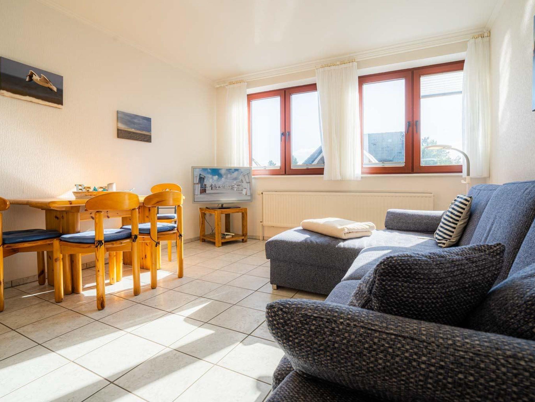 Gemütliche, einfache 2-Zimmer-Ferienwohnung Kapitänskajüte im Haus Seewolf mit ca. 52 m² auf 1 Ebene (OG) für bis zu 4 Personen. In ruhiger Lage nahe der Einkaufsstraße im Ortsteil Dorf in St. Peter-Ording. Alle Geschäfte, Restaurants und Bäckereien sind fußläufig bequem erreichbar. Zwei Hunde sind nach Anmeldung herzlich willkommen.