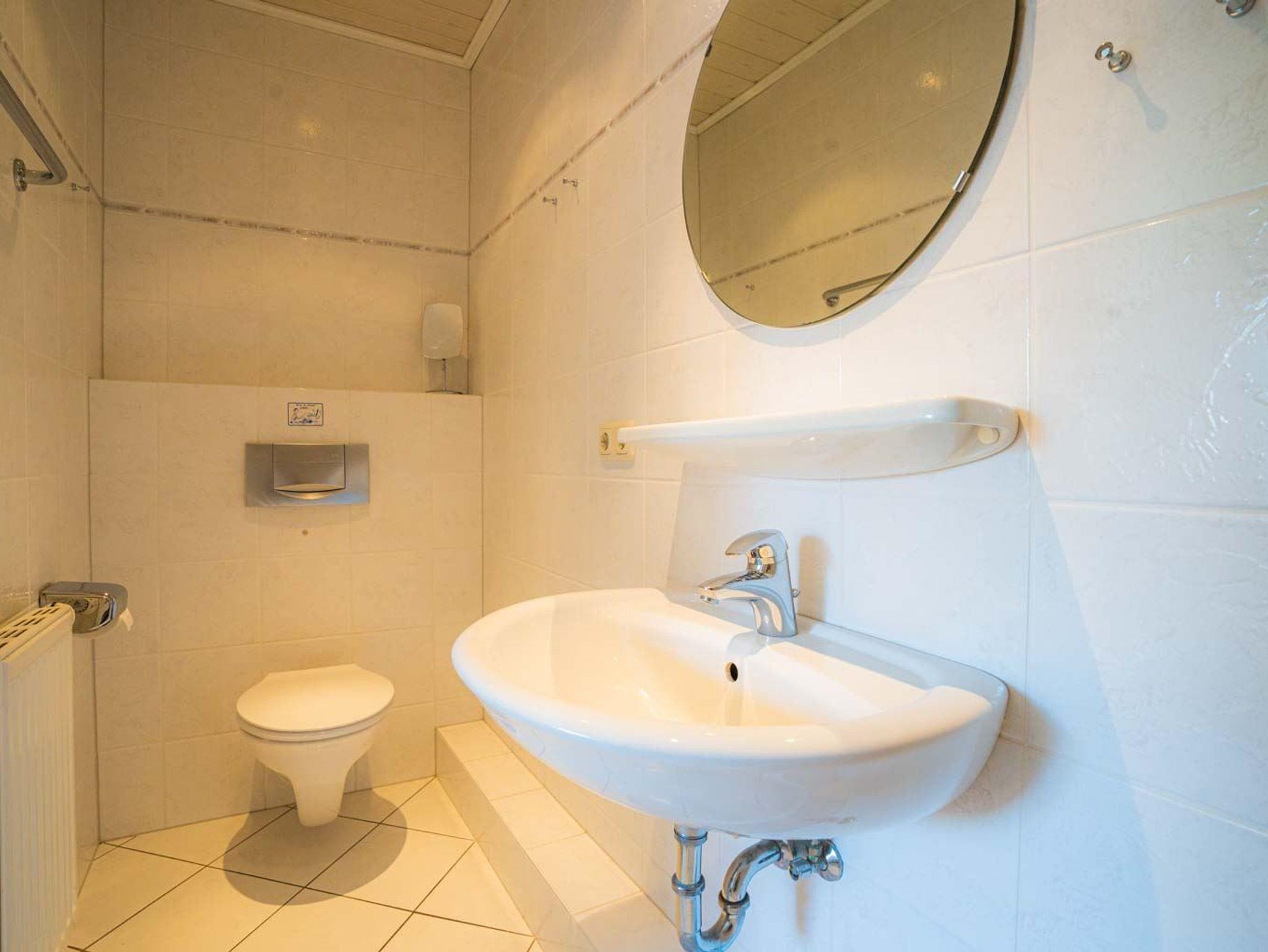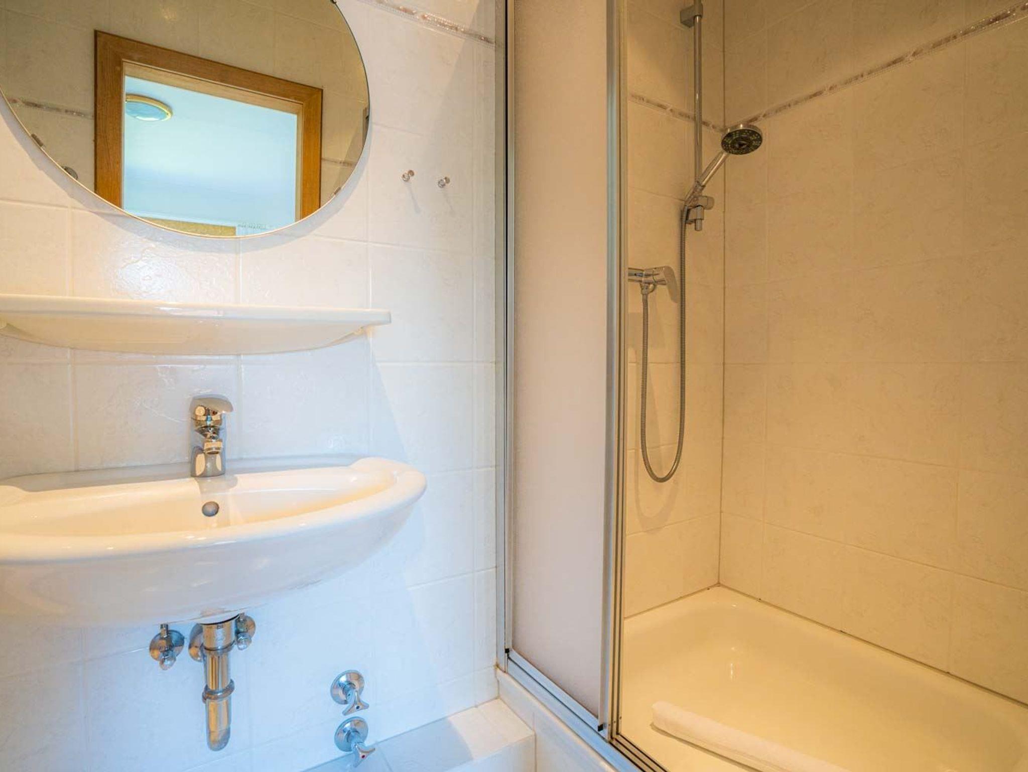 Badezimmer (Duschbad) mit Dusche, WC und elektrischer Lüftung. Das Bad ist ensuite zum Schlafzimmer.