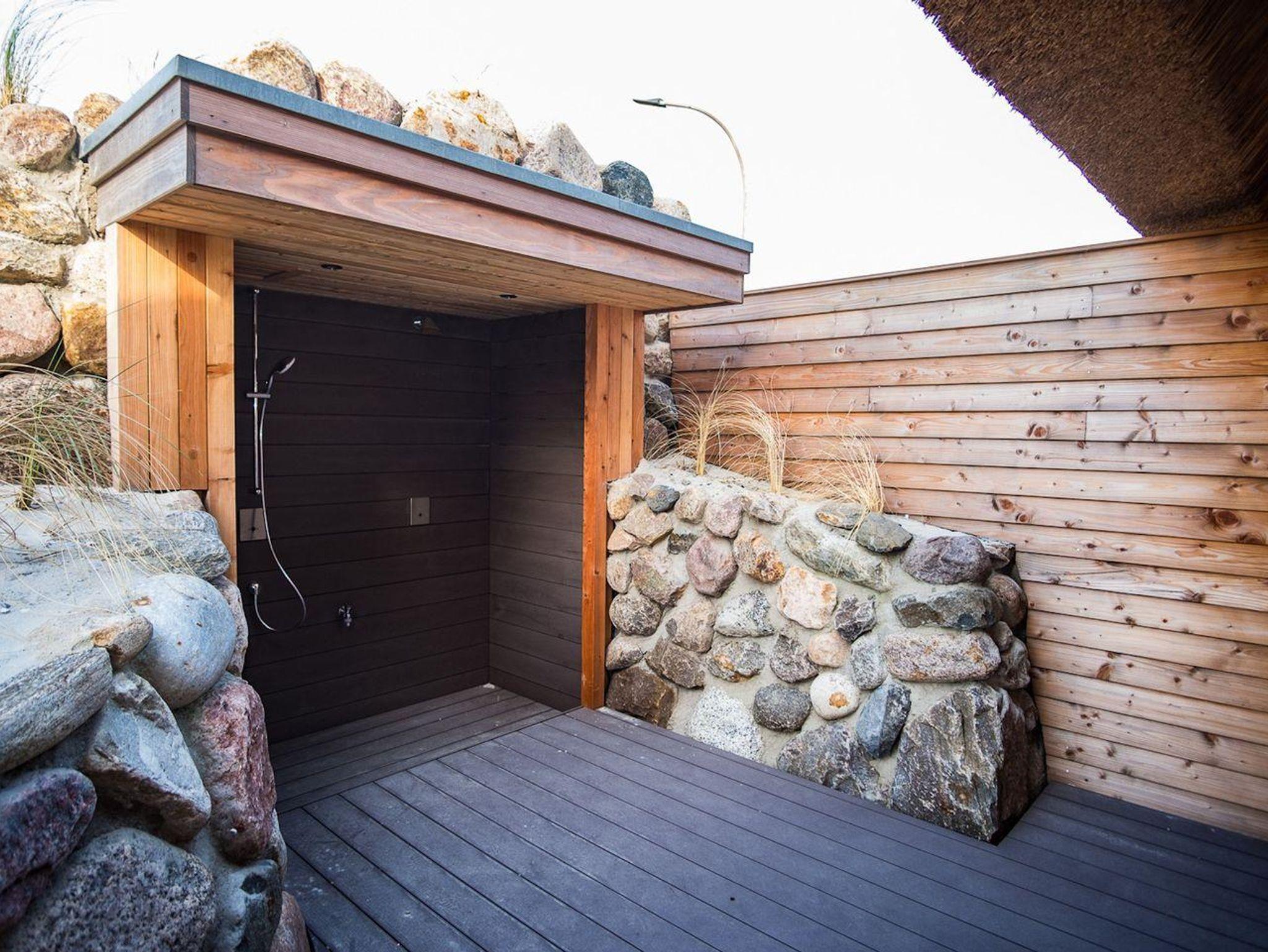 Gartenmöbel und ein Strandkorb laden Sie zur Erholung ein. Der Garten ist wunderbar geschützt und mit heimischen Pflanzen angelegt.