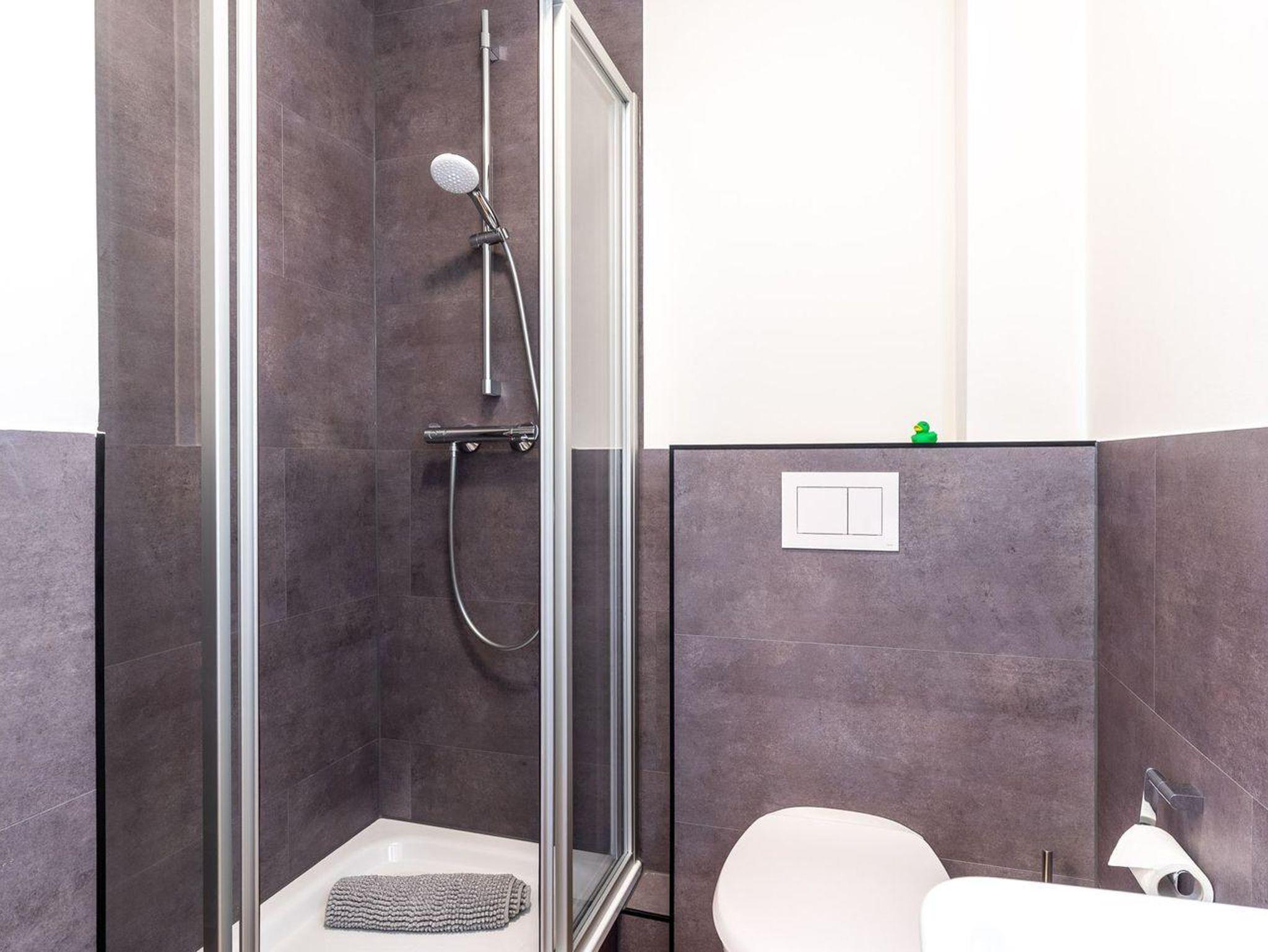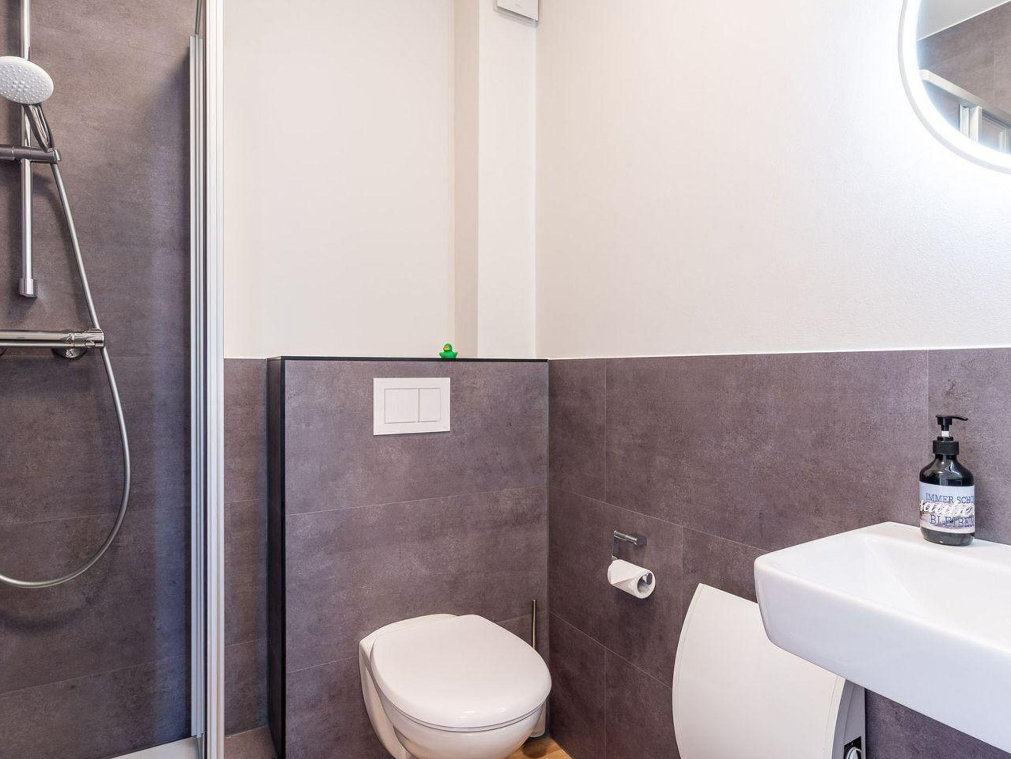 Ein Badezimmer mit Dusche rundet die Ausstattung ab. Hier finden Sie auch Annehmlichkeiten wie einen Haartrockner, einen Kosmetikspiegel sowie ein WC mit Waschbecken. Praktische Details, wie ein Staubsauger und Geschirrhandtücher, wurden ebenfalls berücksichtigt, um Ihren Aufenthalt so komfortabel wie möglich zu gestalten.