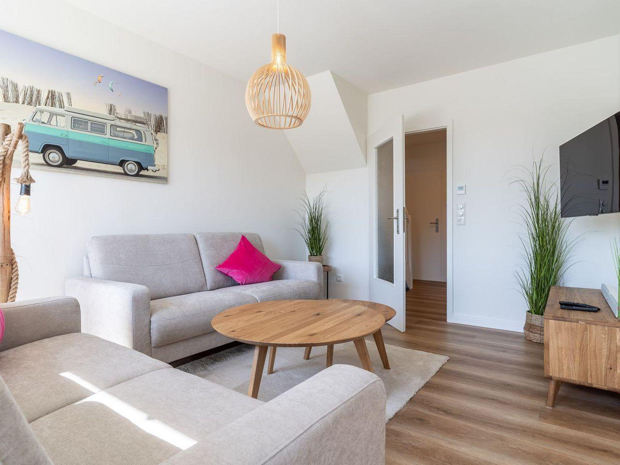 Ein besonderes Highlight der Wohnung ist der Balkon, wo Sie bei frischer Nordseeluft entspannen oder den Tag mit einem Glas Wein ausklingen lassen können. Der Sichtschutz an allen Fenstern sorgt für Privatsphäre, während die großen Fenster den Wohnraum mit natürlichem Licht durchfluten. Ihre Sicherheit wird durch Rauchmelder und einen Windschutz gewährleistet.