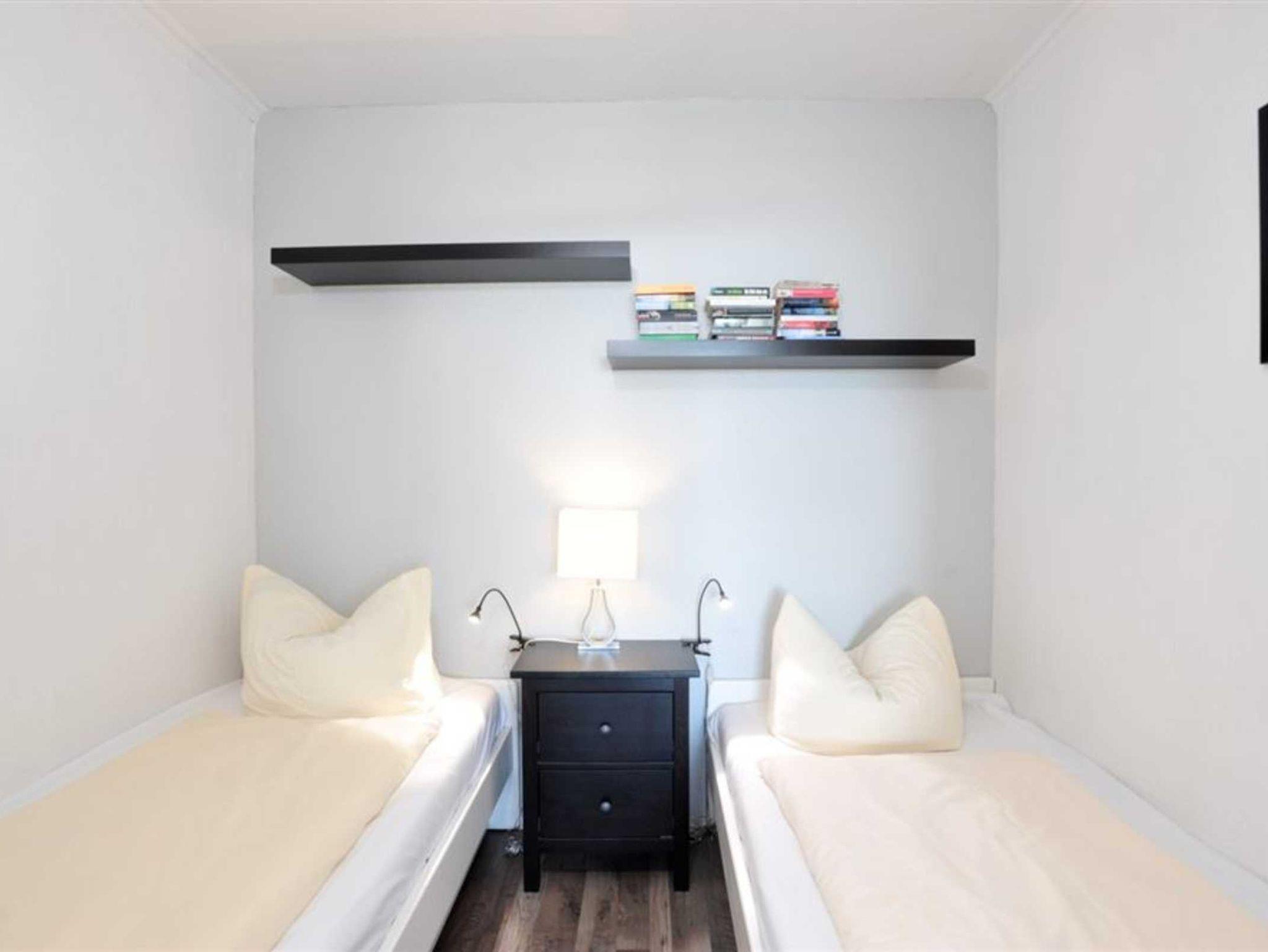 1. Schlafzimmer mit 2 Einzelbetten (je 90x200cm). Dieses Schlafzimmer ist durch einen Vorhang vom Wohnzimmer abgeteilt.