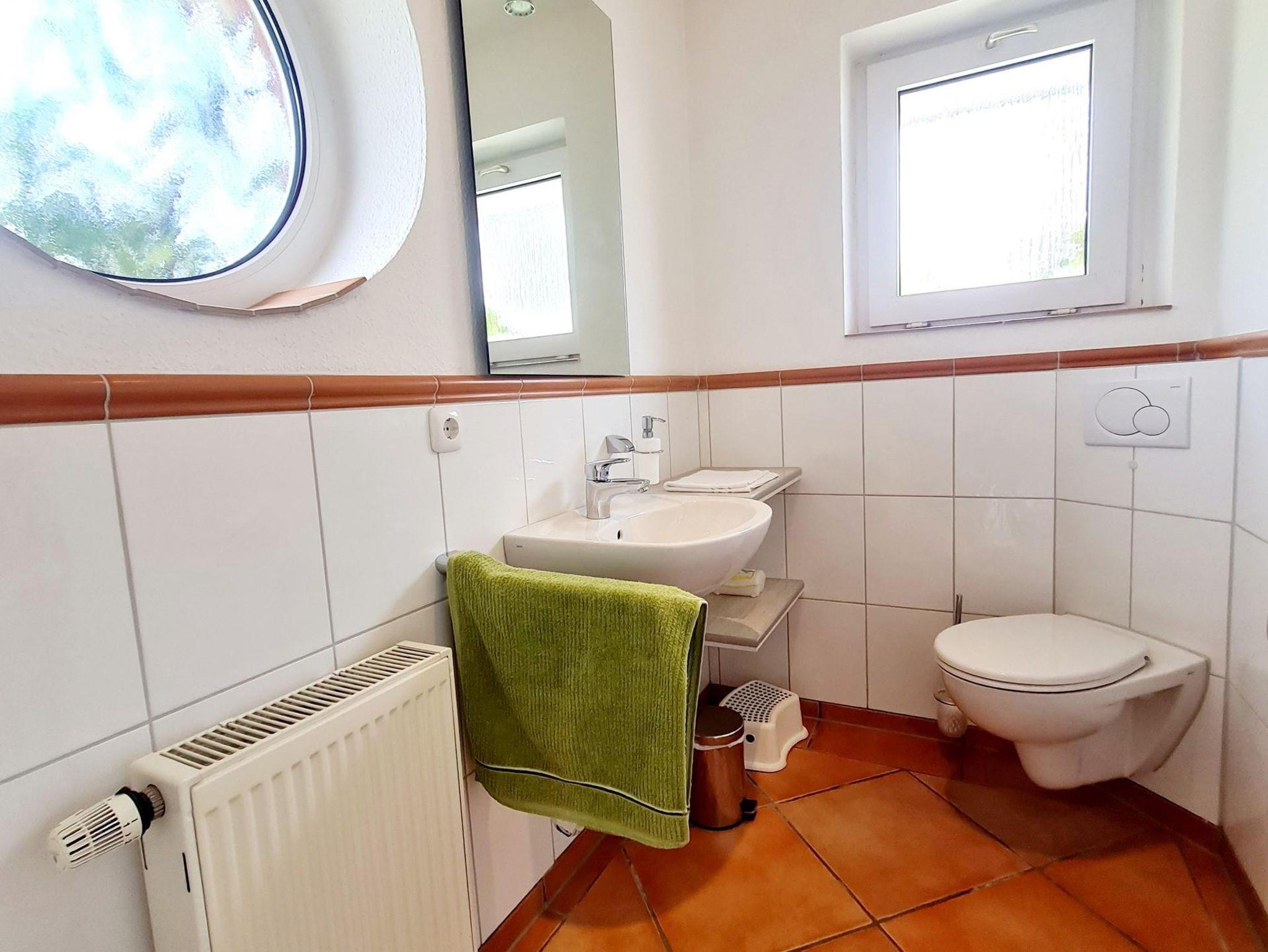Ein Badezimmer im Erdgeschoß mit Dusche, Waschtisch, WC, sowie ein Vollbad im Obergeschoß mit Wanne, Dusche, 2 Waschtischen, WC, Kosmetikspiegel und Haartrockner lässt keine Wartezeiten zu.