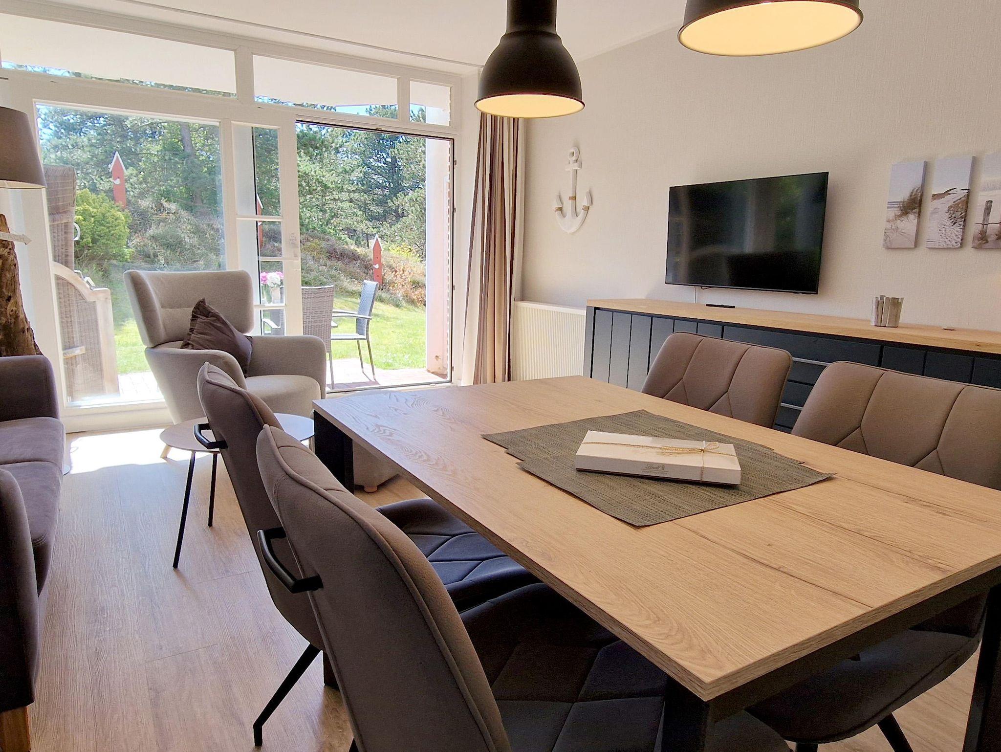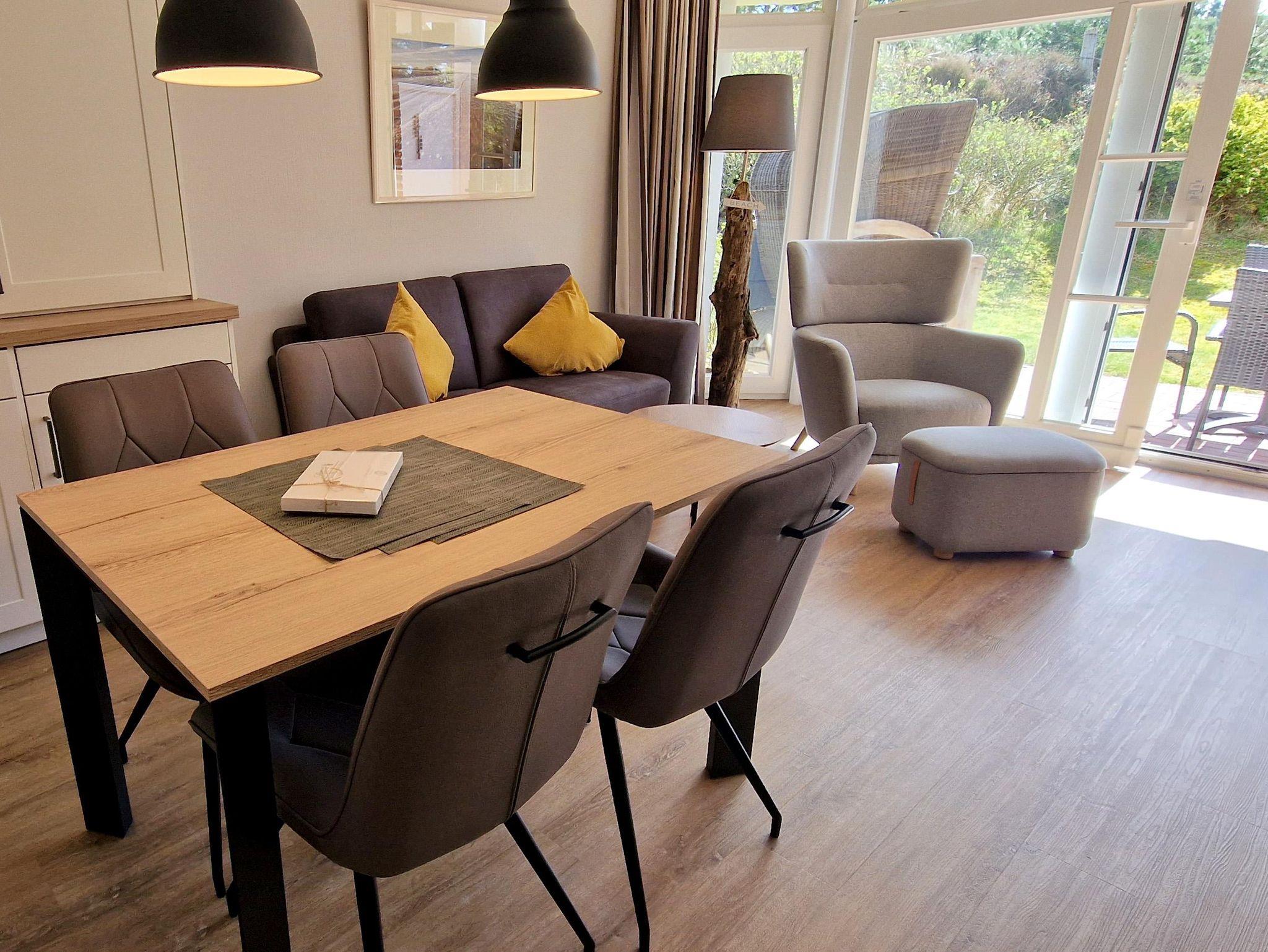 Eleganz und Komfort stehen in der 3-Zimmer-Nichtraucherwohnung Haus Brandung Nr. 01 an erster Stelle. Auf bis zu 4 Personen warten hier im EG die halbüberdachte Terrasse in Süd-Westlage und ein sehr modernes Bad. Die beiden schönen Schlafzimmer sind einmal mit einem Doppelbett und einmal mit 2 Einzelbetten ausgestattet. Dunkle Fliesen geben der Wohnung einen mediterranen Anstrich.