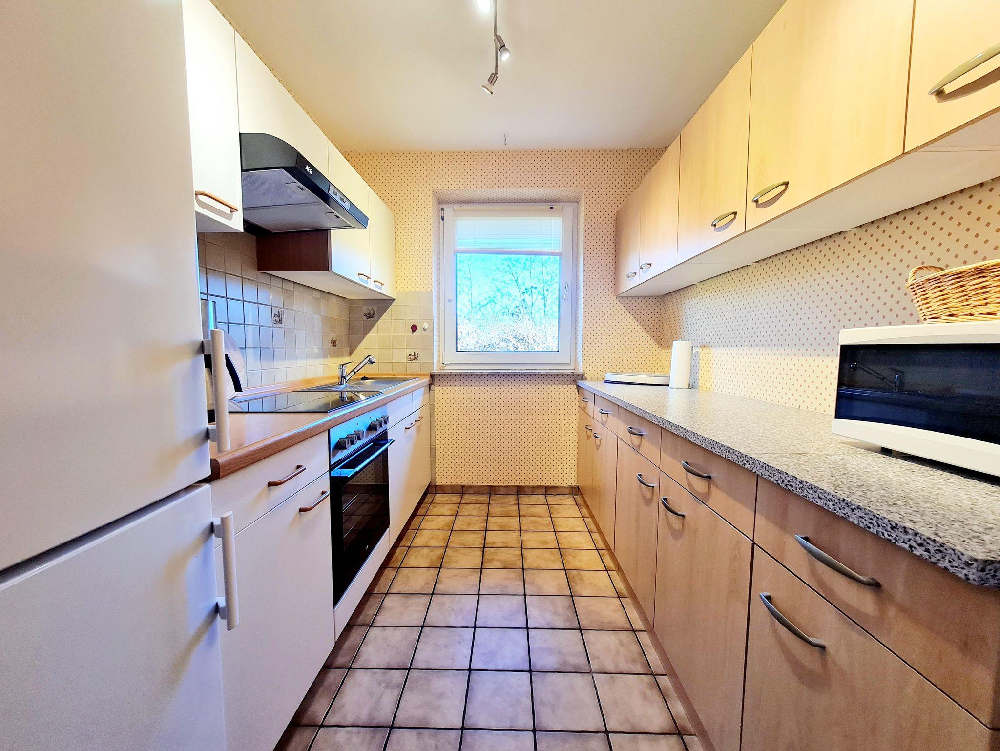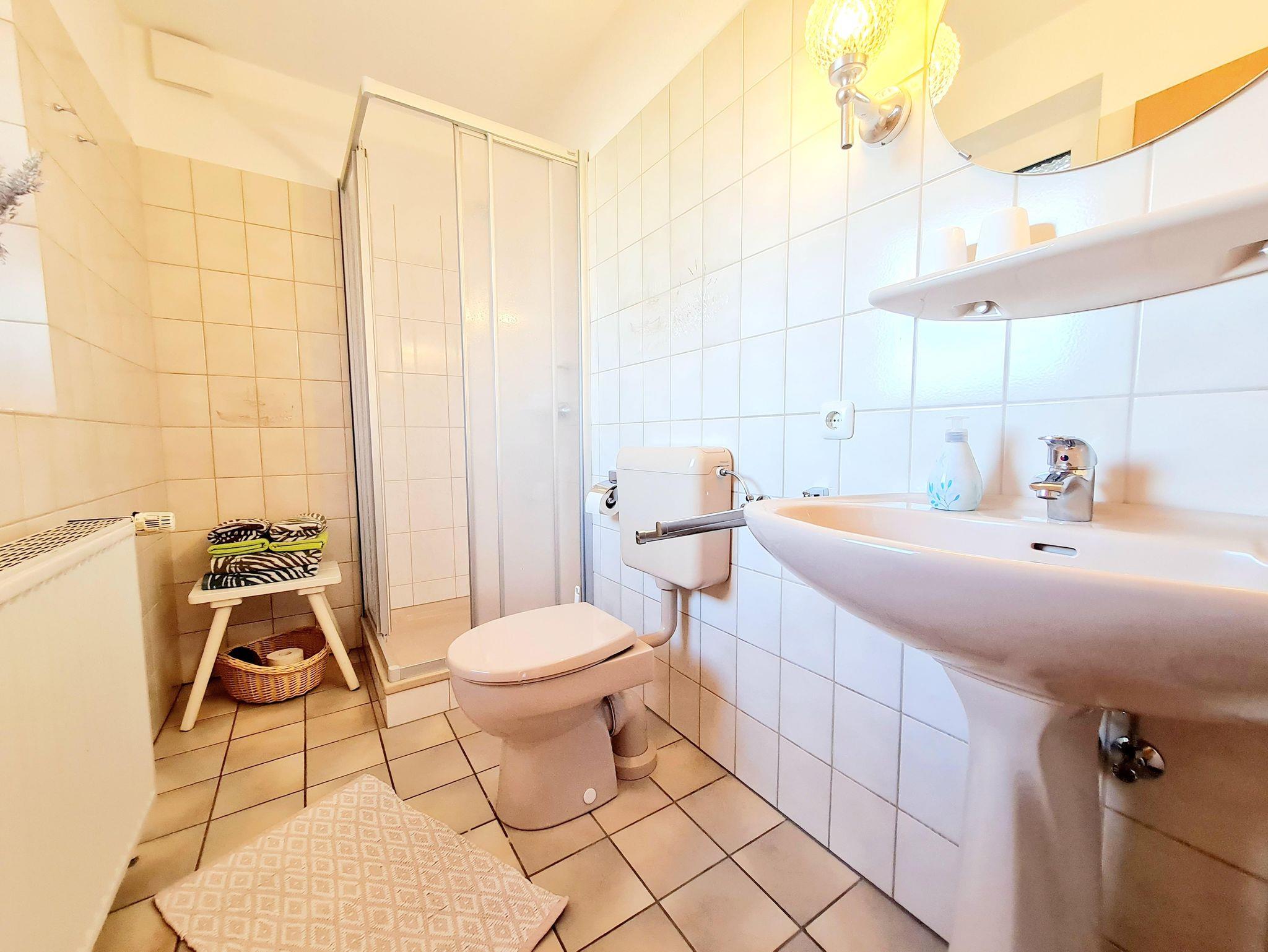 Die Erdgeschosswohnung ist ca. 50 qm groß und hat einen separaten Eingang. Haustiere sind auf Anfrage willkommen. Im Wohnraum befindet sich ein ausziehbares Sofa, der Essbereich und der Ausgang zur gro0en Terrasse mit Strandkorb. Die Küchenzeile ist komplett ausgestattet mit allen Elektrokleingeräten. Desweiteren gibt es einen Schlafraum mit Doppelbett und eine Badezimmer mit Dusche und WC.