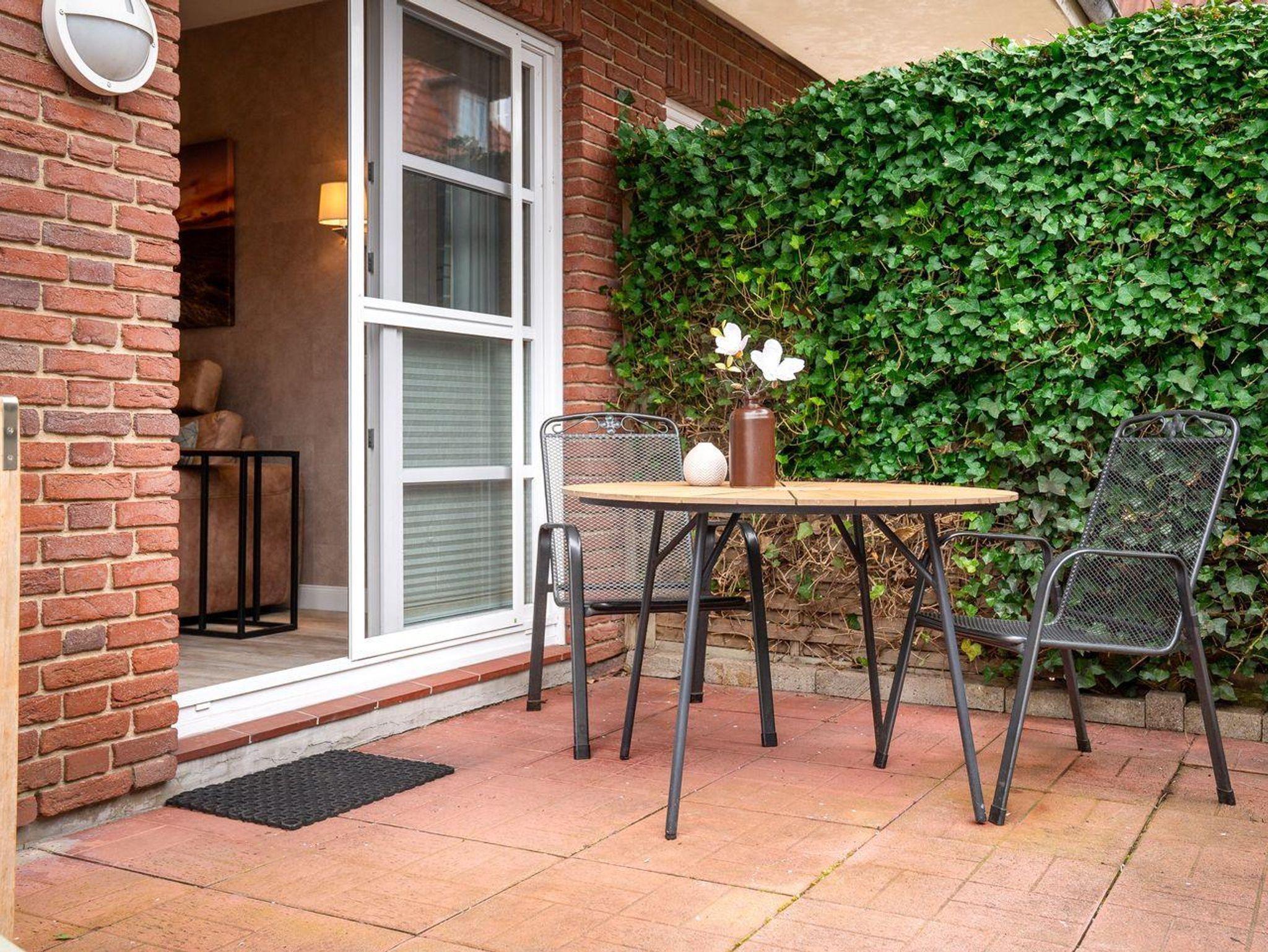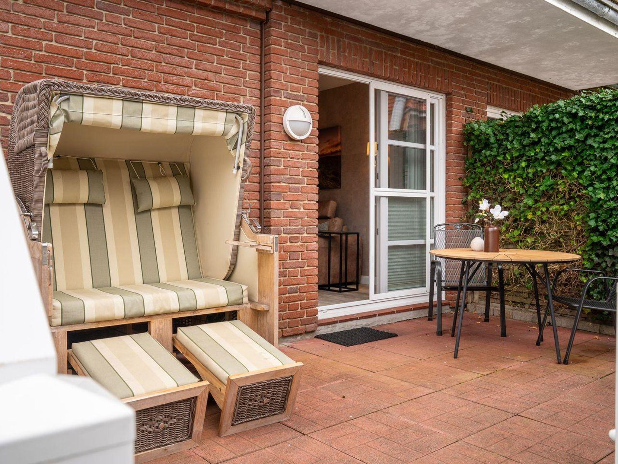 Im Außenbereich lädt ein liebevoll gestalteter, umzäunter Garten zum Verweilen ein. Die sonnige Terrasse mit einem gemütlichen Strandkorb bietet den perfekten Ort, um die Seele baumeln zu lassen.