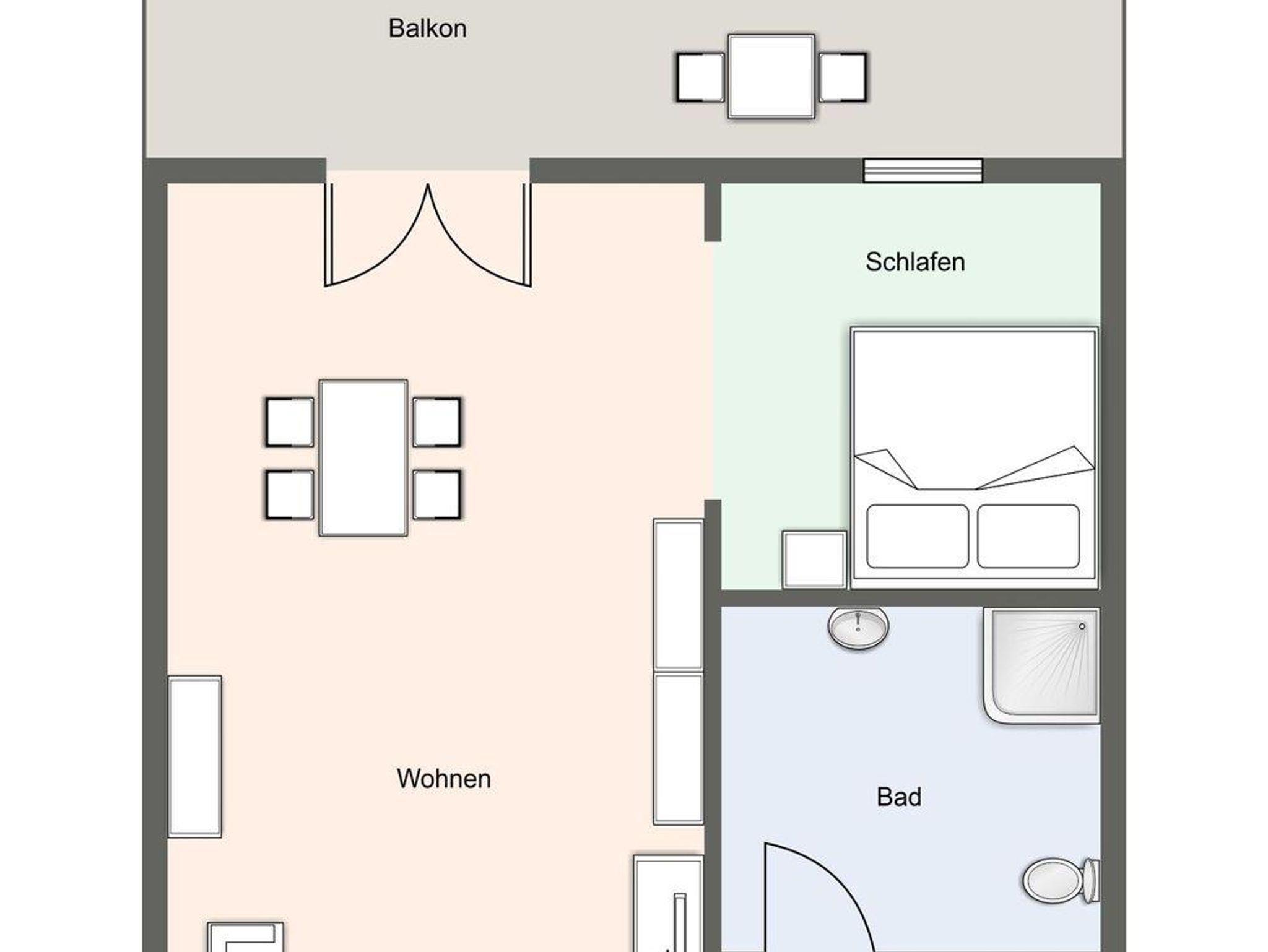 Die Ferienwohnung Strandmuschel bietet auf 35 qm genügend Platz für 2 Personen.