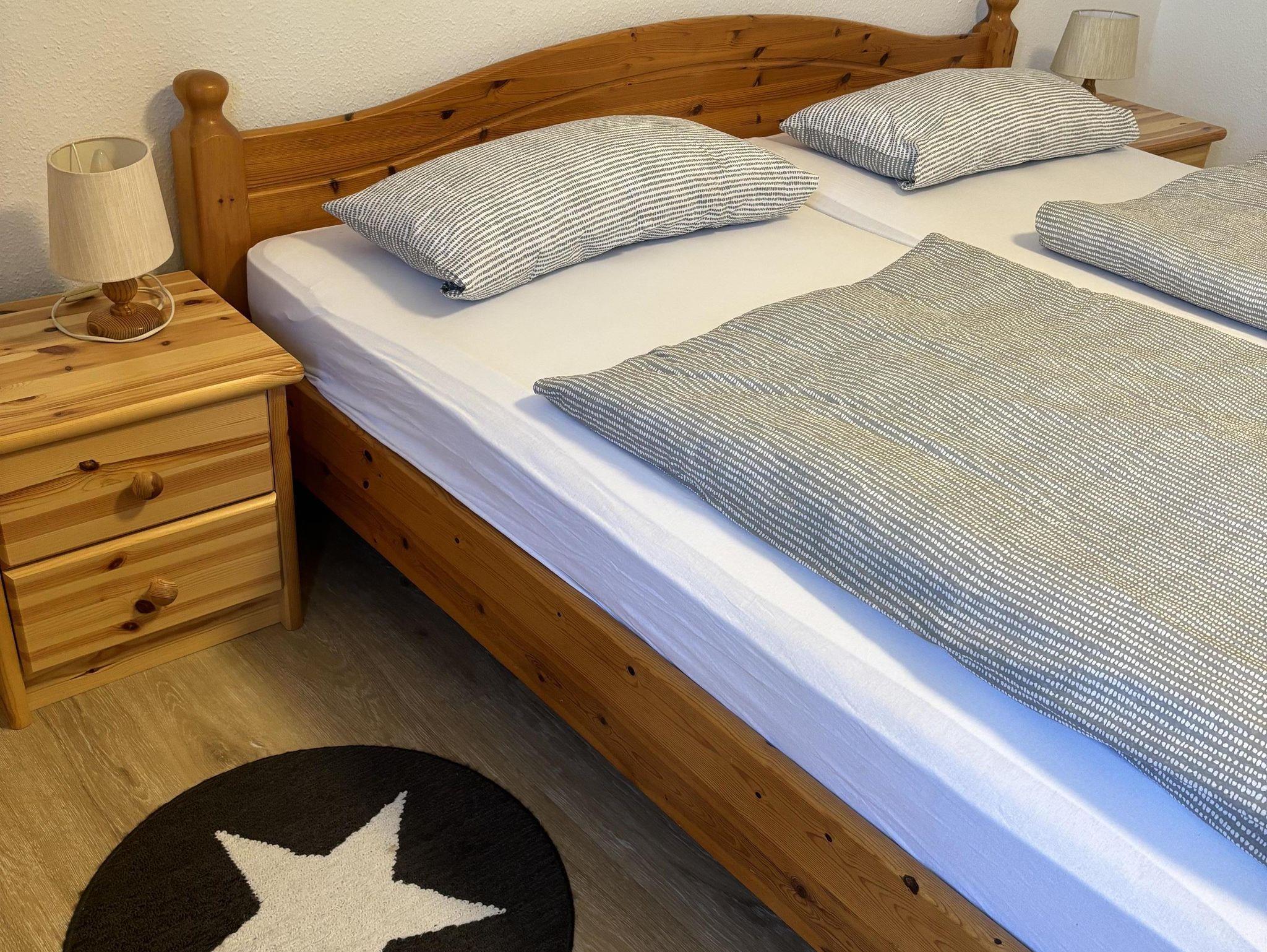 Schlafzimmer mit einem Doppelbett und ein weiteres Schlafzimmer mit 2 Einzelbetten.