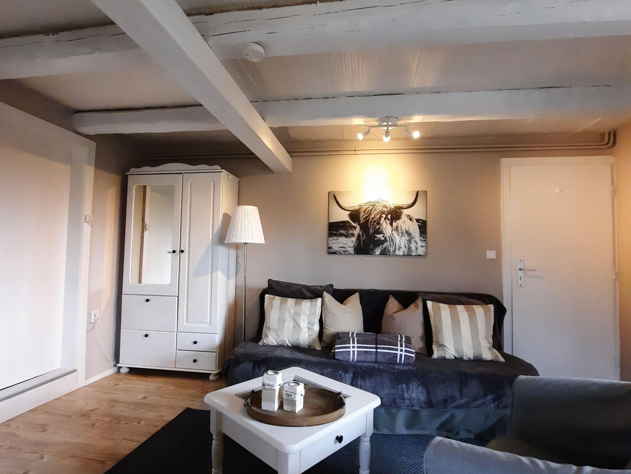 Die Wohnung besteht aus einem Wohn- und Esszimmer mit einer bequemen Schlafcouch (1,60m), sowie einem separatem Schlafzimmer mit Doppelbett (1,60m).